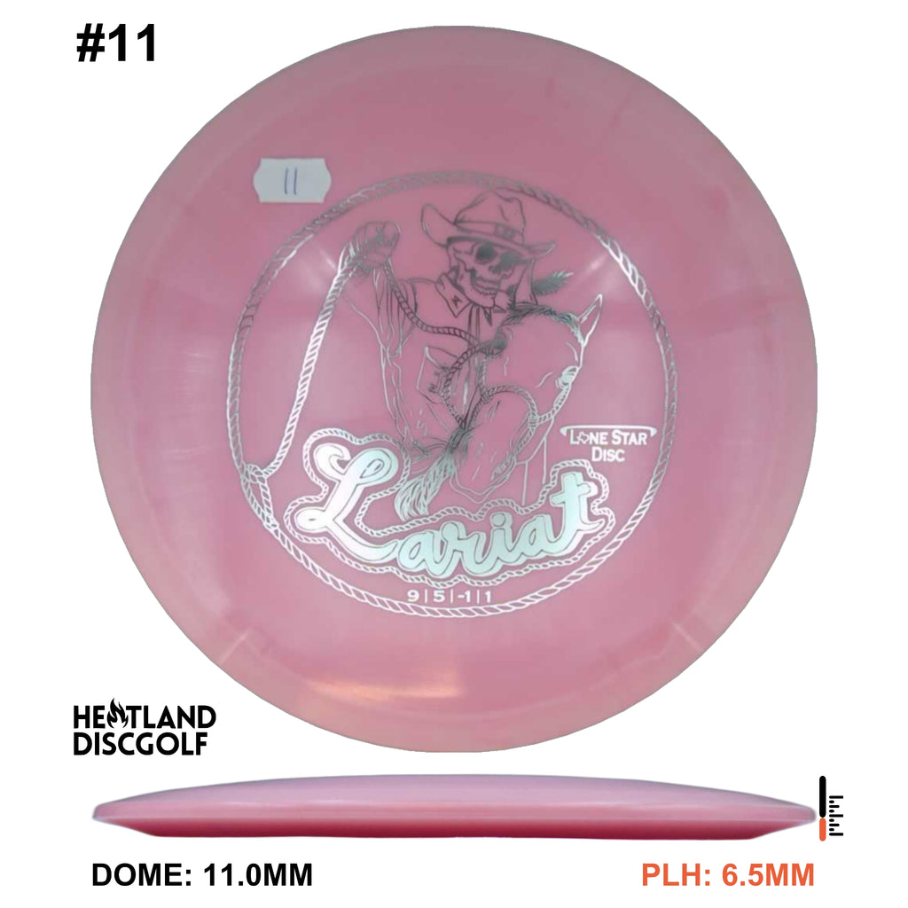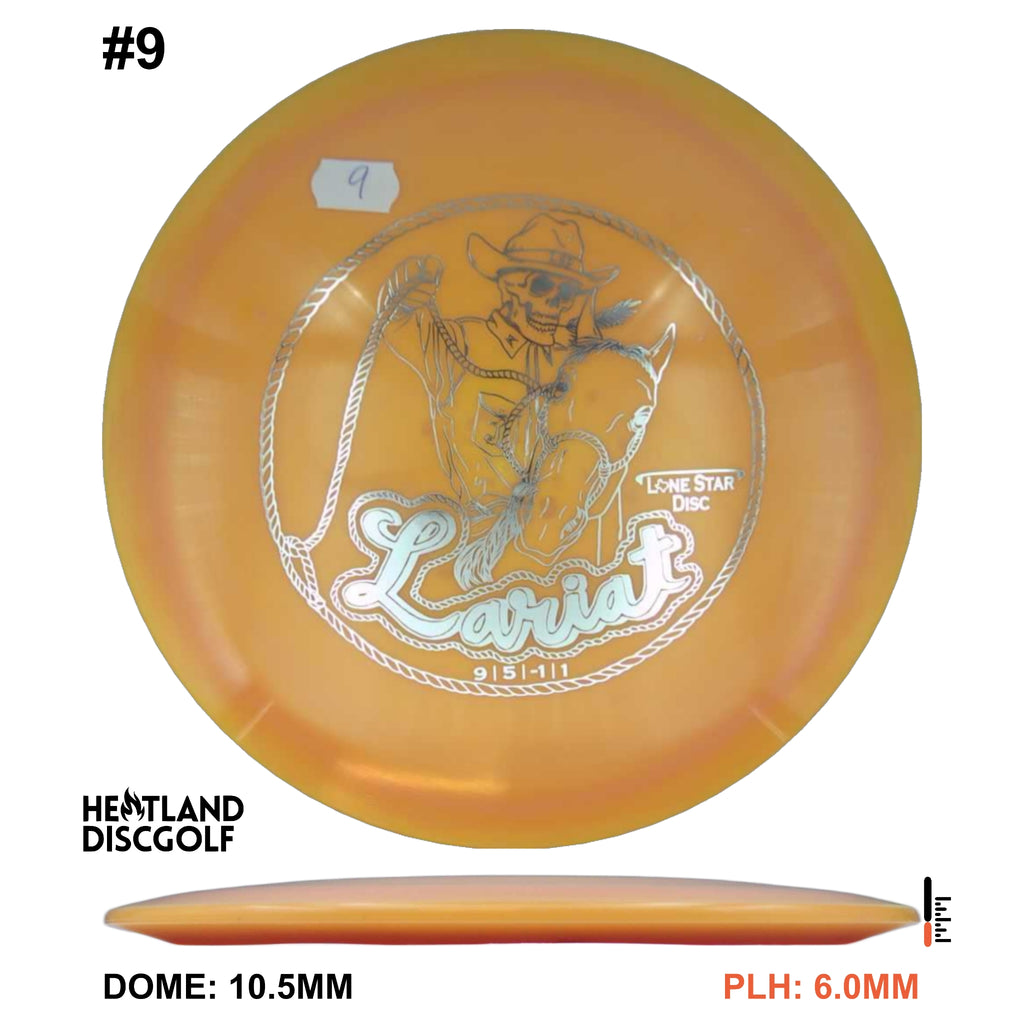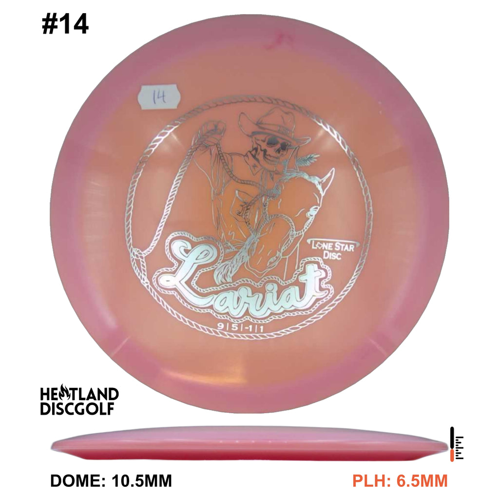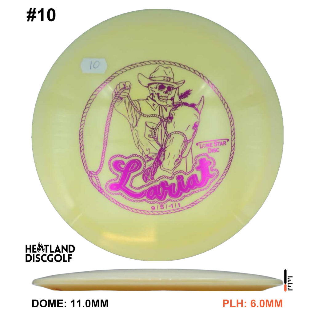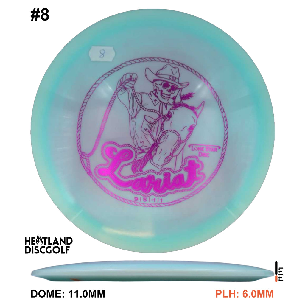 The Lariat is a straight flying fairway driver that can be thrown on a rope. It has a shallow rim depth that makes it ideal for any player no matter their experience level. The Lariat will be available in Alpha, Bravo, and Glow.