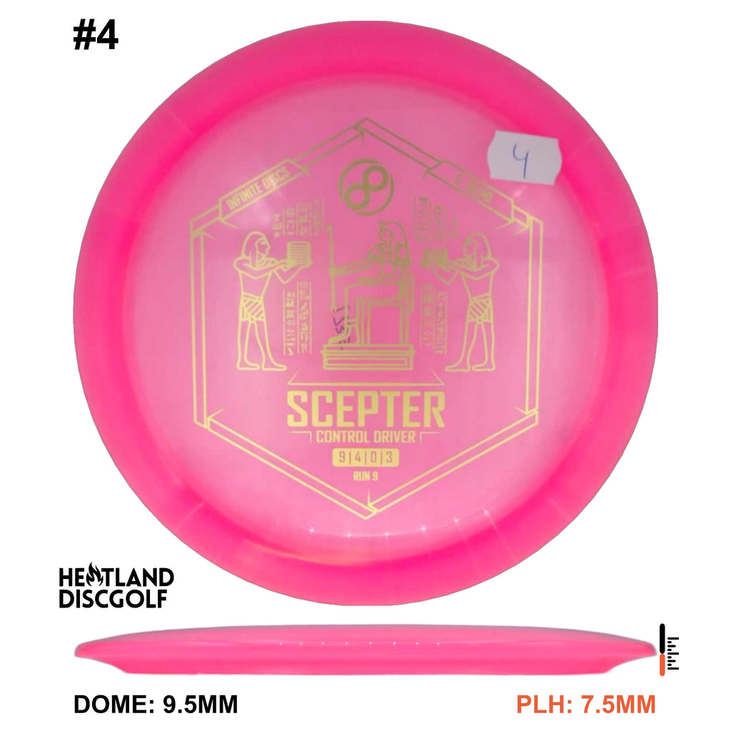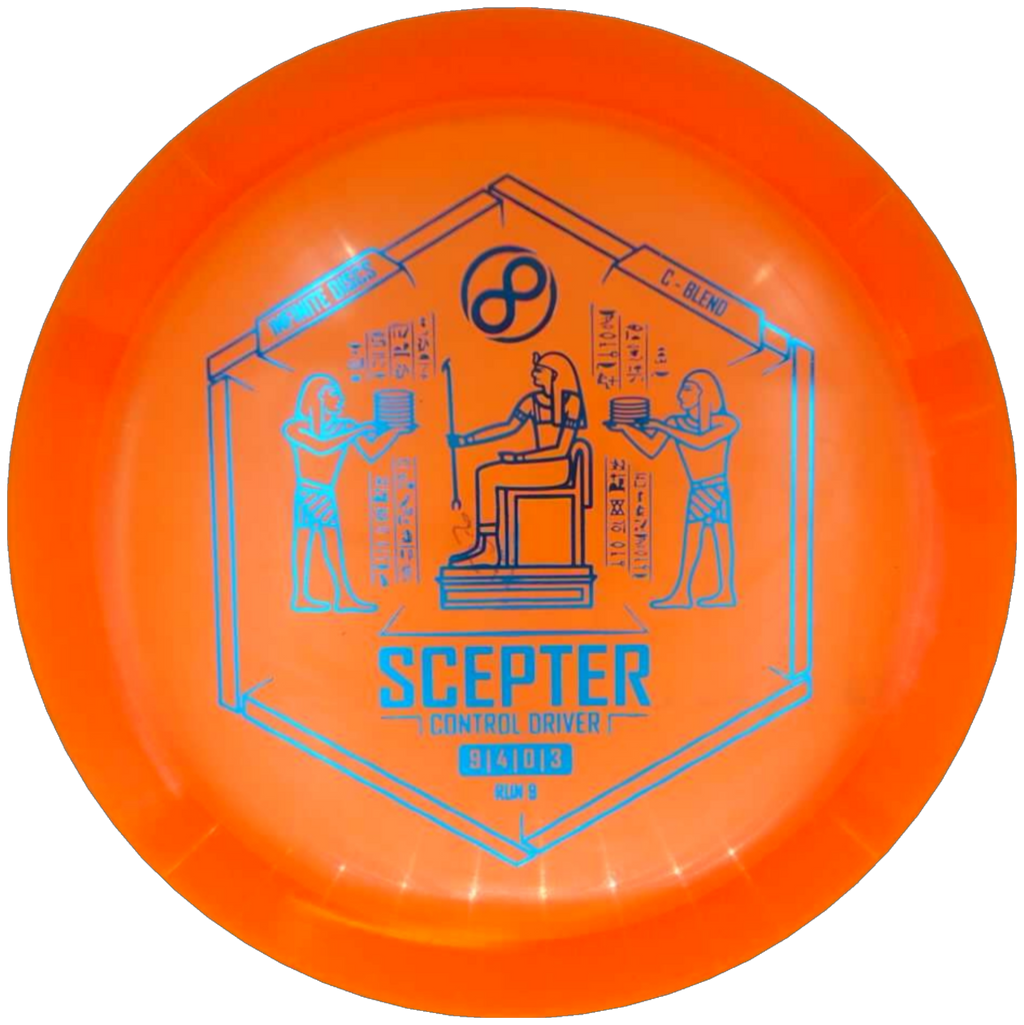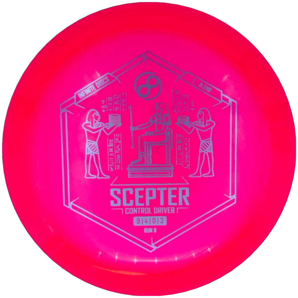 The Scepter is a flat-top, overstable fairway driver for power throwers or for utility use to get around obstacles on the disc golf course. It is very comfortable for forehand use and will always fight out of anhyzer releases. You can count on the Scepter to slice through headwinds and to make a dramatic end-of-flight fade.