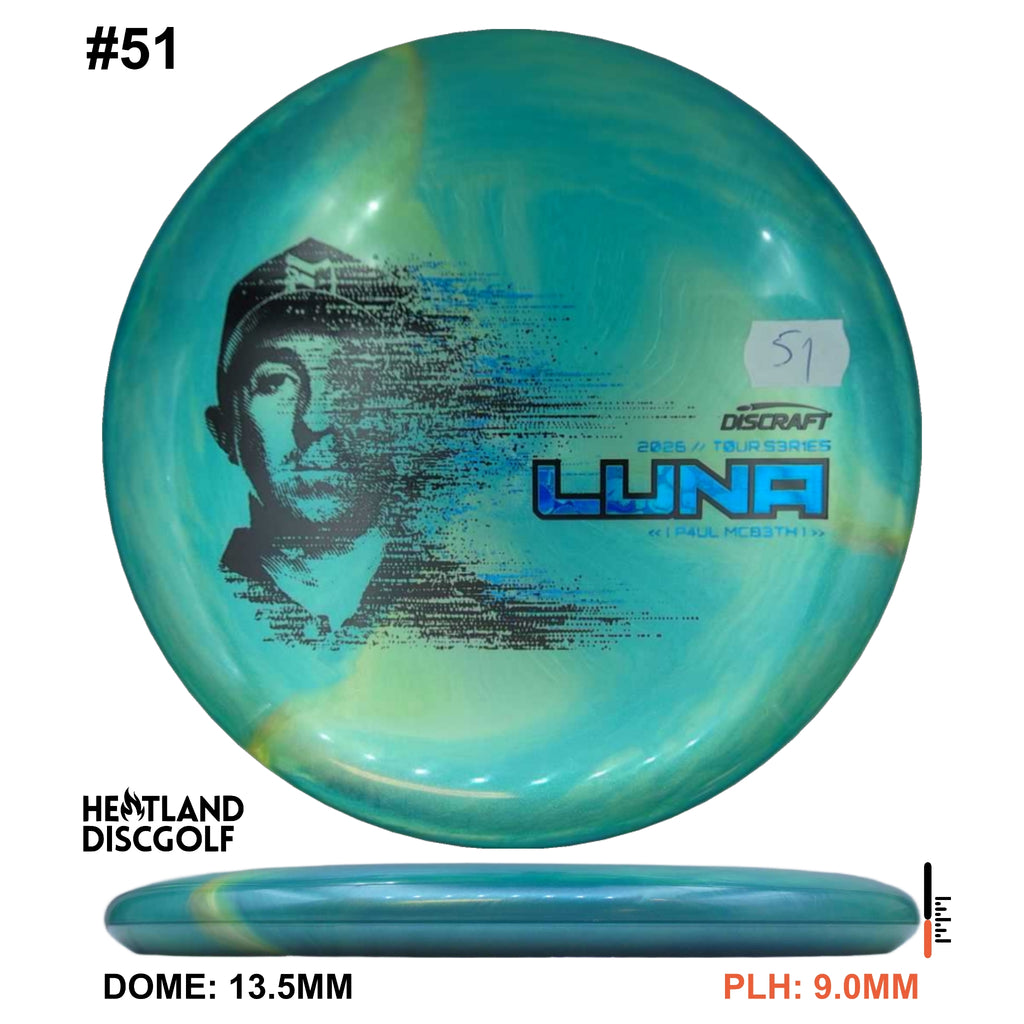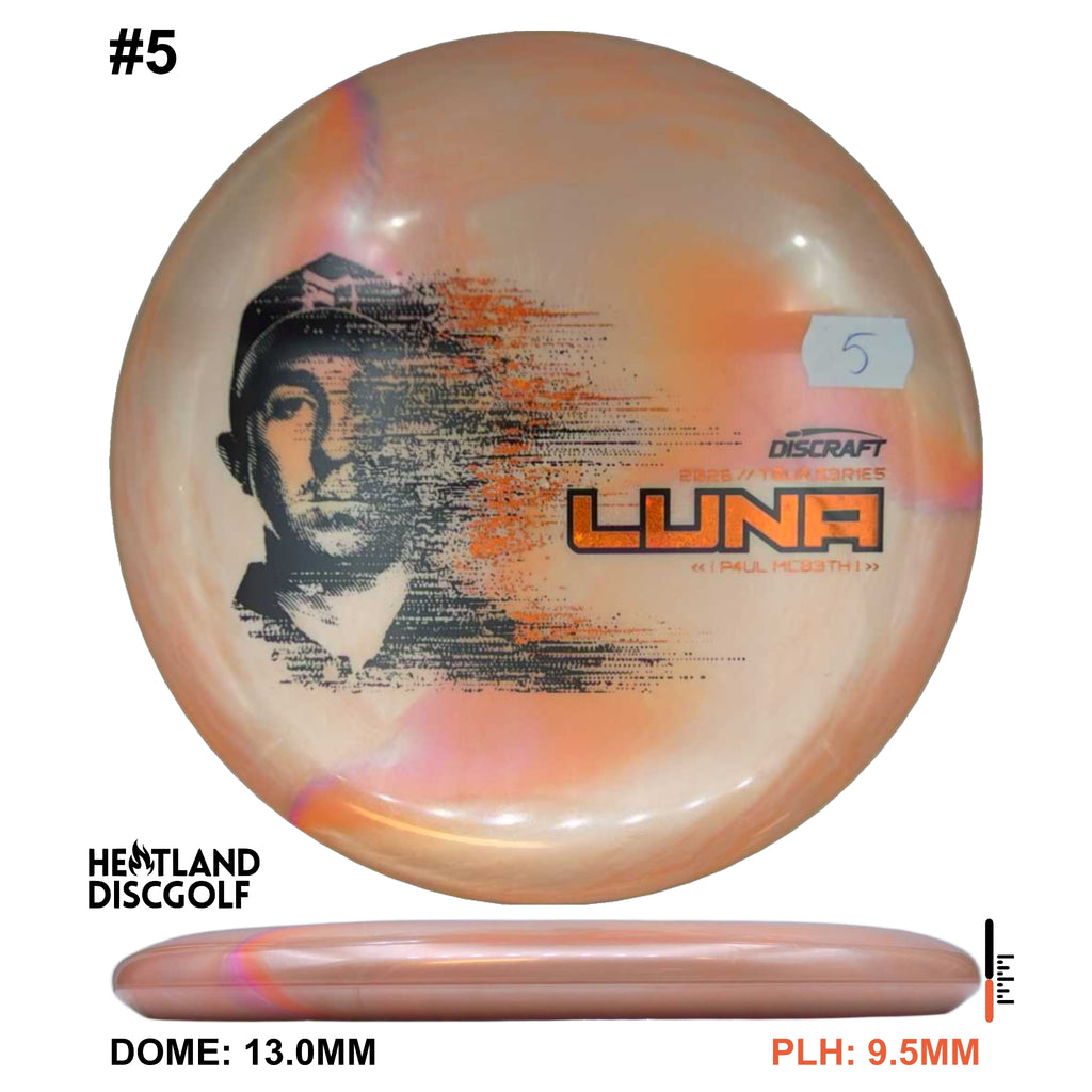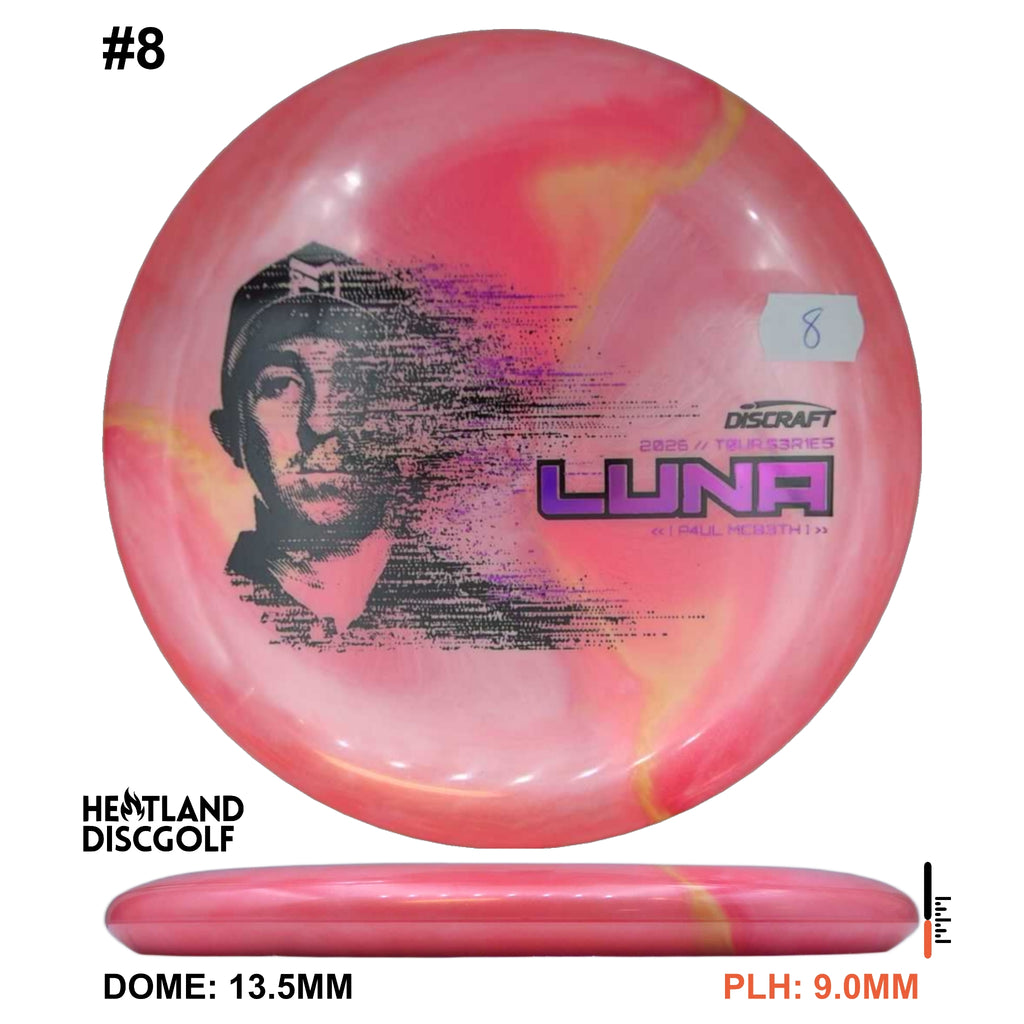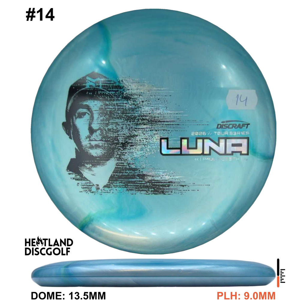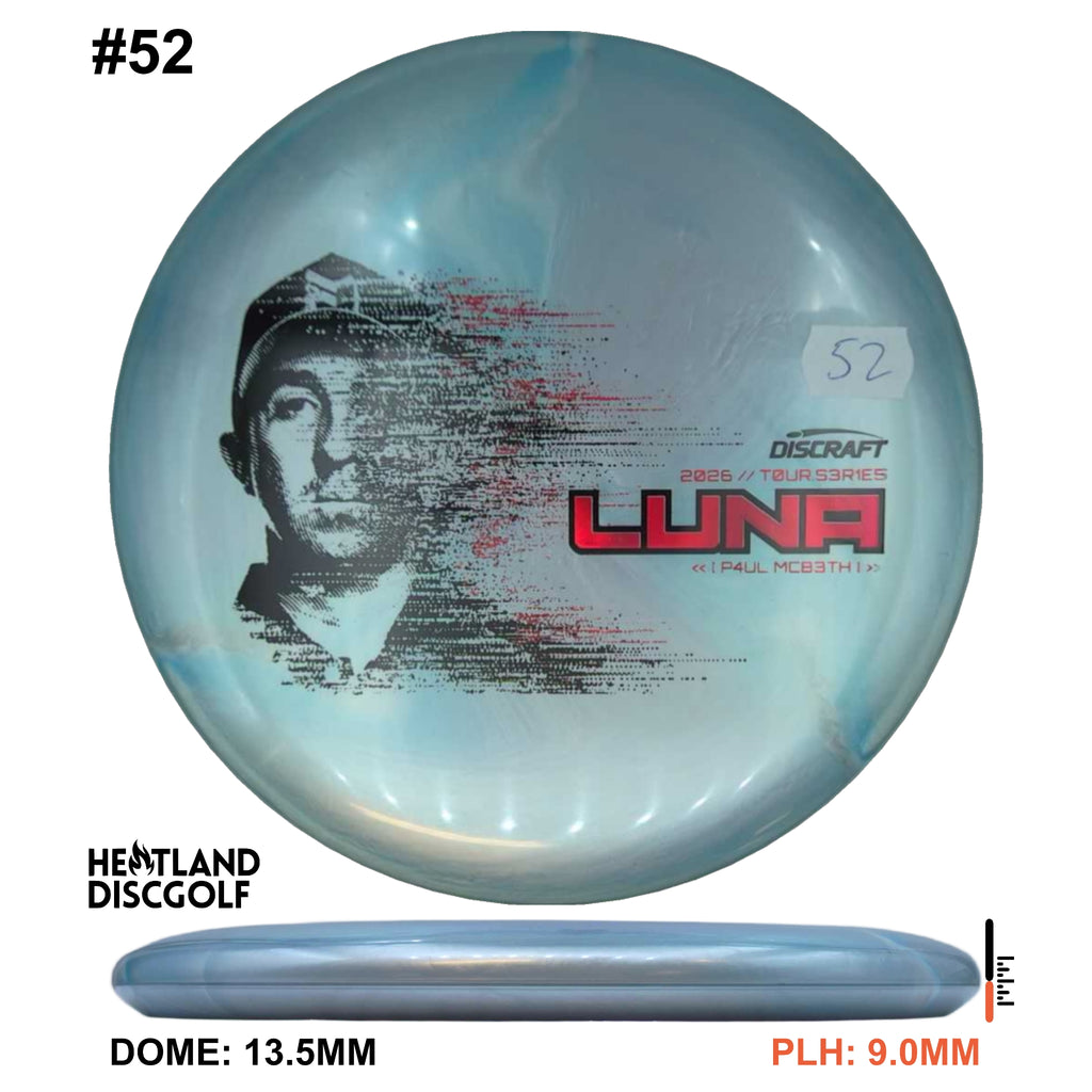 The 2026 Tour Series Luna returns with Paul McBeth, available in our new Special Blend (a Titanium & Big Z mix). You’ll get a premium look with bold color pop, paired with a tacky, confident grip and the durability to keep the feel consistent through heavy use and changing conditions. On the course, the Luna is a neutral-to-stable putter built for control at every speed. It holds the angle you put it on for touch approaches, pushes straight on drives, and finishes with just enough stability to stay predictable without dumping out early. From circle putts to standstill placements, the Luna is the kind of disc you can trust when the shot demands clean execution. Explore the full 2026 Tour Series lineup on Discraft.com.