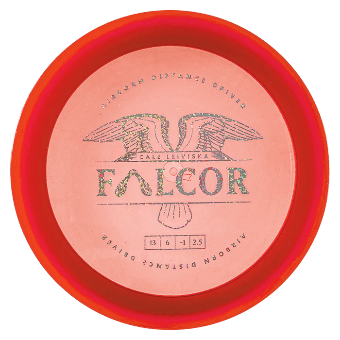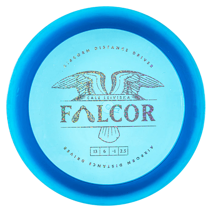The Falcor is our collaboration with Cale Leiviska. It is an overstable driver that also packs in a lot of glide. It's a disc players will be able to lean on, and players with higher arm speeds will be able to get a max distance flight out of it.