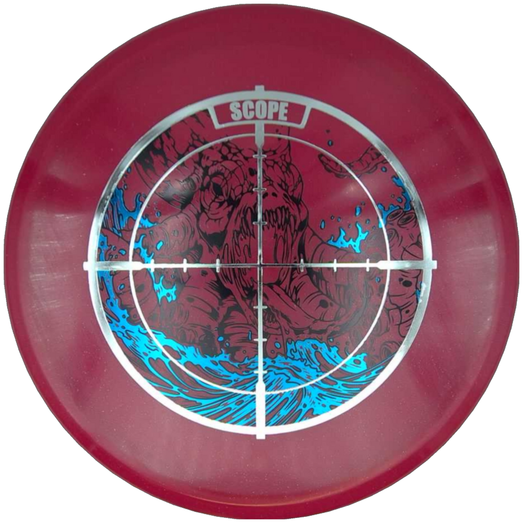 The Doomsday Discs Clandestine Scope is a stable-to-overstable approach disc designed for precise control and minimal ground play. Clandestine plastic provides a premium, tacky grip with dependable durability for consistent release. The Doomsday Discs Scope in this blend offers smooth glide, torque resistance, and a predictable fade, ideal for accurate forehand and backhand approaches.