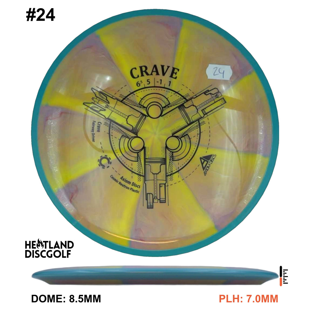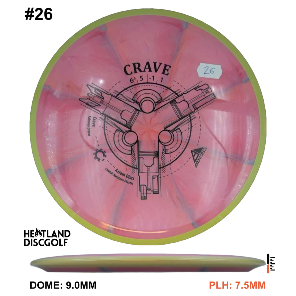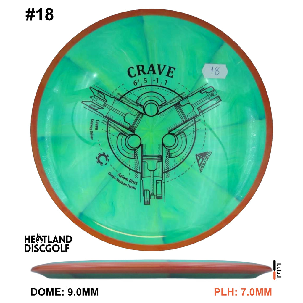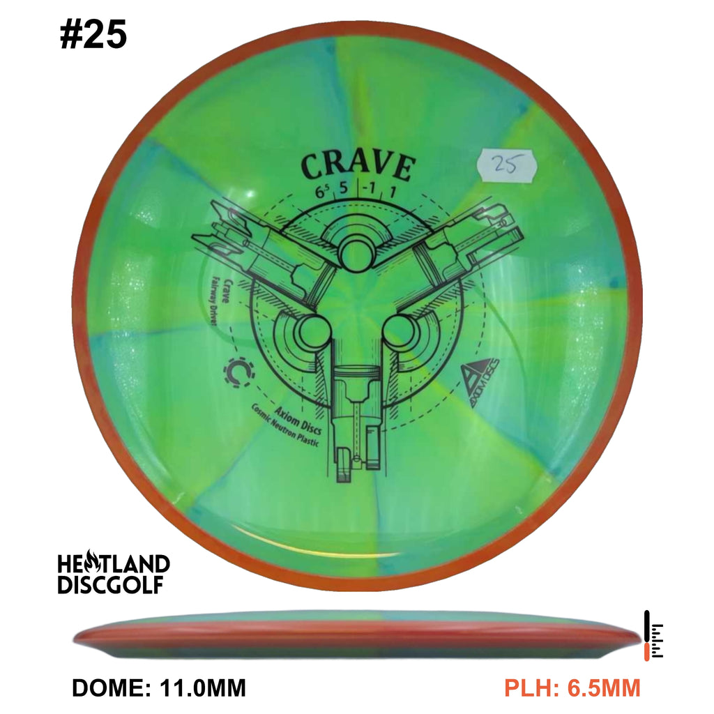 Crave är en av mina go-to fairways. Den går rakt med lite flip och turn .Håller en väldigt tight bana i flighten. Kastat i mycket hyzer håller den hyzer och pushar framåt. Väldigt manipulerbar disc, Funkar perfekt för en disc rundor då den är så kontrollerbar.