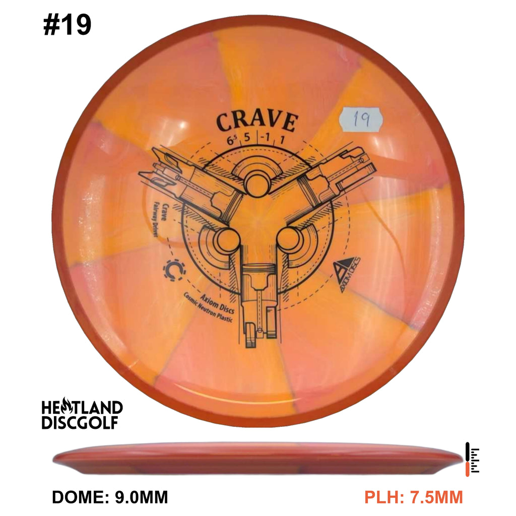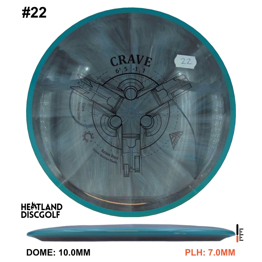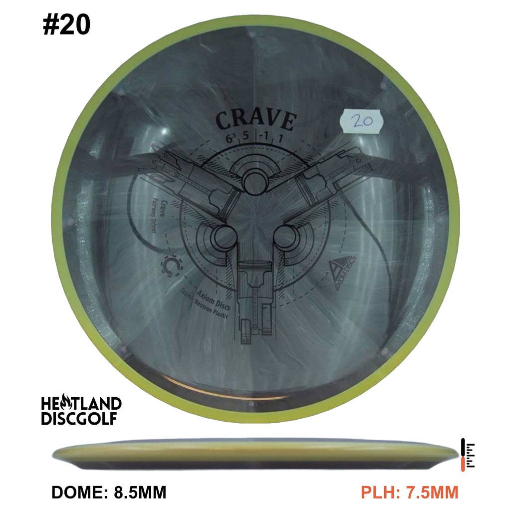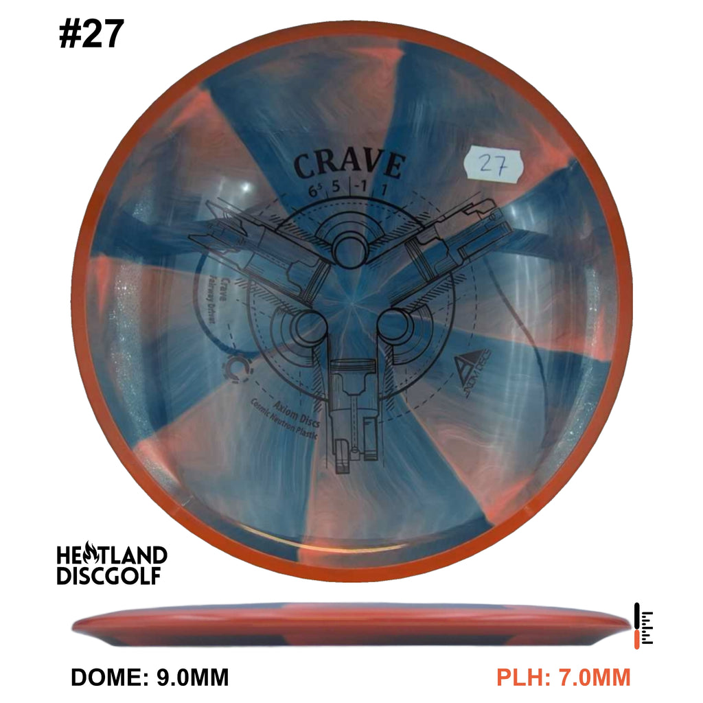 Crave är en av mina go-to fairways. Den går rakt med lite flip och turn .Håller en väldigt tight bana i flighten. Kastat i mycket hyzer håller den hyzer och pushar framåt. Väldigt manipulerbar disc, Funkar perfekt för en disc rundor då den är så kontrollerbar.