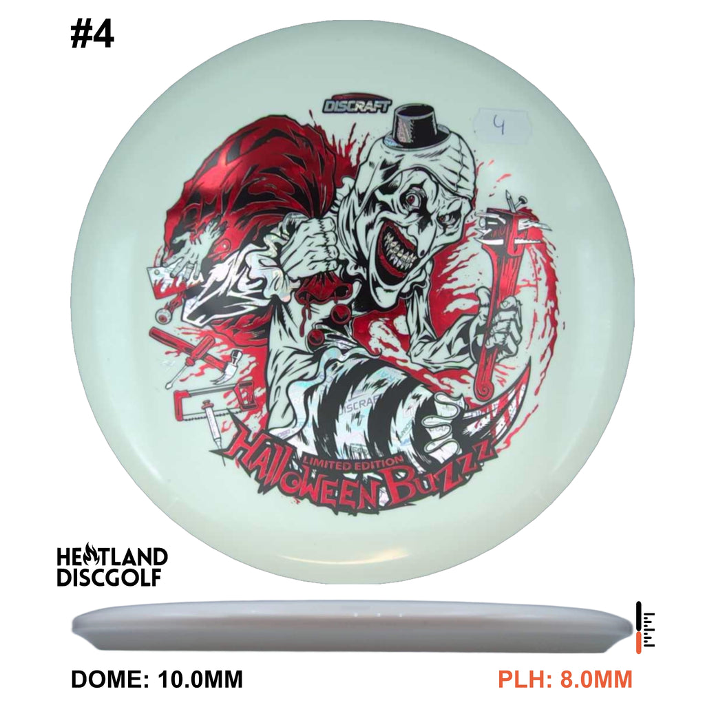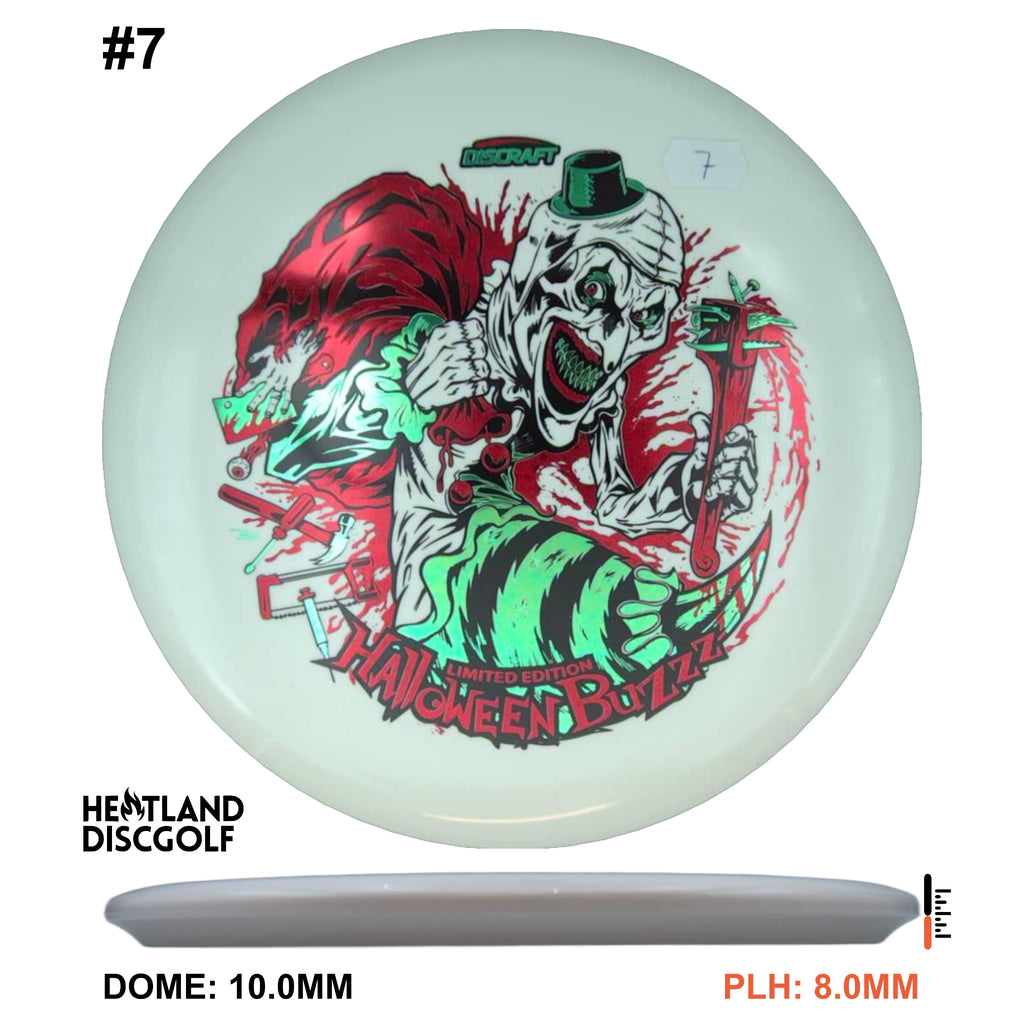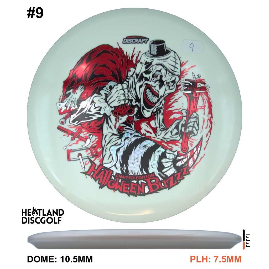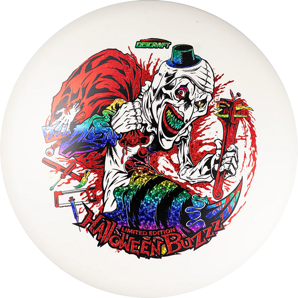 Under the glow of night, the 2025 Tri-Foil Glo Halloween Buzzz emerges from the shadows. An ominous clown silhouette peers from layered foils, casting an eerie shimmer across our classic glow plastic. Precision flight meets bone-chilling style, making this run as haunting in the air as it is on display.