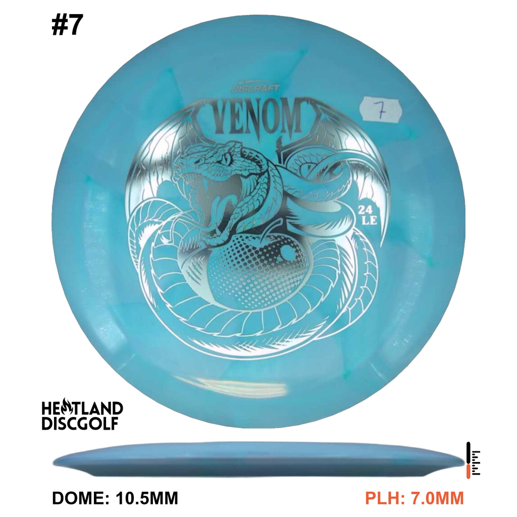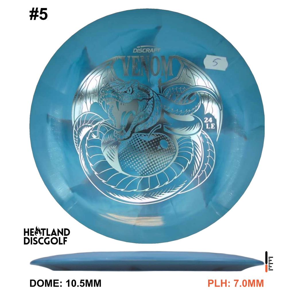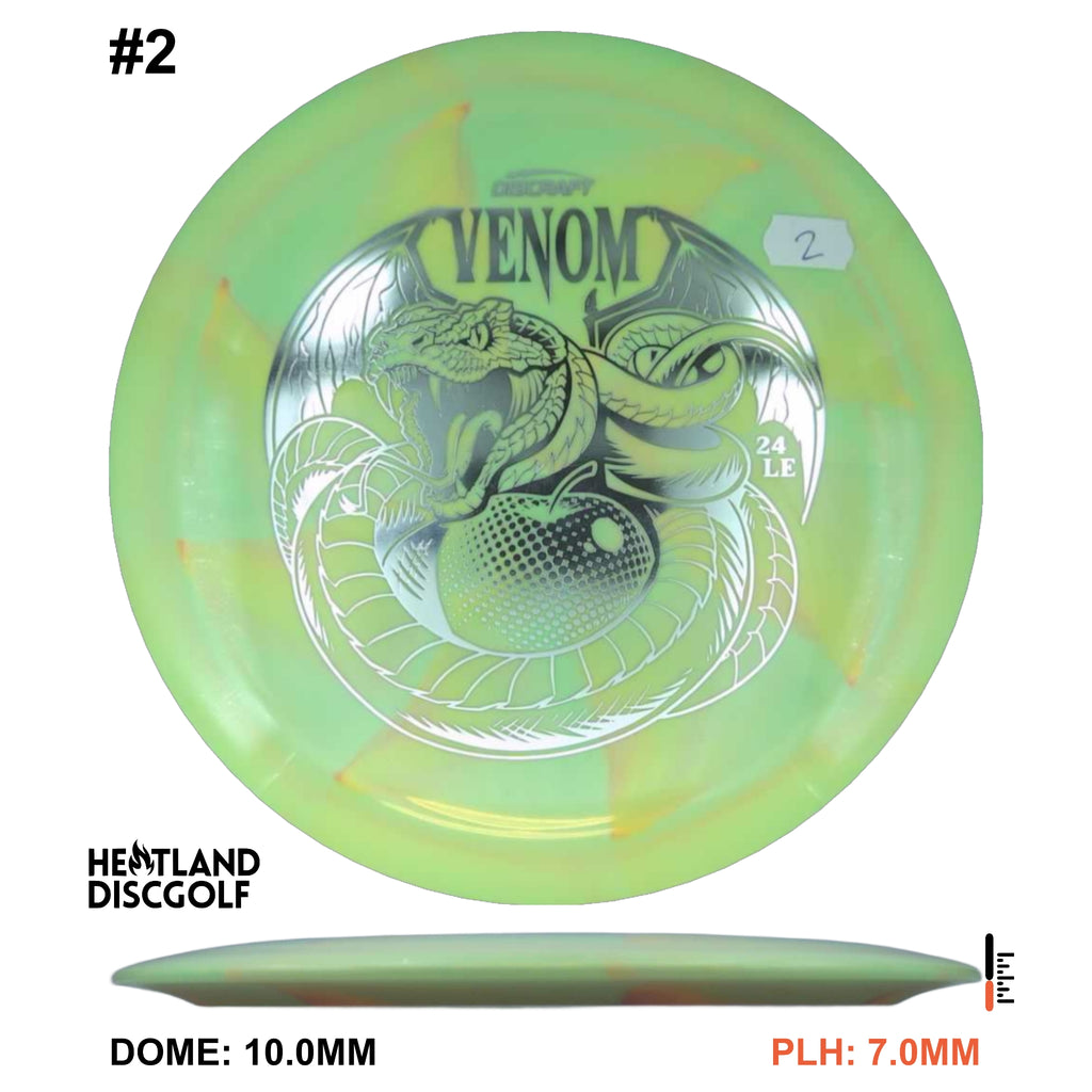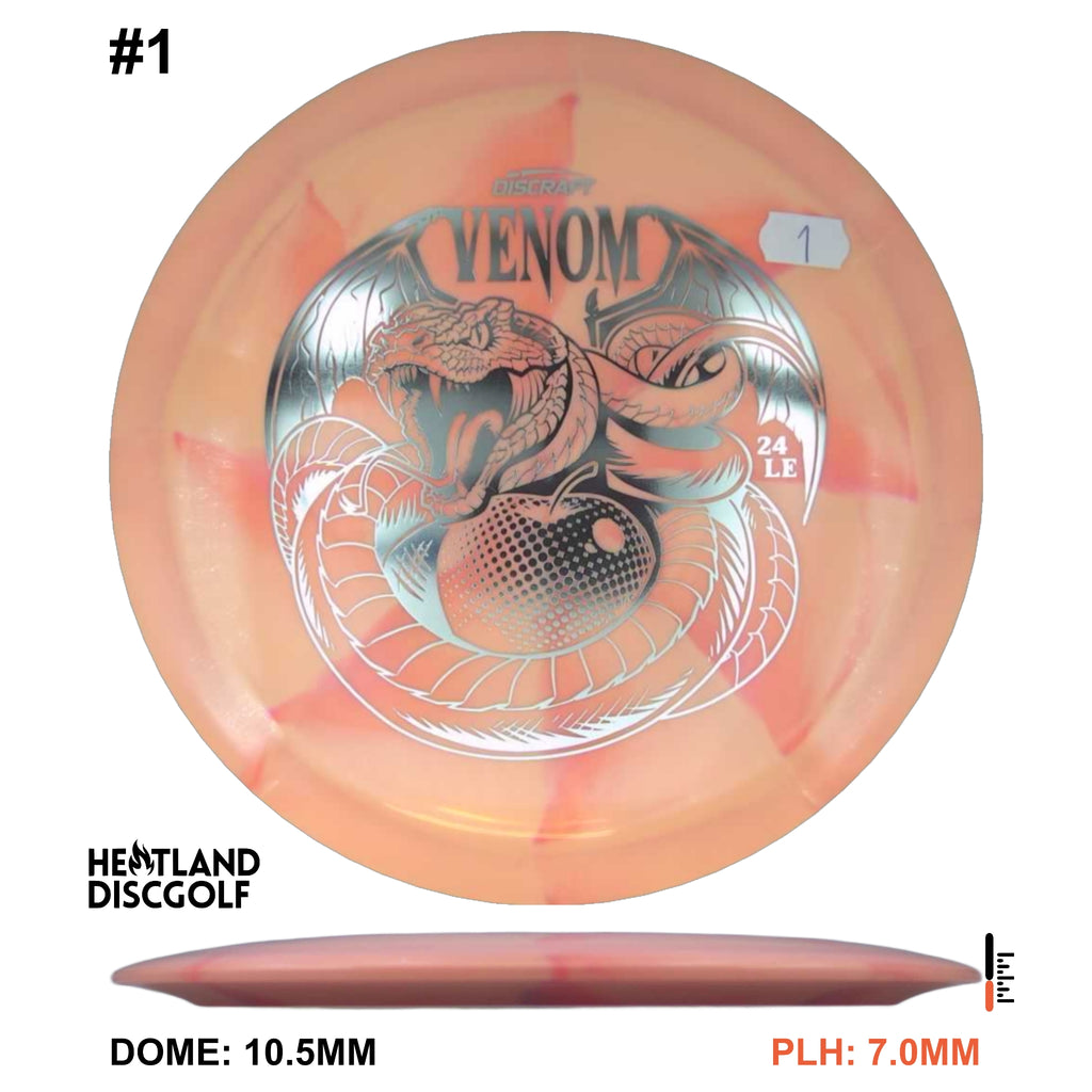 Drive your fangs into the all-new Venom. This entirely retooled disc is here to stay. That’s why our team took everything that works (and nothing that doesn’t) about the previous Venom to bring you a reimagined, consistent, overstable maximum distance driver. Fulfilling a need in many players bags, this addition to our lineup will become a favorite amongst power throwers and those looking for a reliable distance driver.