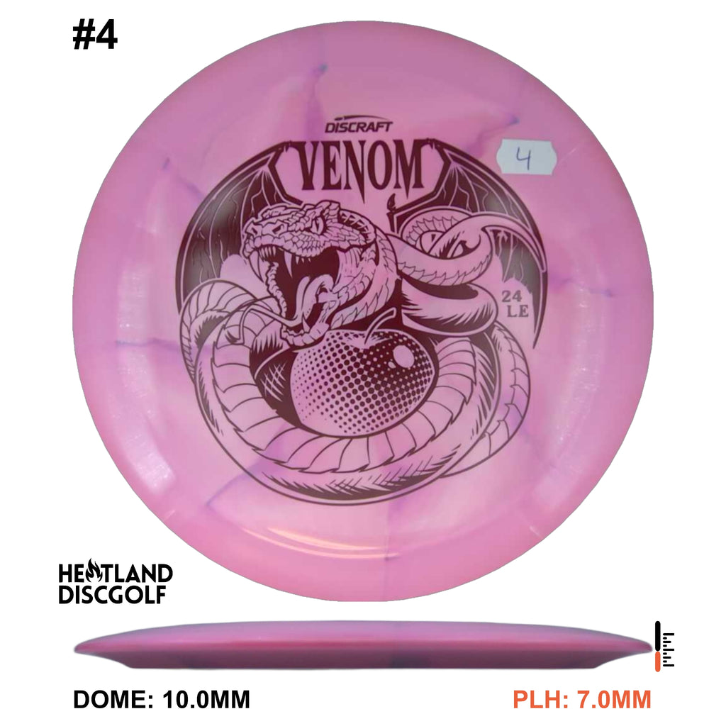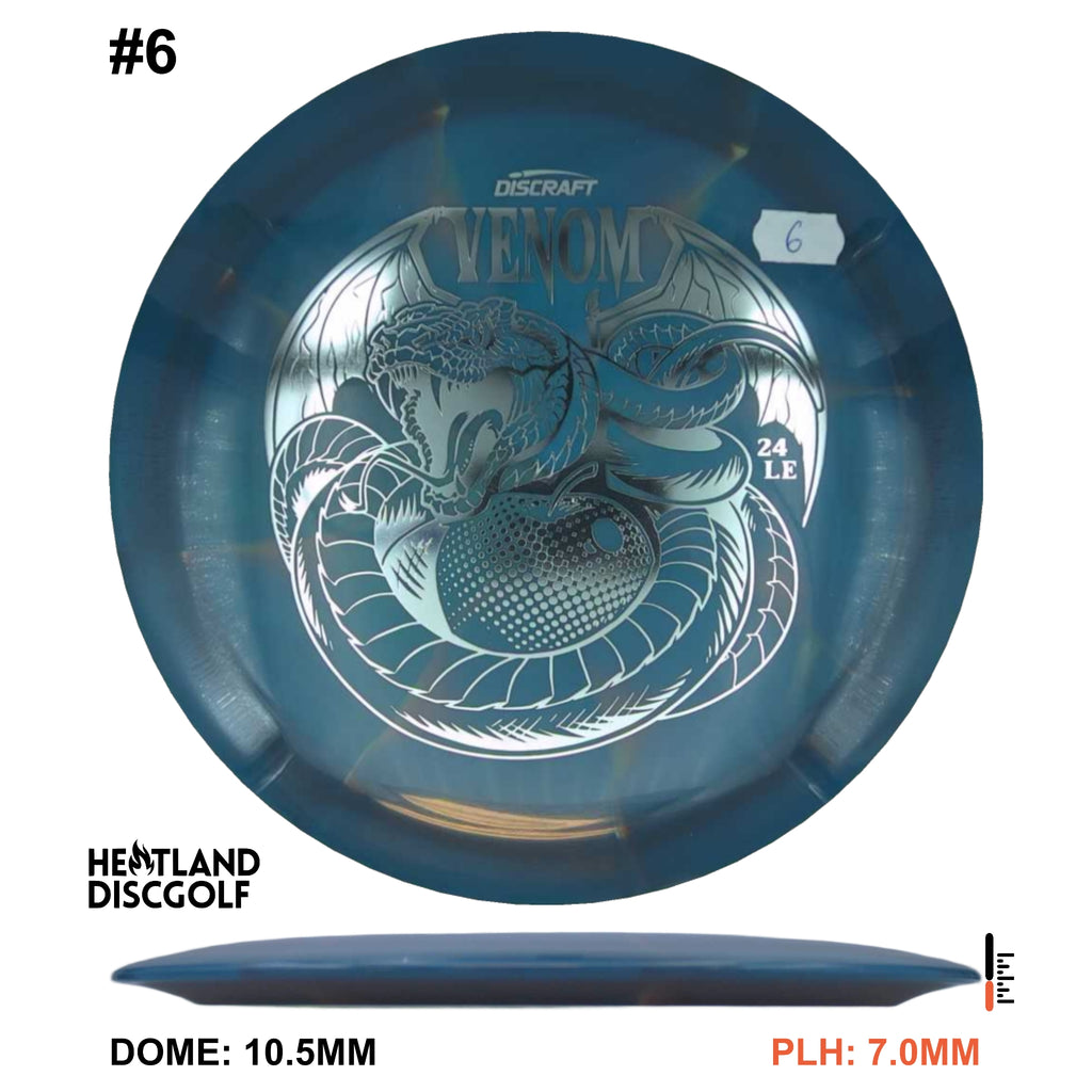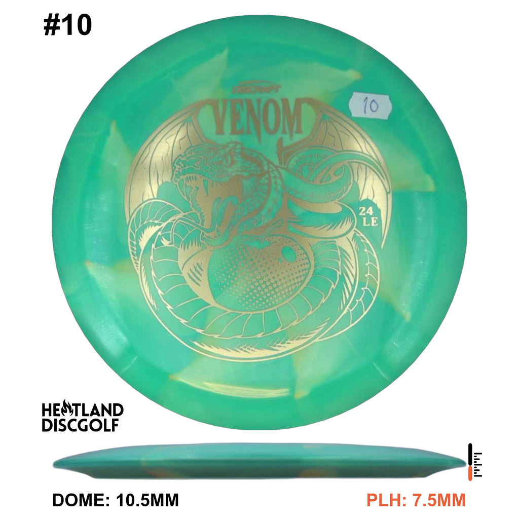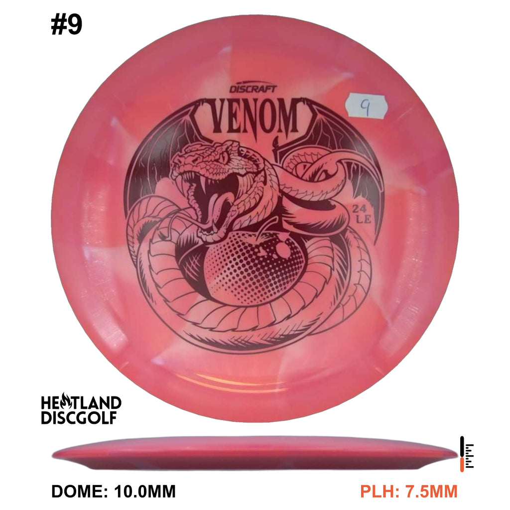 Drive your fangs into the all-new Venom. This entirely retooled disc is here to stay. That’s why our team took everything that works (and nothing that doesn’t) about the previous Venom to bring you a reimagined, consistent, overstable maximum distance driver. Fulfilling a need in many players bags, this addition to our lineup will become a favorite amongst power throwers and those looking for a reliable distance driver.