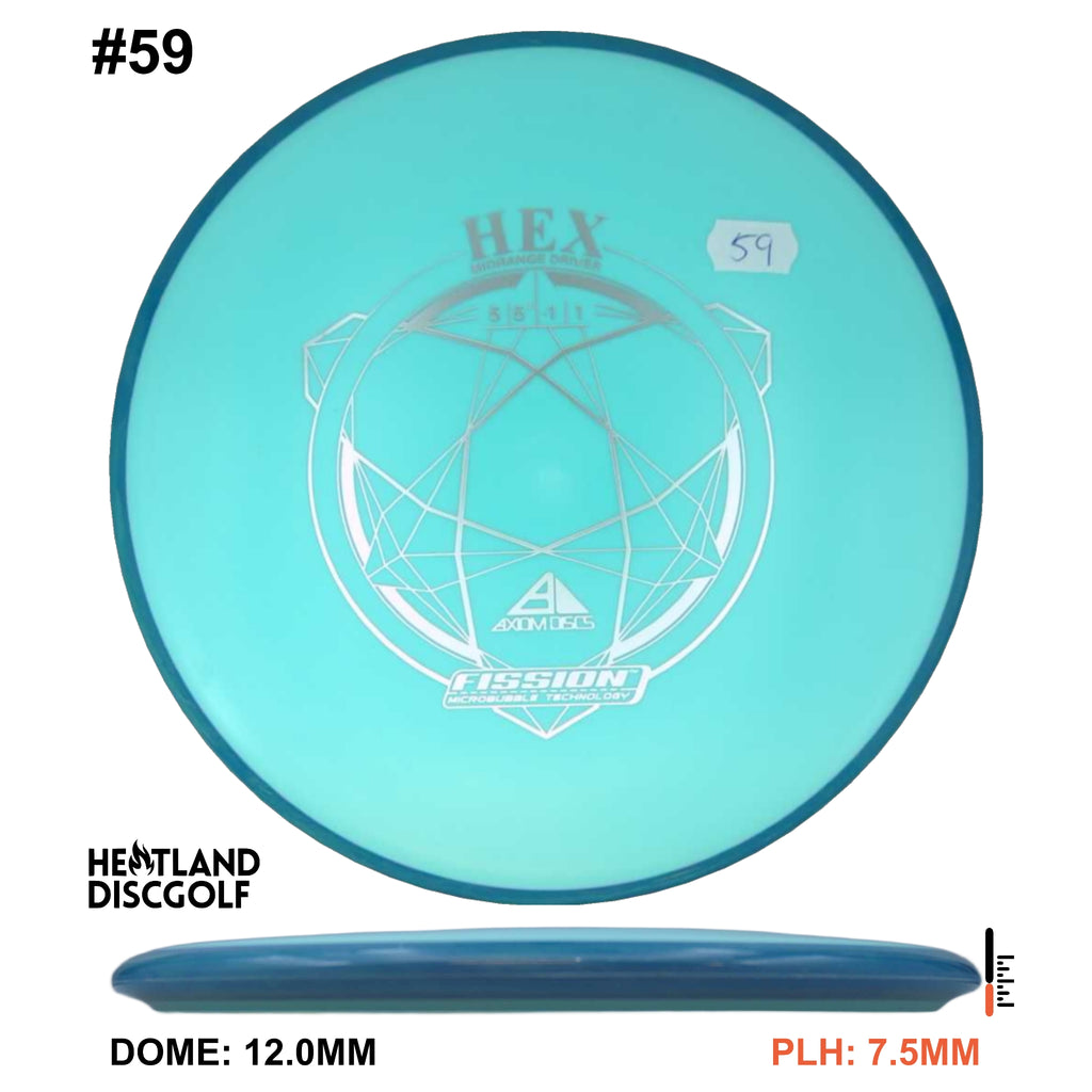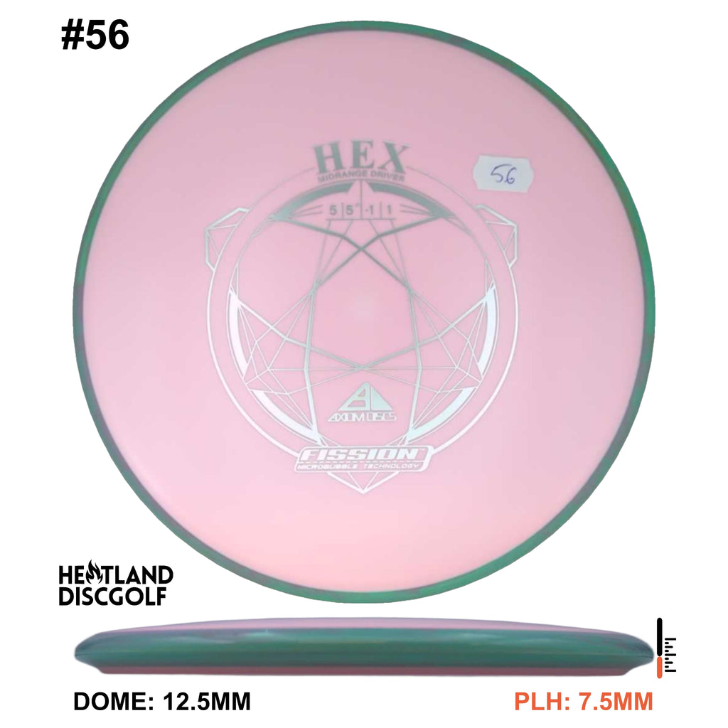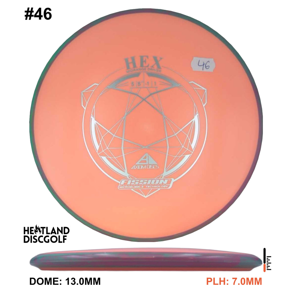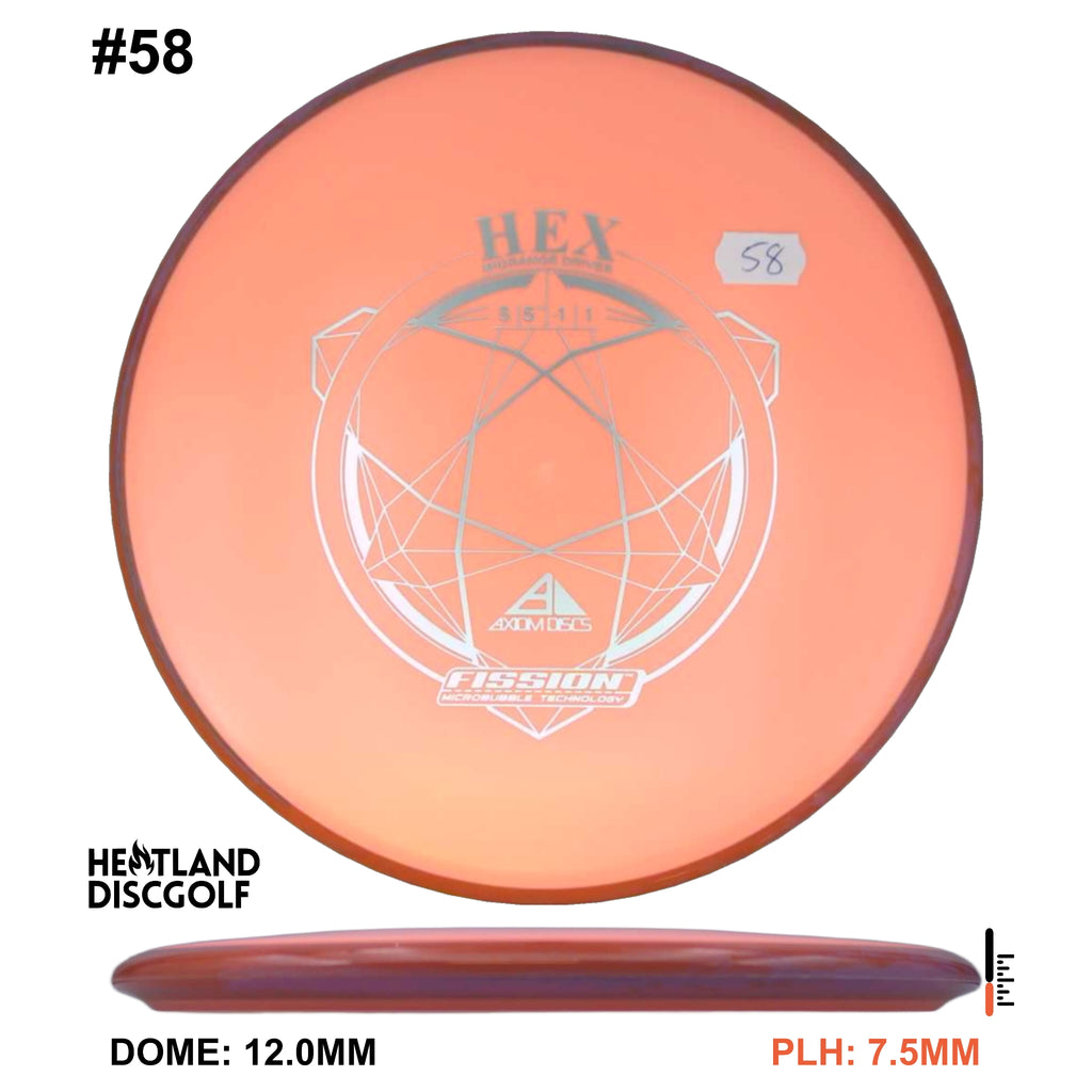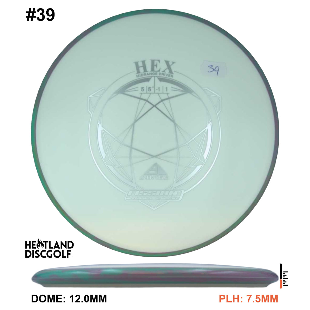 Description: The Hex is a straight flying midrange, designed to fit into anyone's bag. For the advanced player and those who can throw hard, this will result in a slightly understable disc. For a beginner or intermediate player with lower arm speed, this will be a stable disc that can hold most lines.