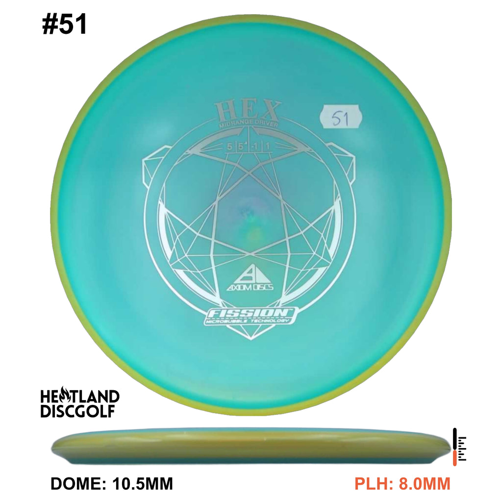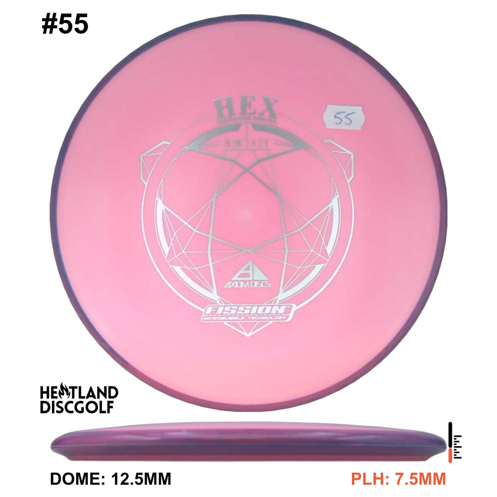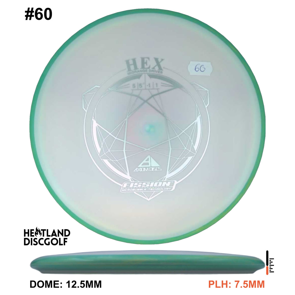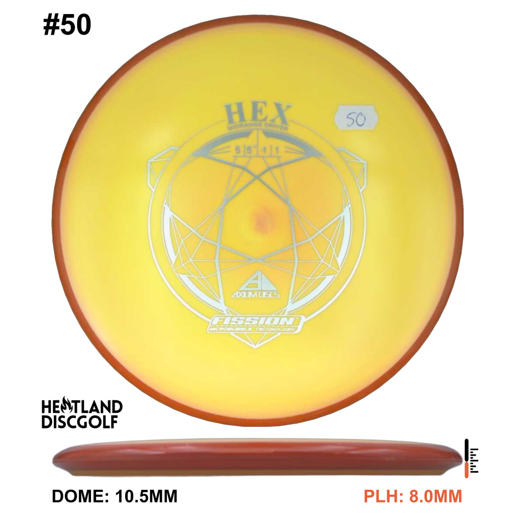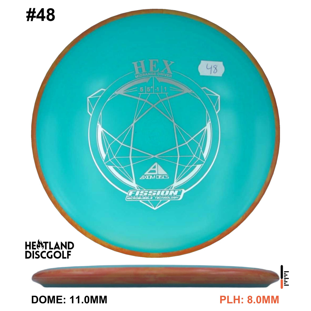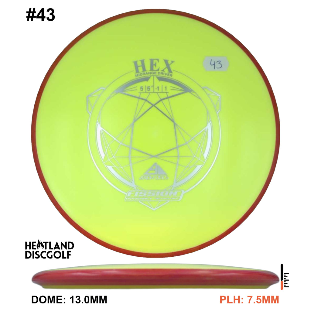 Description: The Hex is a straight flying midrange, designed to fit into anyone's bag. For the advanced player and those who can throw hard, this will result in a slightly understable disc. For a beginner or intermediate player with lower arm speed, this will be a stable disc that can hold most lines.