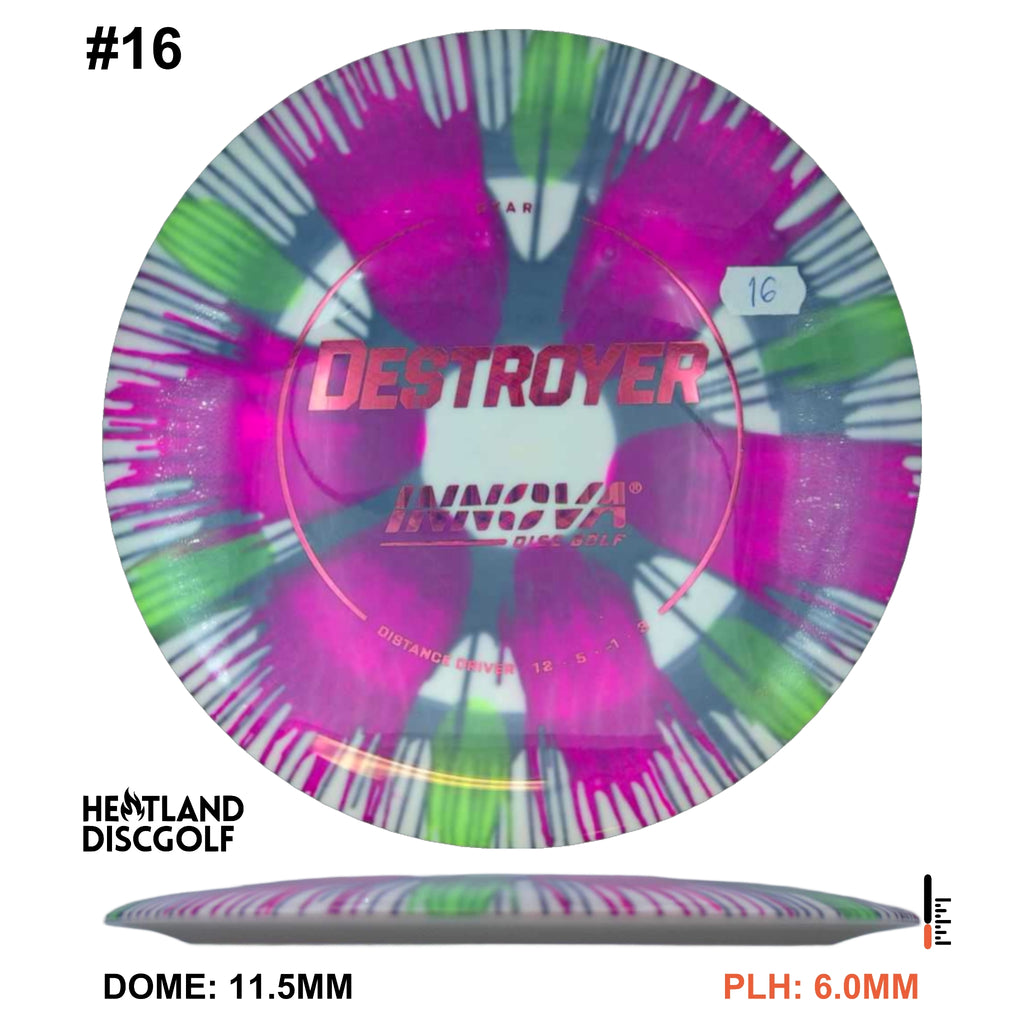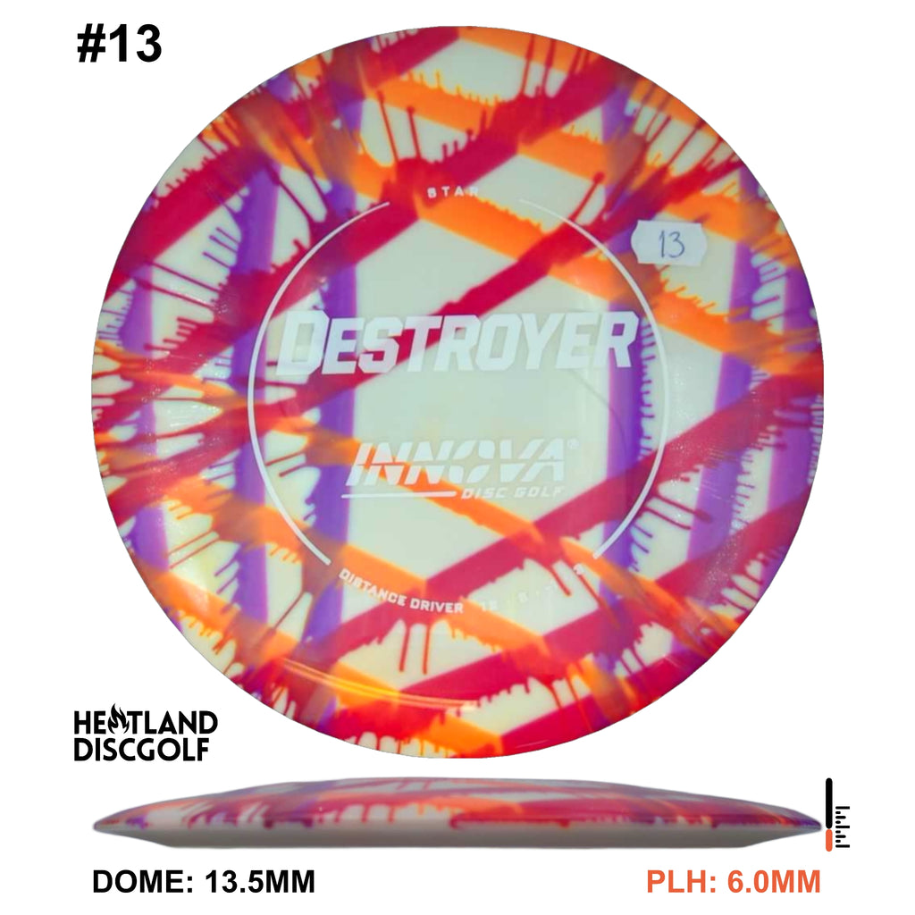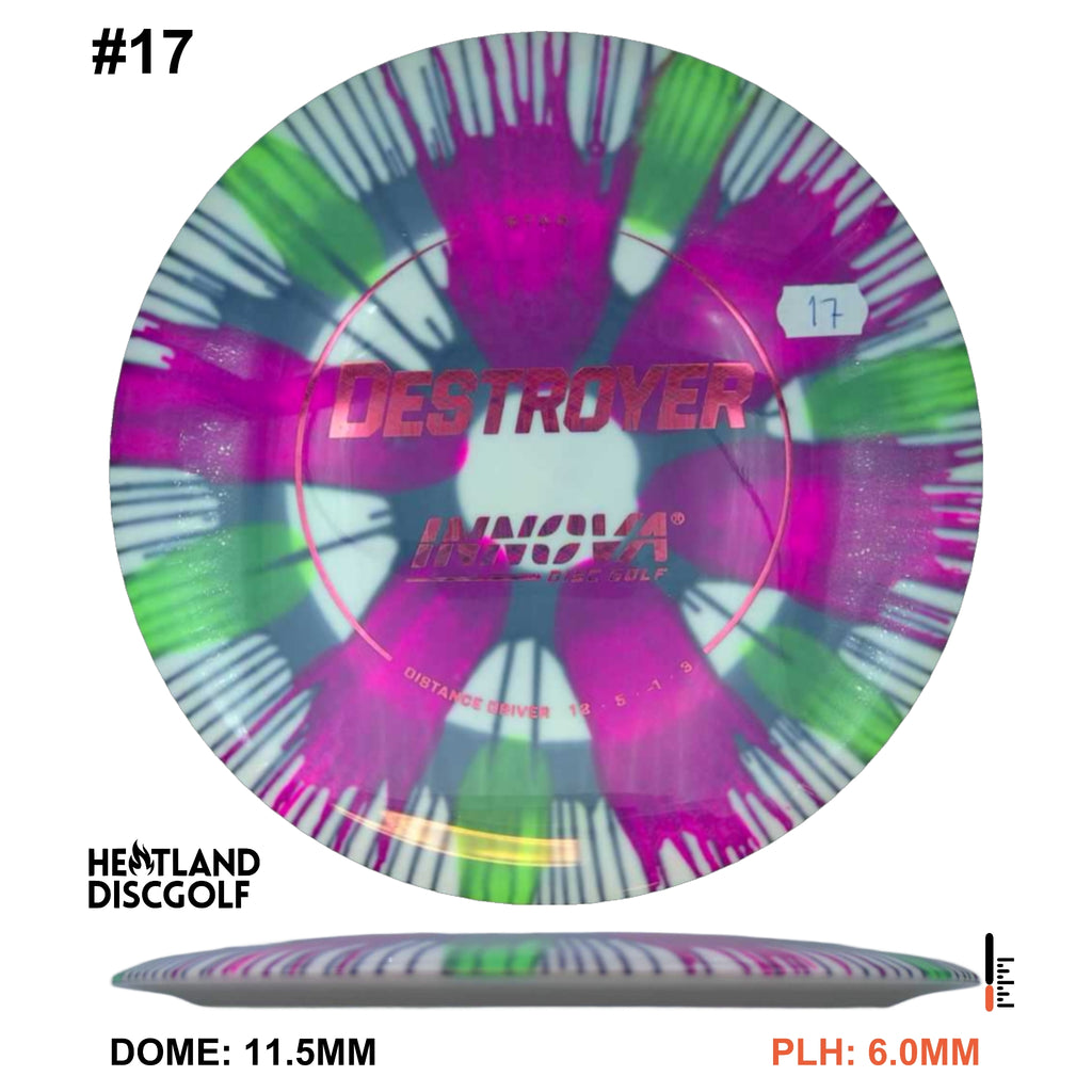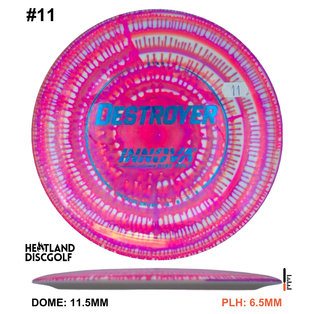 The Destroyer is a very fast stable long distance driver. This disc is much like a faster Wraith, but with a little more high and low speed stability. Great disc for sidearm throwers and those with lots of power. Can handle headwinds and throws with off axis torque. Not suggested for beginning players.