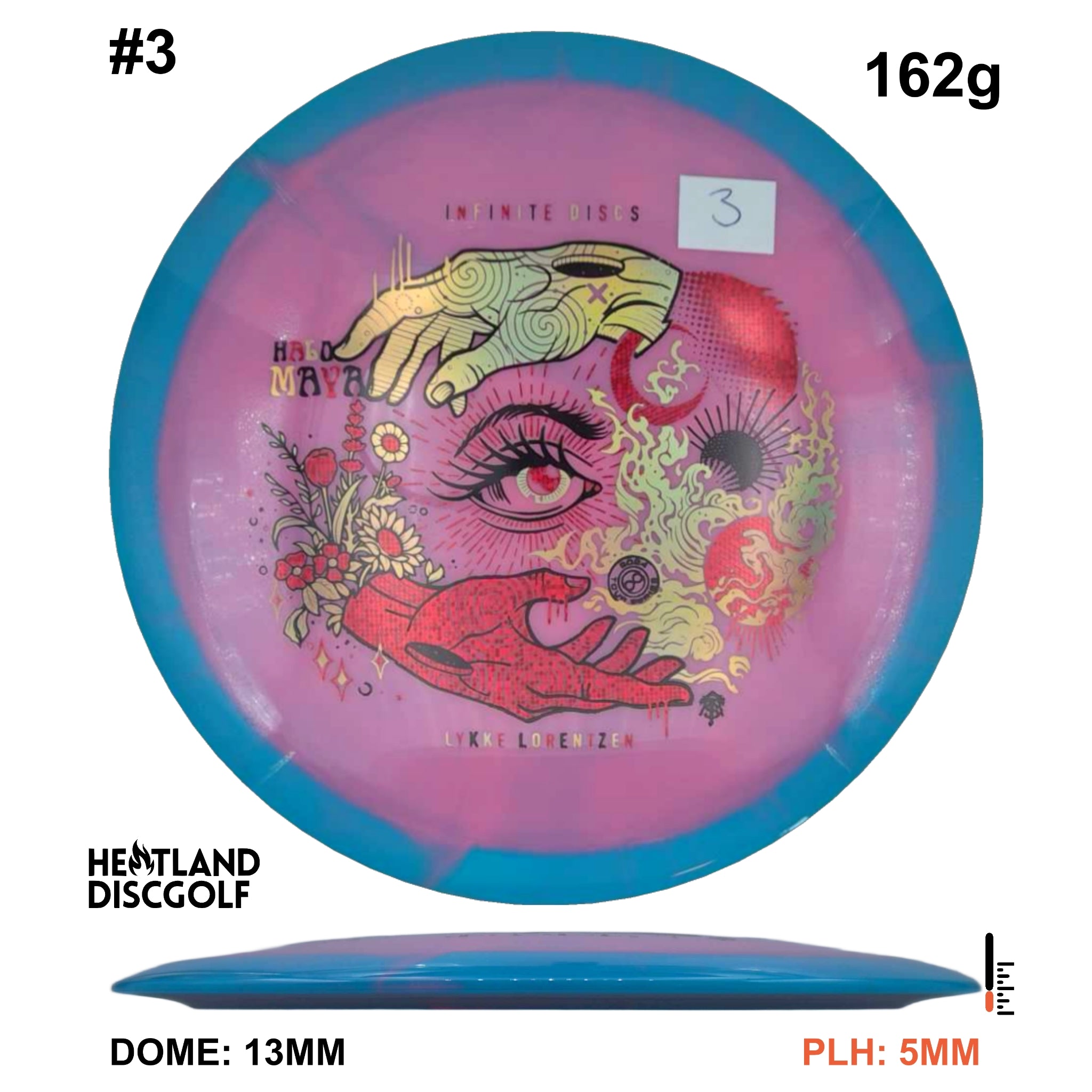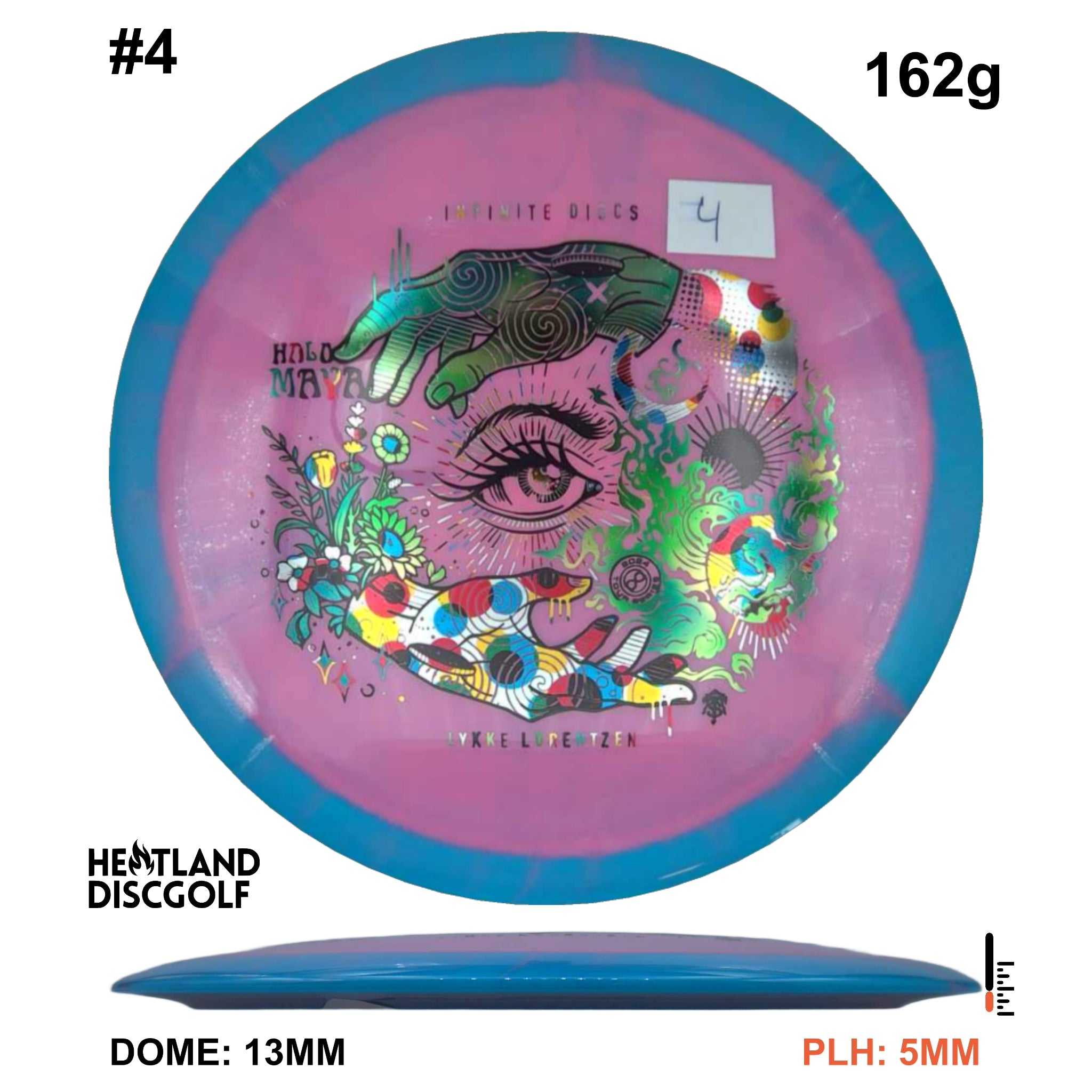 The Maya is an understable distance bomber! Beginner to Intermediate players will find the Maya to be an awesome straight flying distance driver, while advanced to open players will utilize the Maya for massive understable distance shots.
