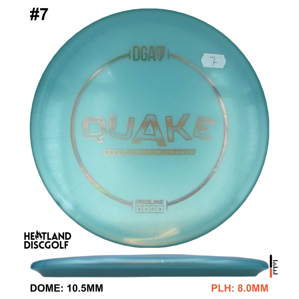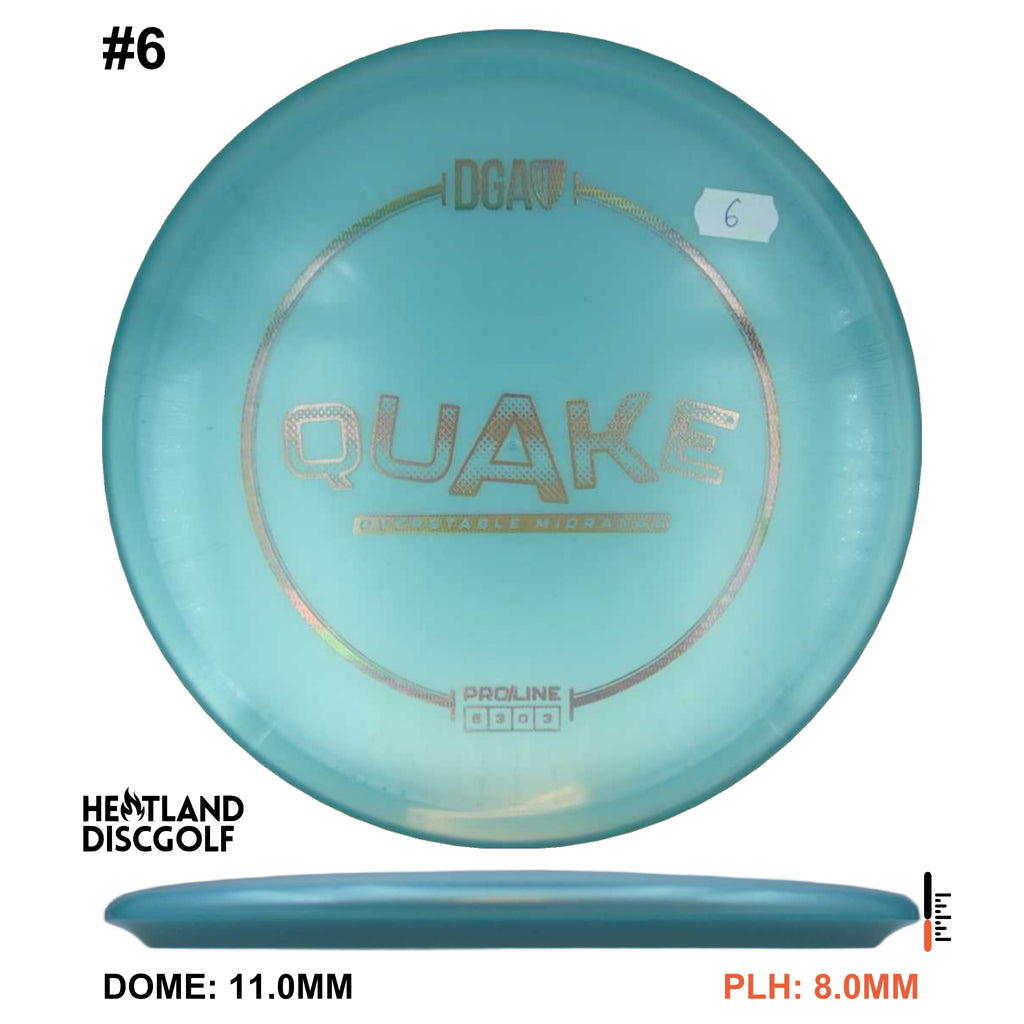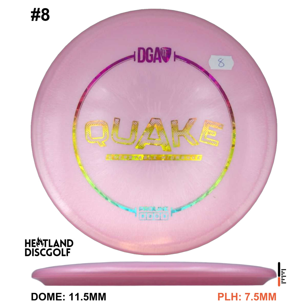The DGA Quake is an overstable midrange with a flat-top that brings confidence in all wind conditions. With a comfortable feel in the hand and reliable fade, it can be great for both backhand and forehand throws.