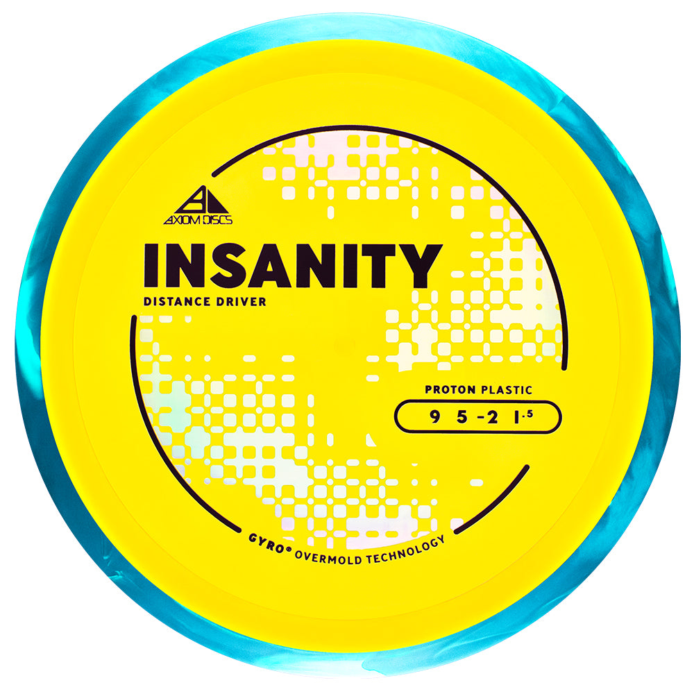 The Insanity is Axiom's first distance driver with a 20mm rim width. This disc is slightly less stable than the ultra popular MVP inertia. If you're looking for a straight flying GYRO driver with loads of attractive color options, you might as well try Insanity.