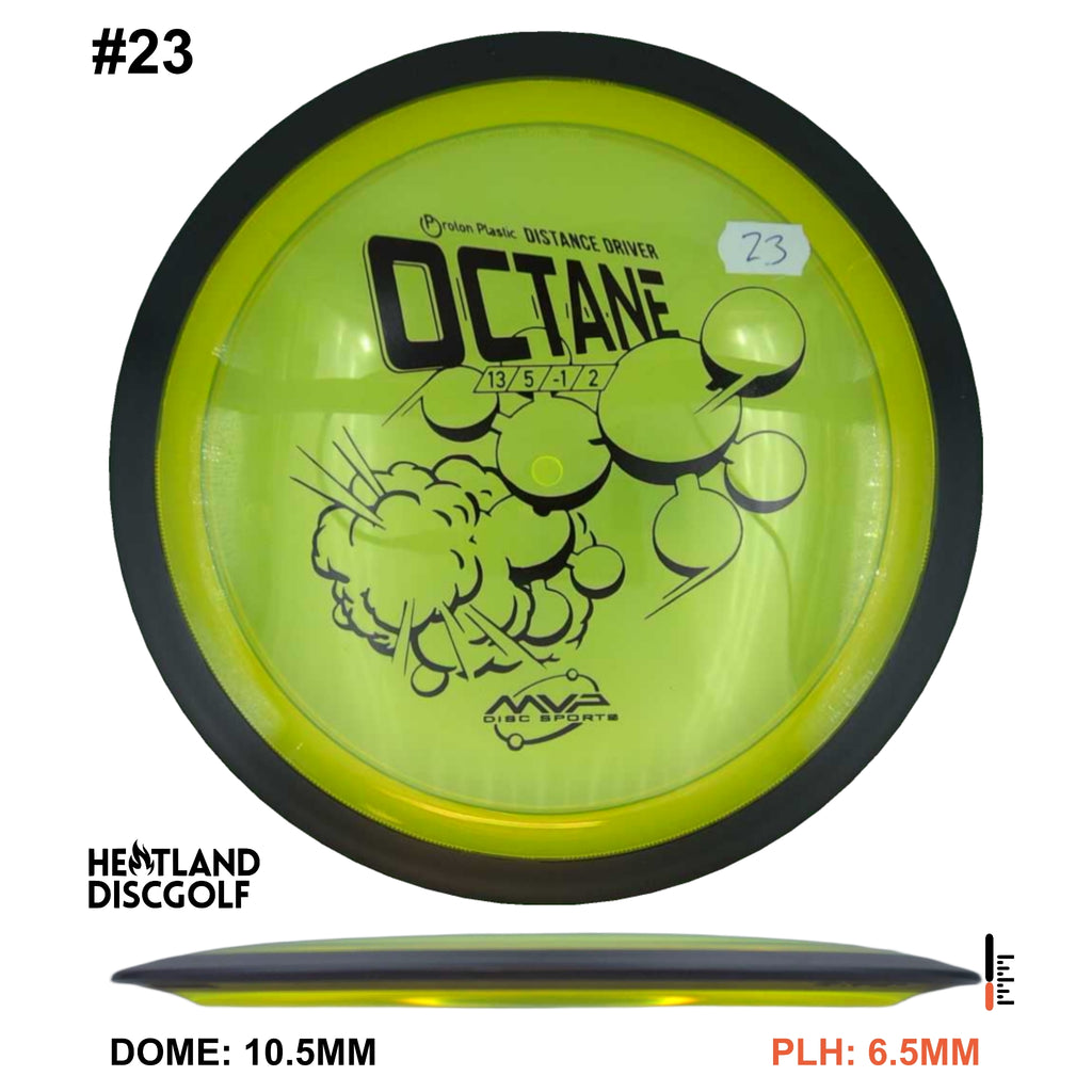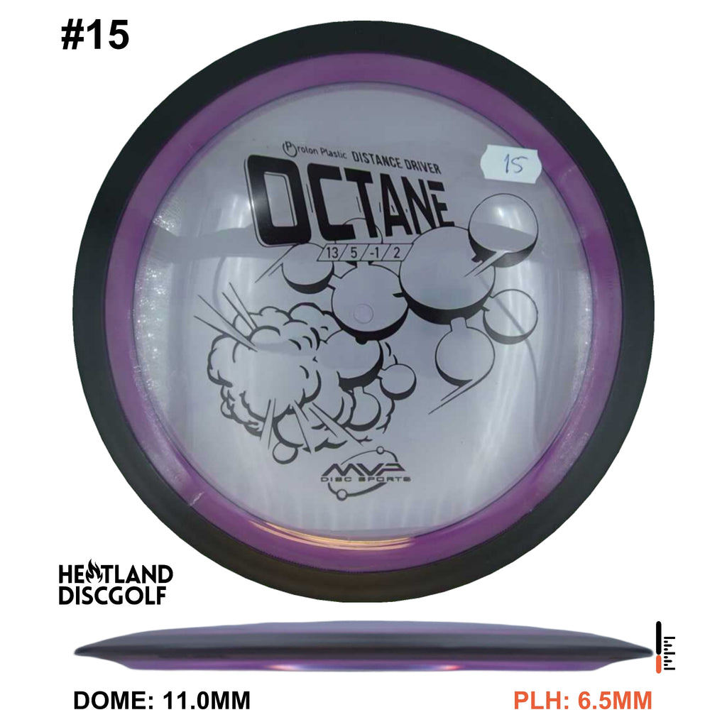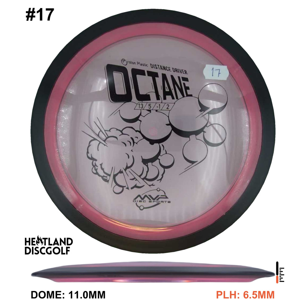 Octane falls in the general stability lineage of Switch, Amp, Inertia, and Wave, with a slow-turning profile that holds long and straight until its fade finish. The 23mm Octane is designed to be relatively less understable than its 21.5mm counterpart Wave. Average throwers should see straight flights with a bit of shallow turn, while power throwers will be able to hyzerflip for max distance and tailwind lines.