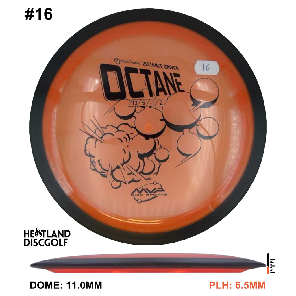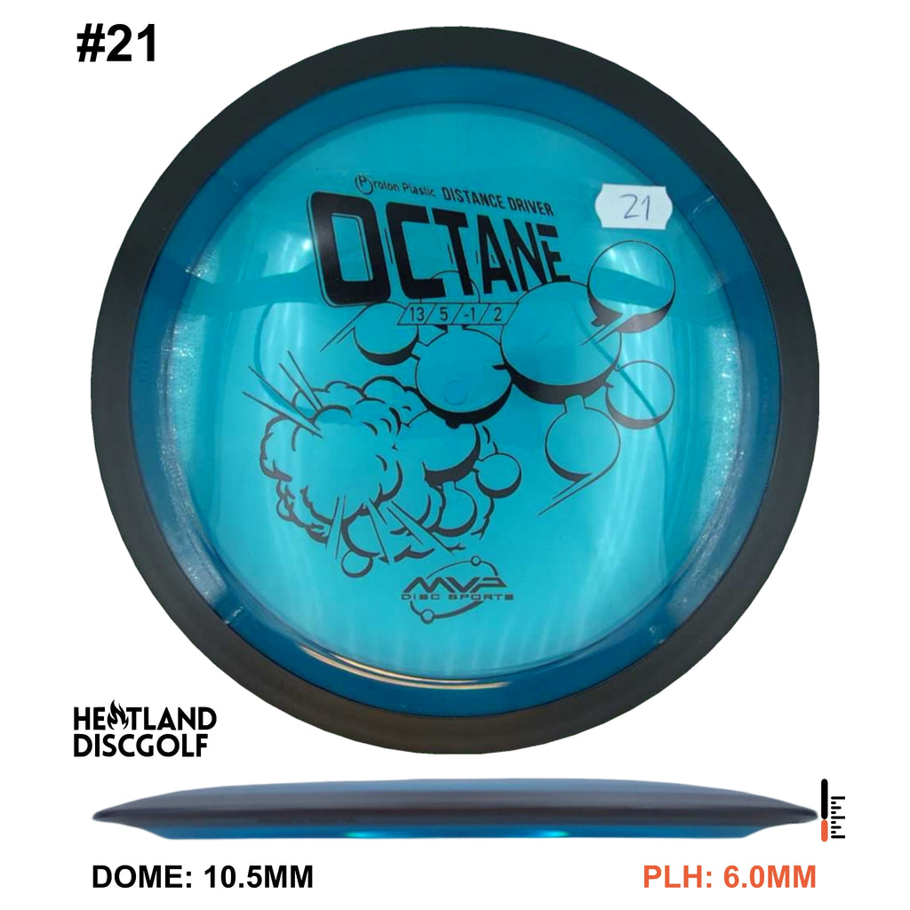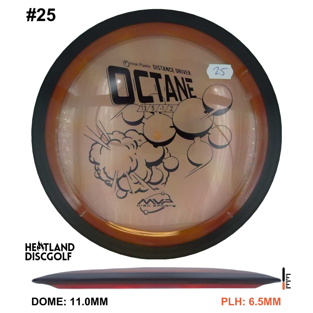 Octane falls in the general stability lineage of Switch, Amp, Inertia, and Wave, with a slow-turning profile that holds long and straight until its fade finish. The 23mm Octane is designed to be relatively less understable than its 21.5mm counterpart Wave. Average throwers should see straight flights with a bit of shallow turn, while power throwers will be able to hyzerflip for max distance and tailwind lines.