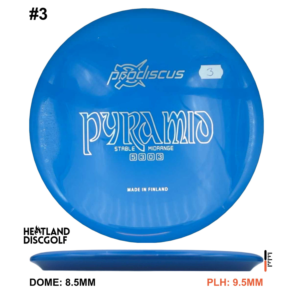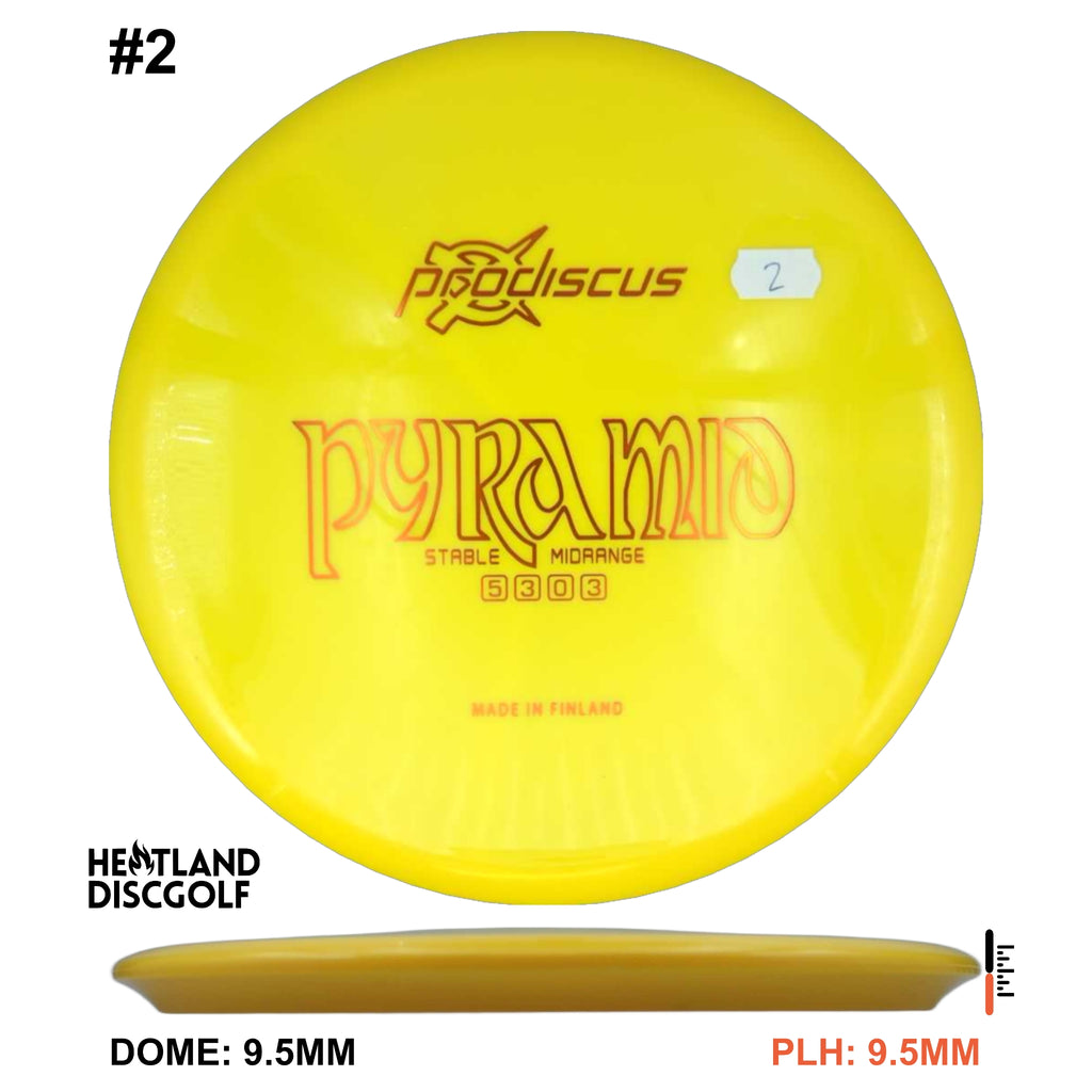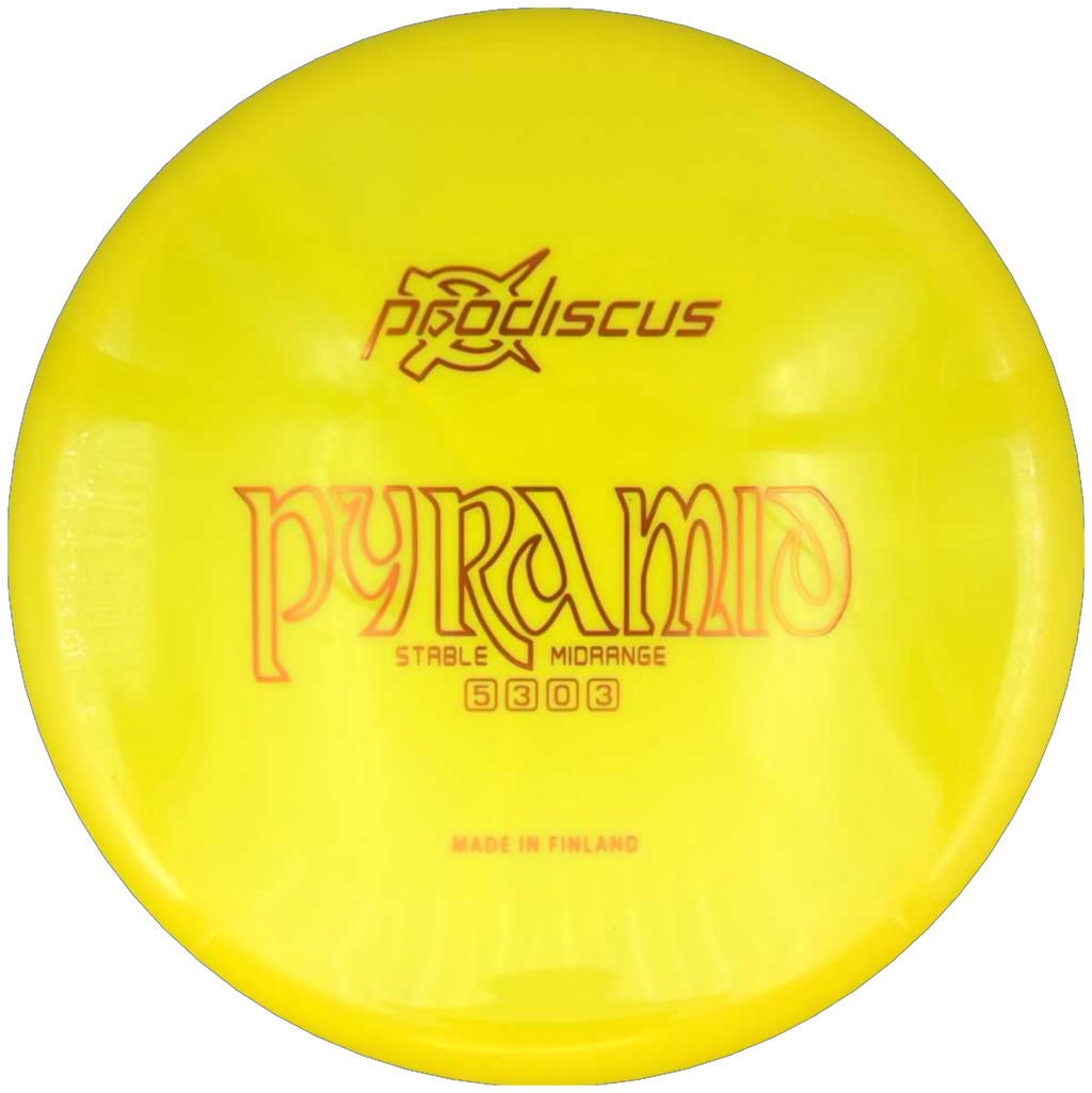 The Pyramid by Prodiscus is a pro-level stable-to-overstable midrange with a mostly flat profile that is ideal for both forehand and backhand short-range throws. It has a steady finishing fade every time, even when used by experienced power throwers.