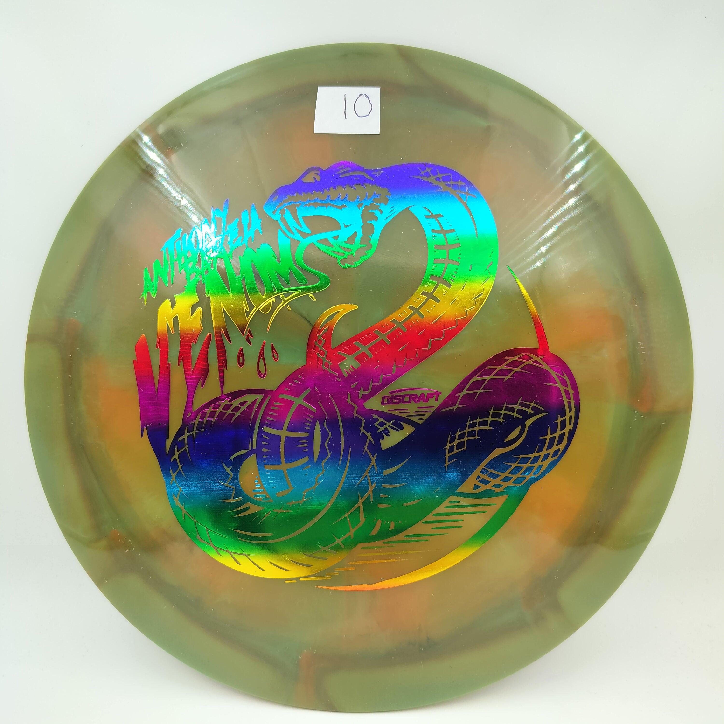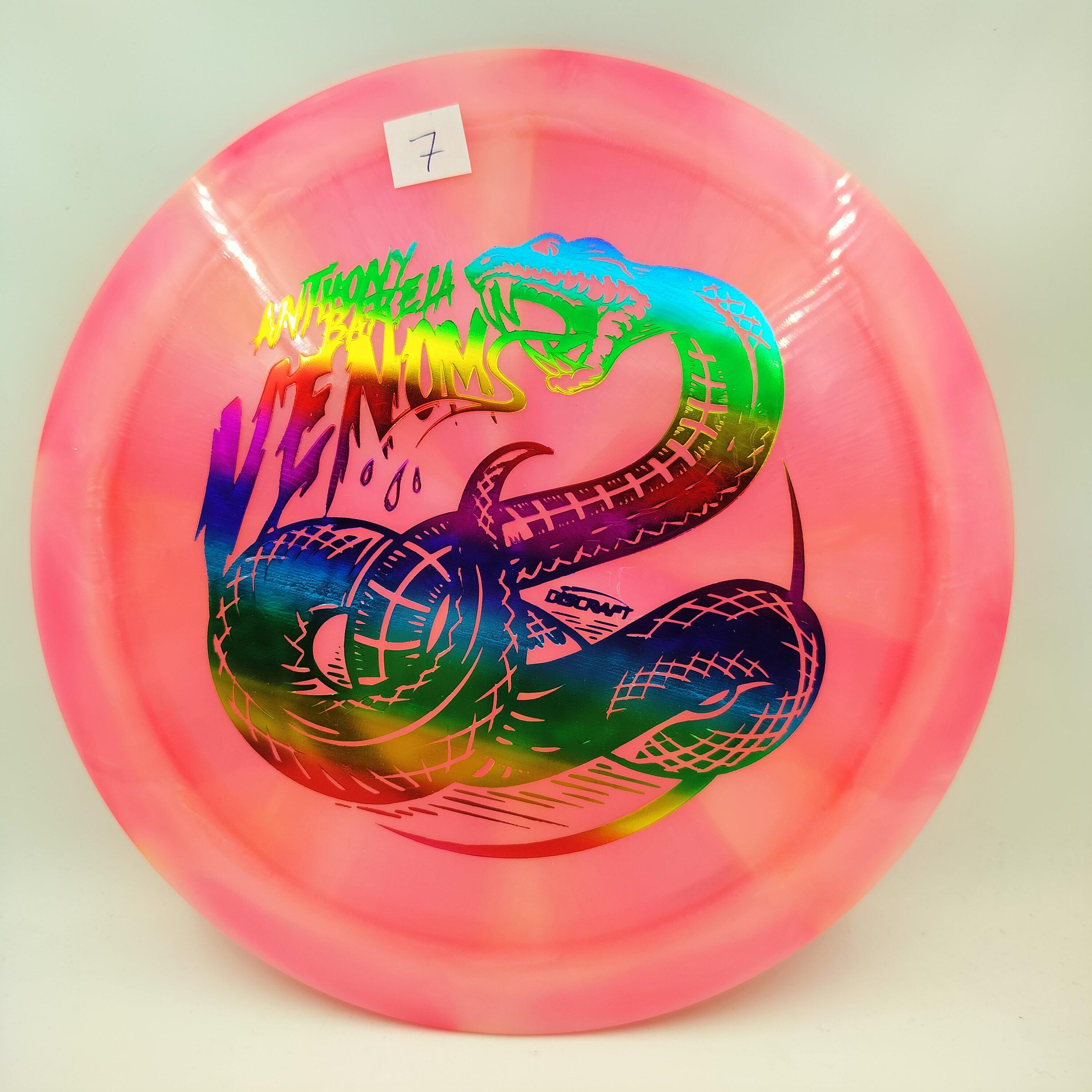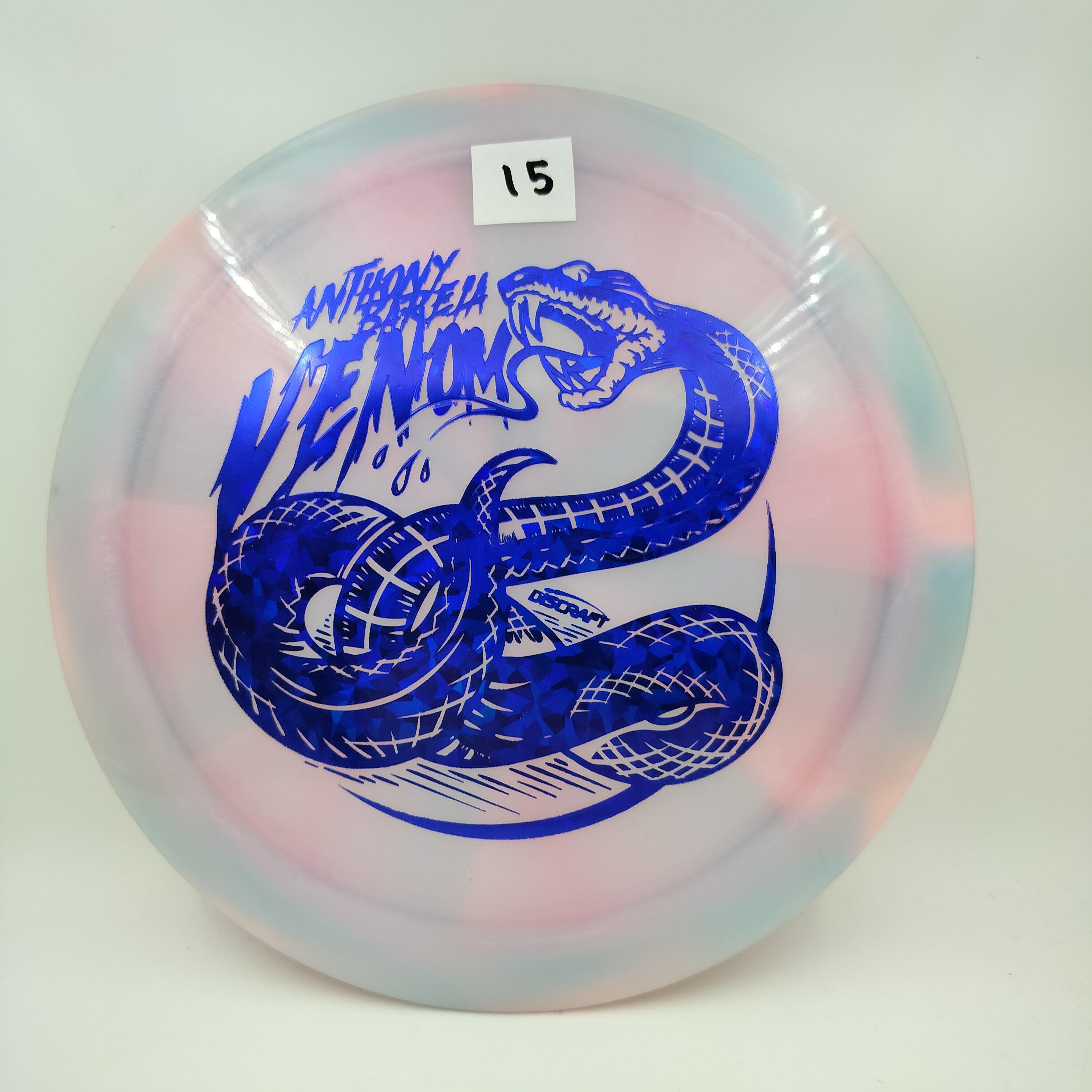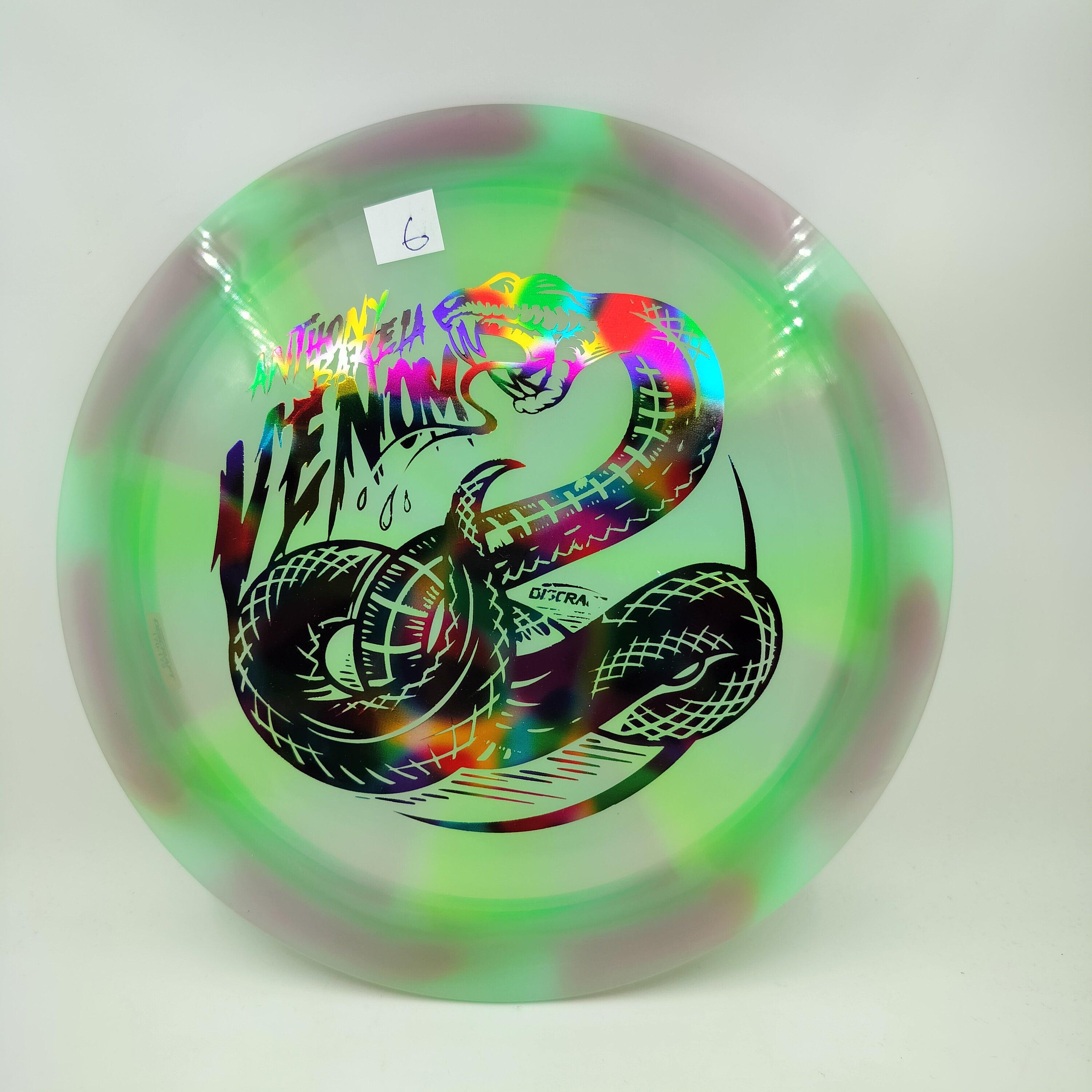 Description: Drive your fangs into the all-new Venom. This entirely retooled disc is here to stay. That’s why our team took everything that works (and nothing that doesn’t) about the previous Venom to bring you a reimagined, consistent, overstable maximum distance driver. Fulfilling a need in many players bags, this addition to our lineup will become a favorite amongst power throwers and those looking for a reliable distance driver.