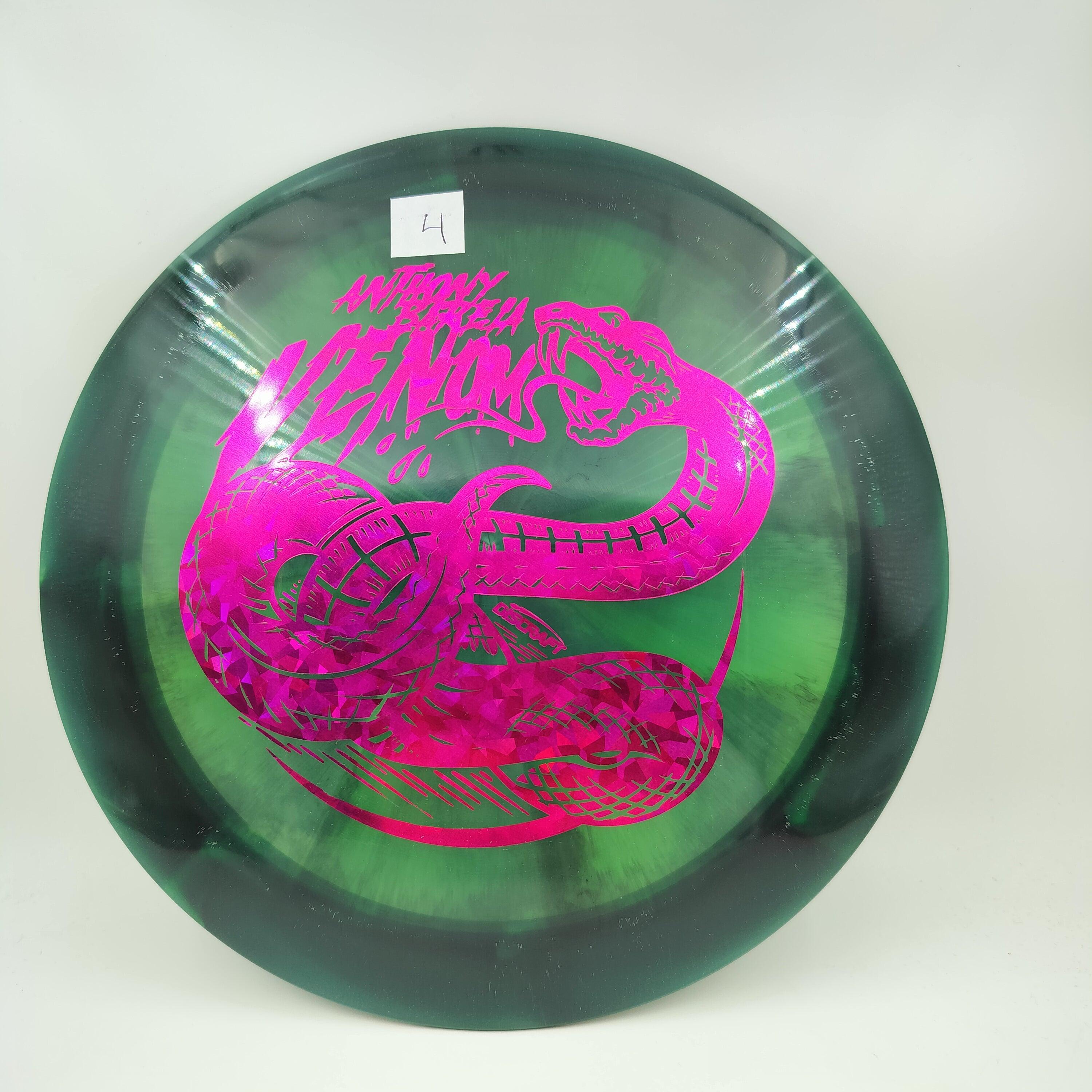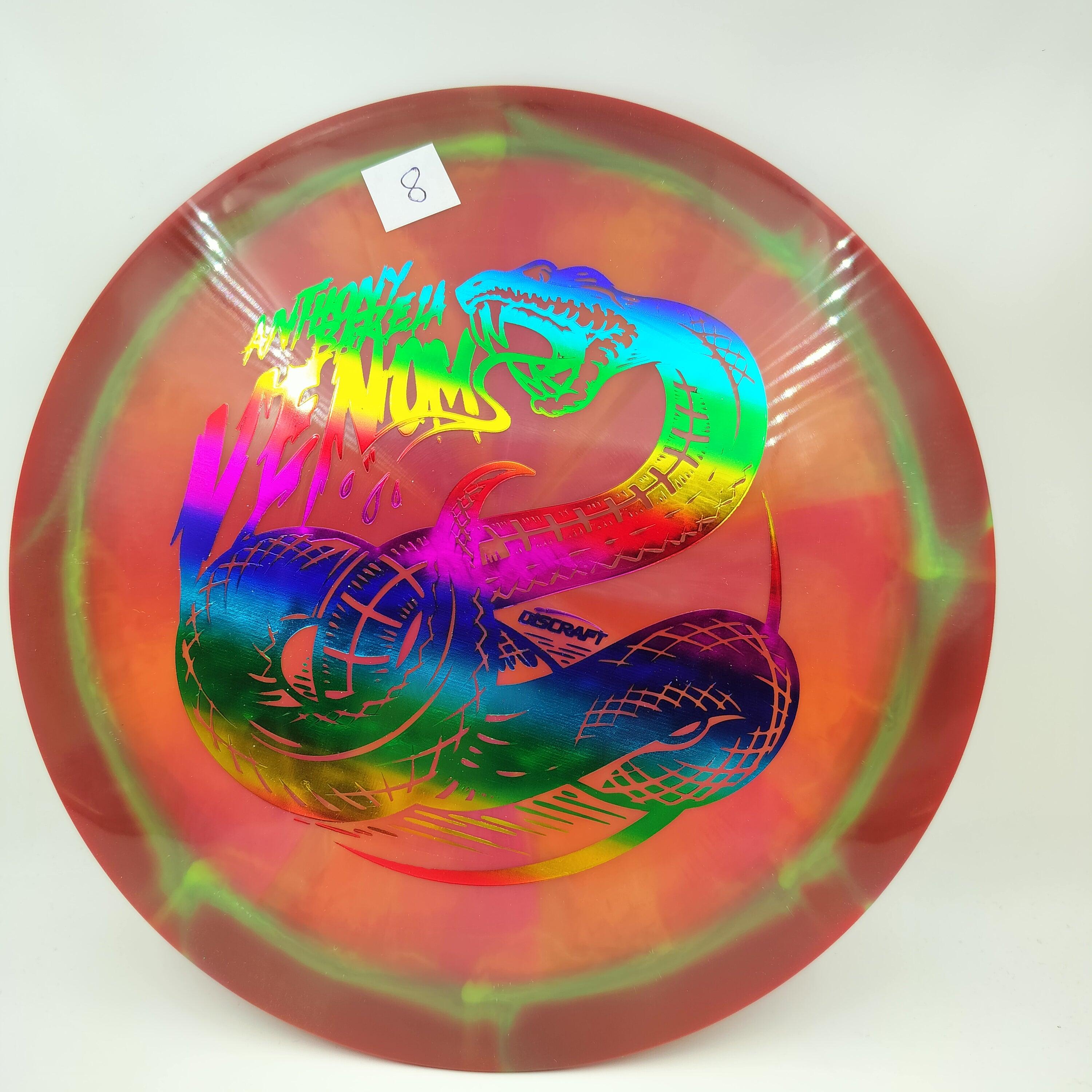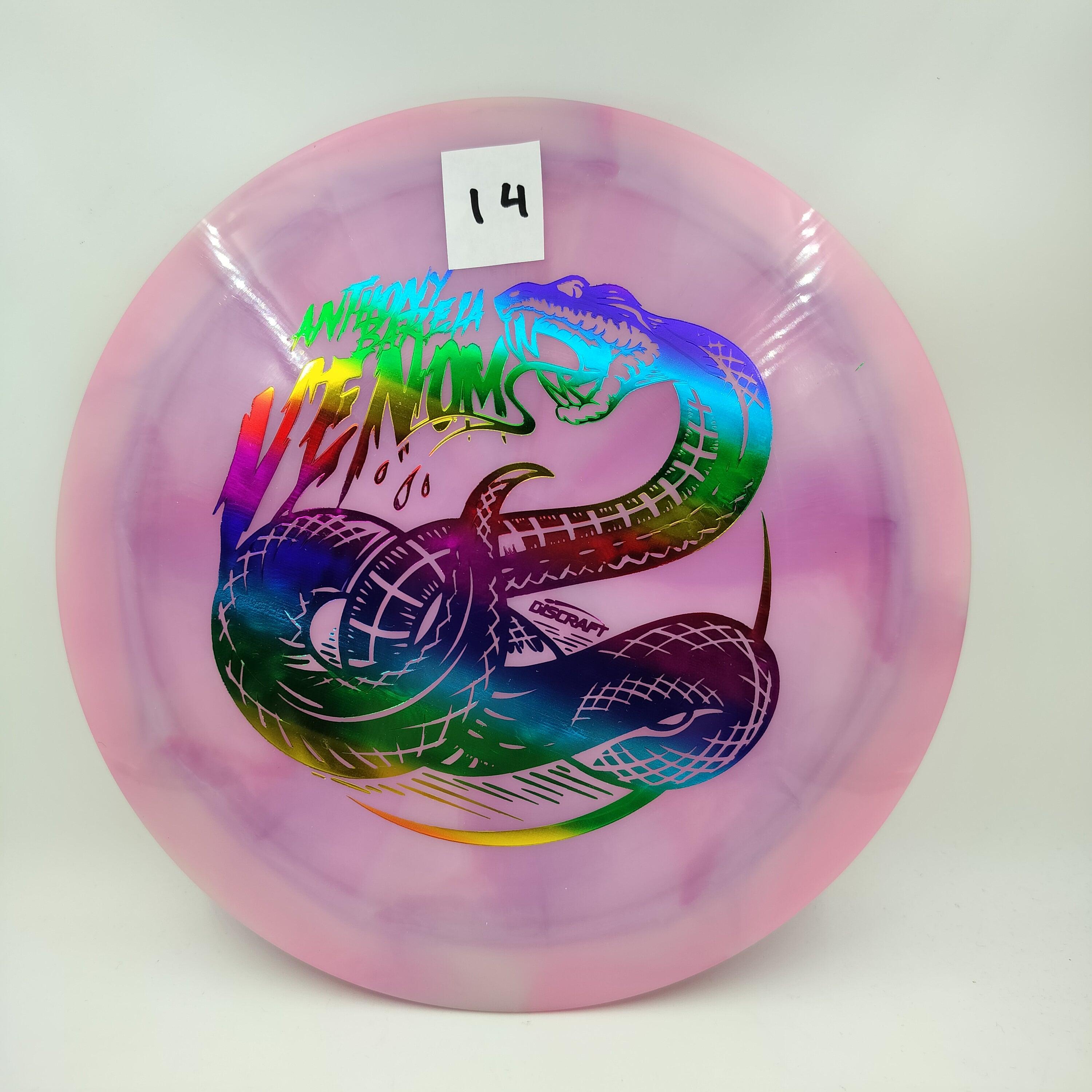 Description: Drive your fangs into the all-new Venom. This entirely retooled disc is here to stay. That’s why our team took everything that works (and nothing that doesn’t) about the previous Venom to bring you a reimagined, consistent, overstable maximum distance driver. Fulfilling a need in many players bags, this addition to our lineup will become a favorite amongst power throwers and those looking for a reliable distance driver.