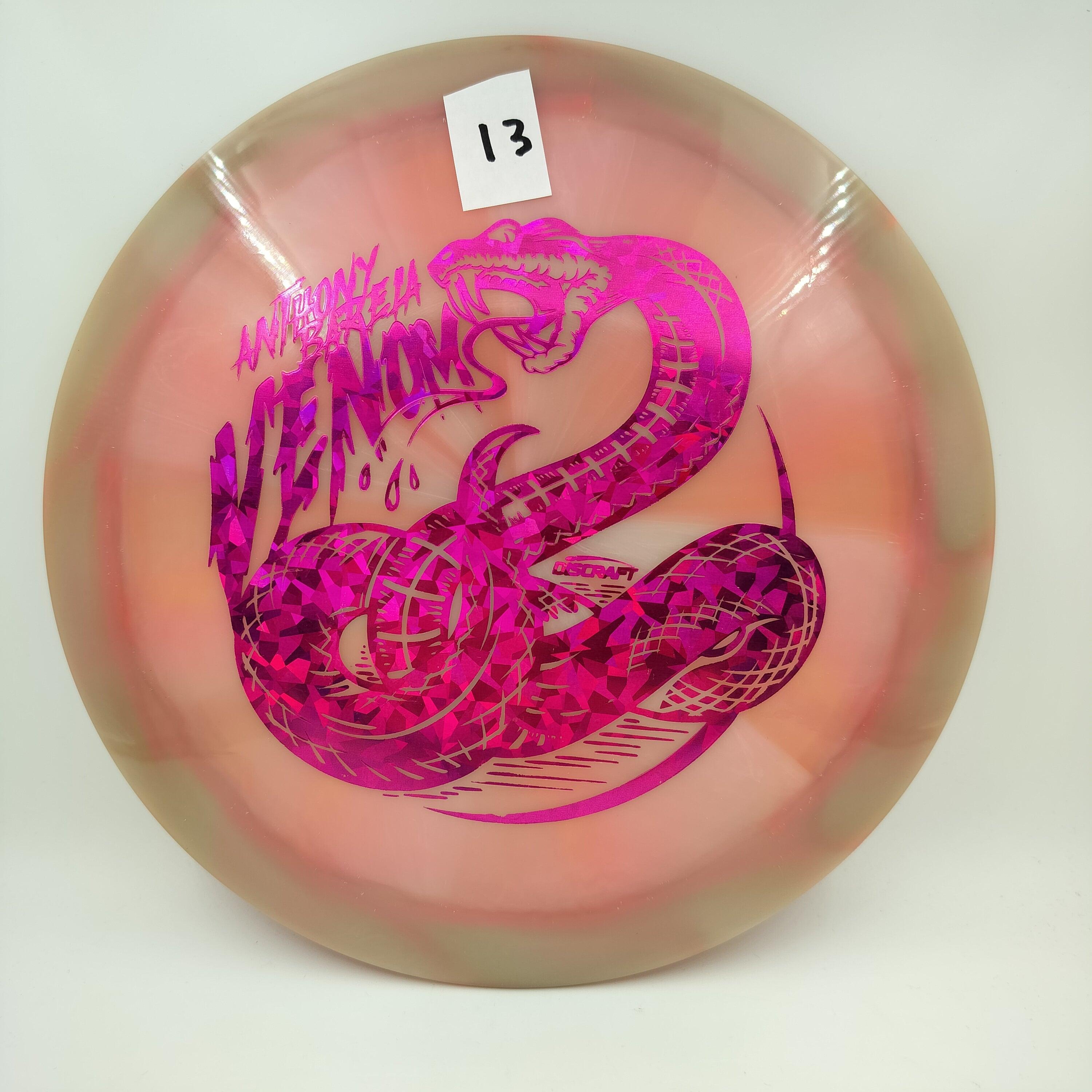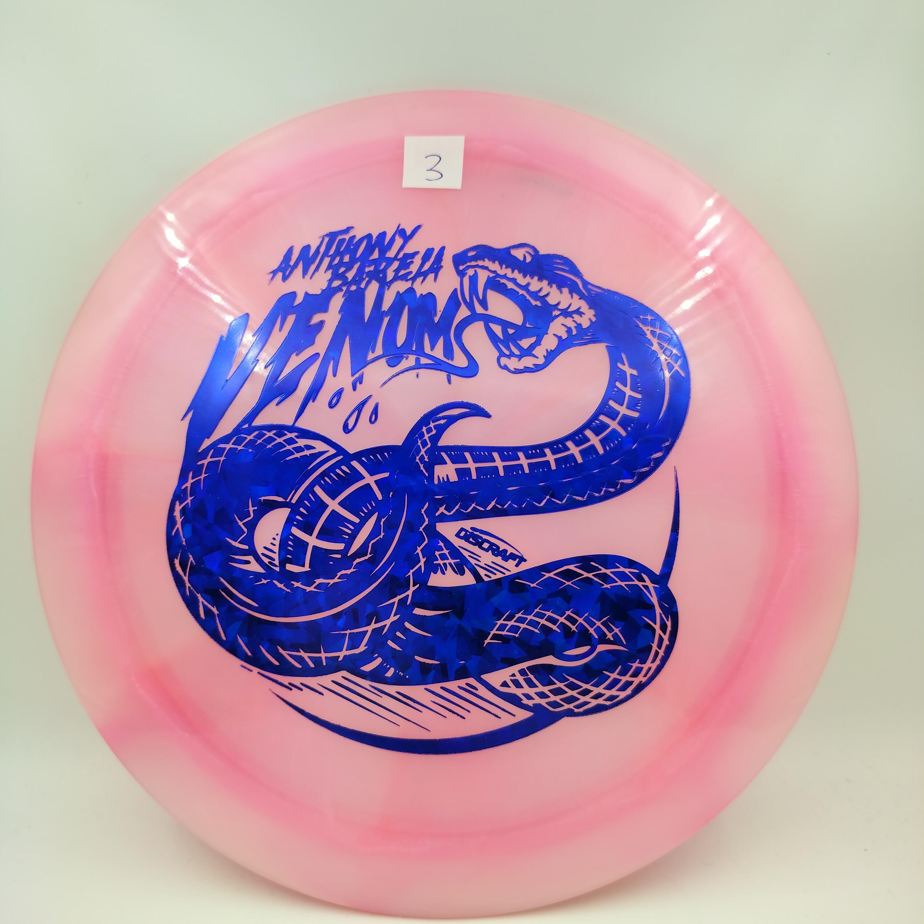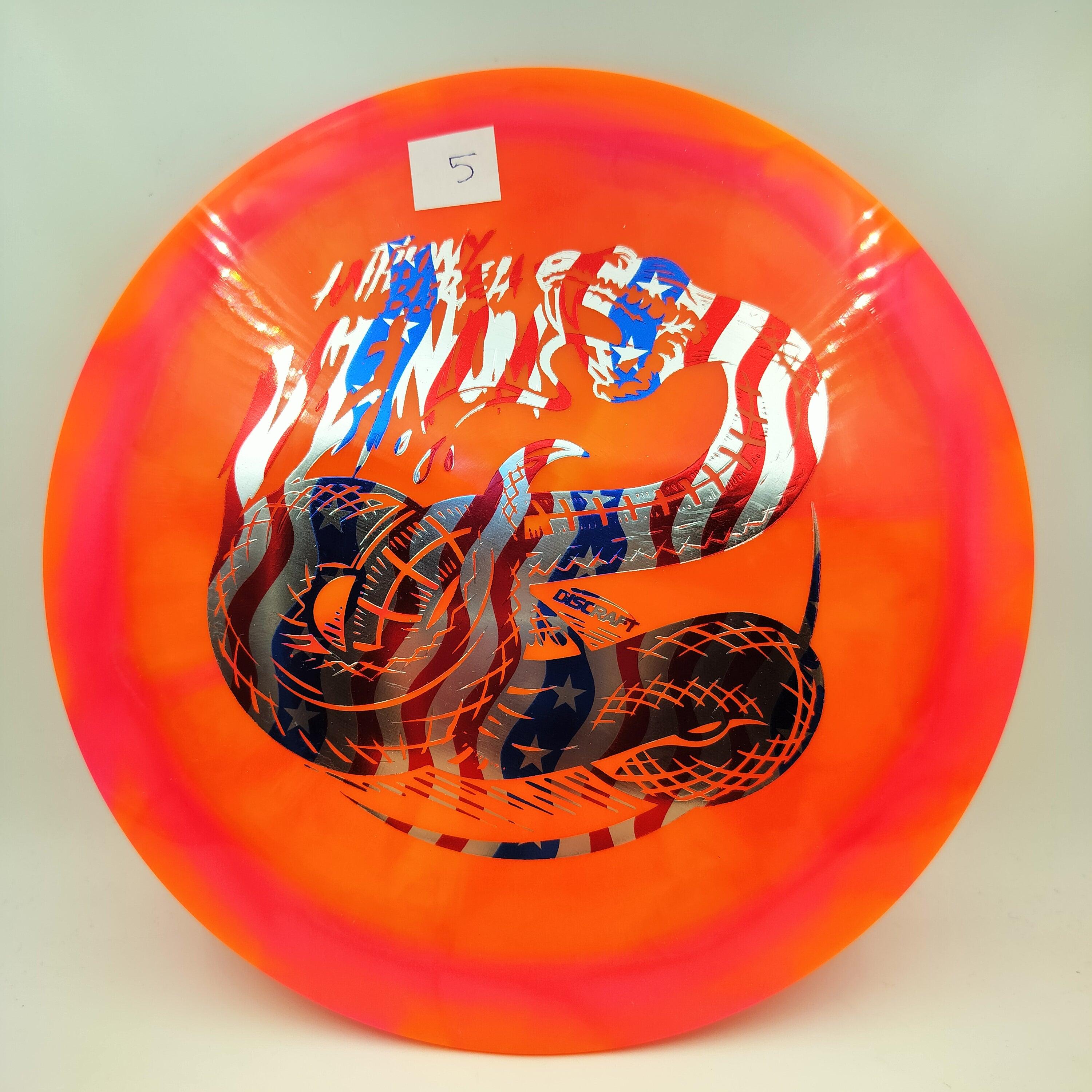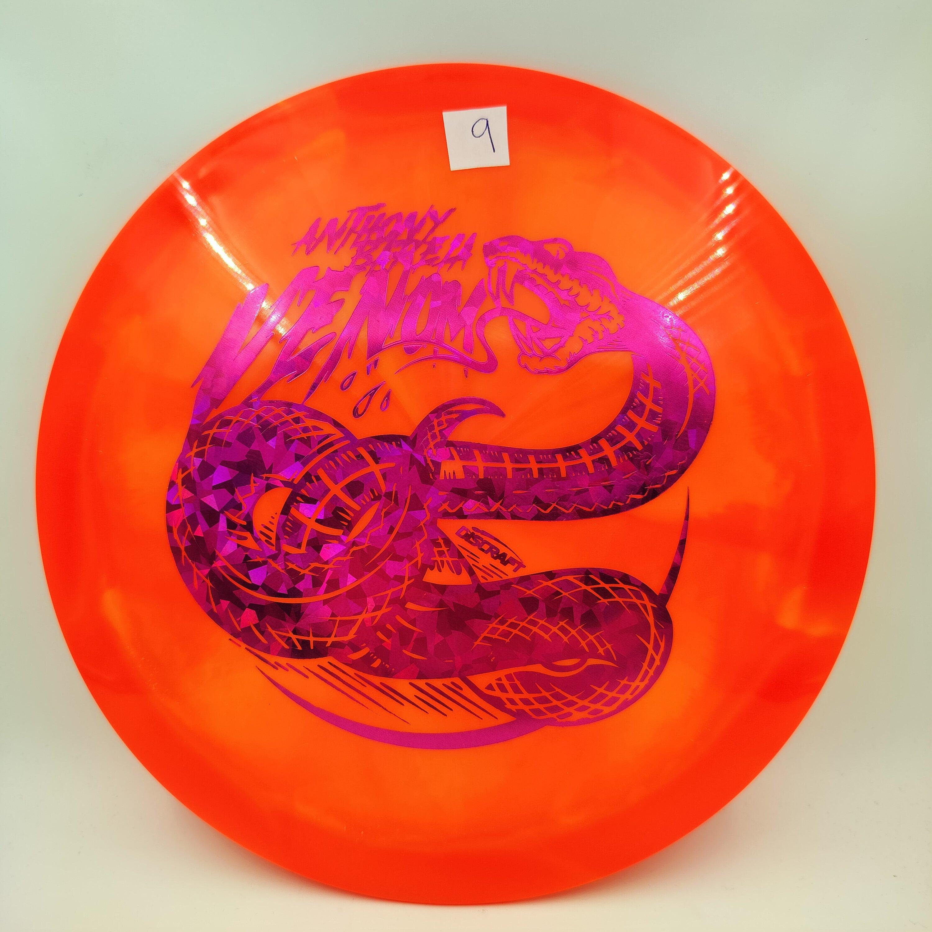 Description: Drive your fangs into the all-new Venom. This entirely retooled disc is here to stay. That’s why our team took everything that works (and nothing that doesn’t) about the previous Venom to bring you a reimagined, consistent, overstable maximum distance driver. Fulfilling a need in many players bags, this addition to our lineup will become a favorite amongst power throwers and those looking for a reliable distance driver.