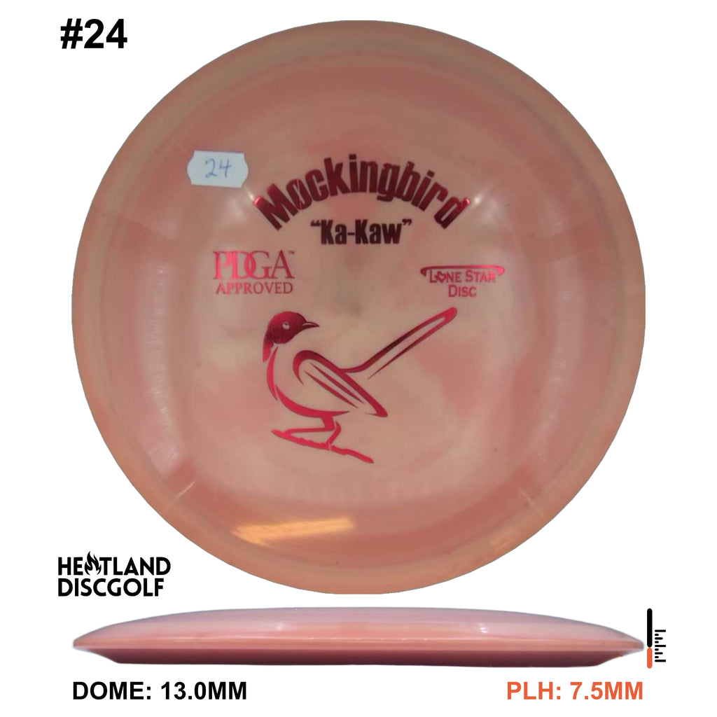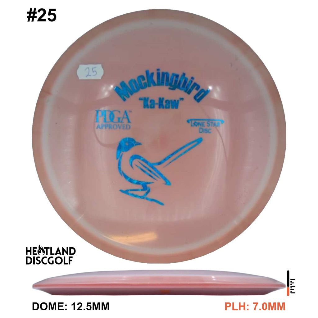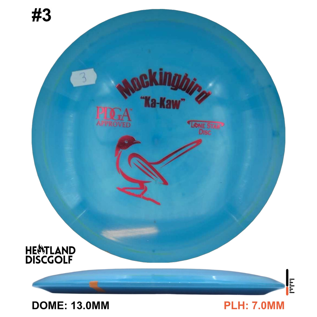 The Mockingbird is our understable fairway driver. When you’re in a situation where control is needed, KA-KA! The Mockingbird should be what you reach for! With a smooth throw, the Mockingbird will take a straight flight. Give it hyzer, and it will hold it. Put a little power behind it, and it will turn hard and finish dependably. The Mockingbird has a versatility to it that will work will for players of all skill levels.
