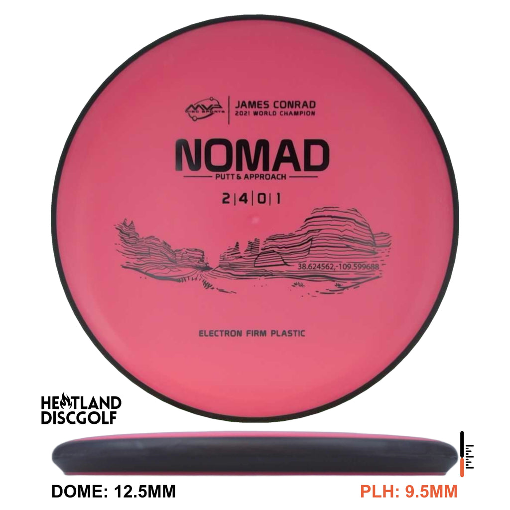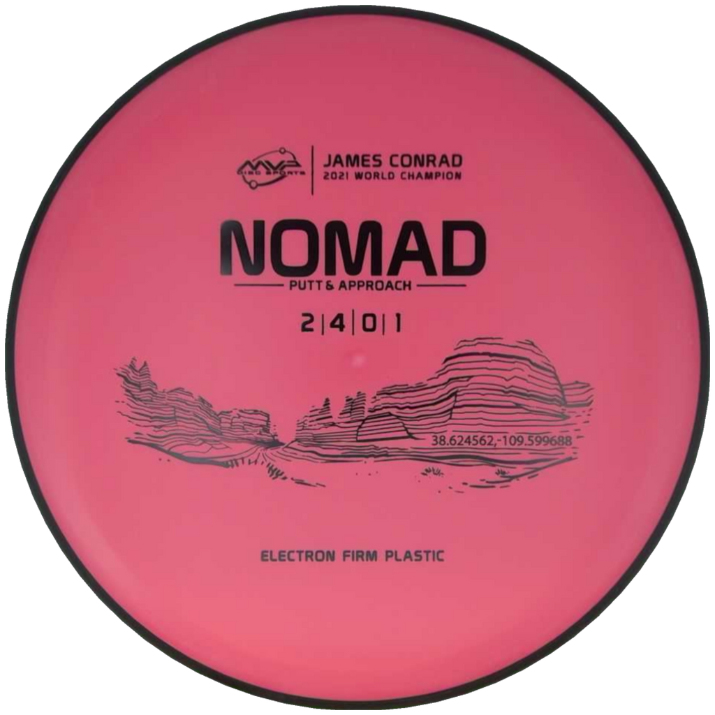 The Nomad is the first disc in the James Conrad line. This putter has a small bead to provide additional longevity. Proving to have a neutral flight on drives and a stable to overstable flight while putting. Allowing for a go-to putter that can handle power on the drives and spin on the putts.