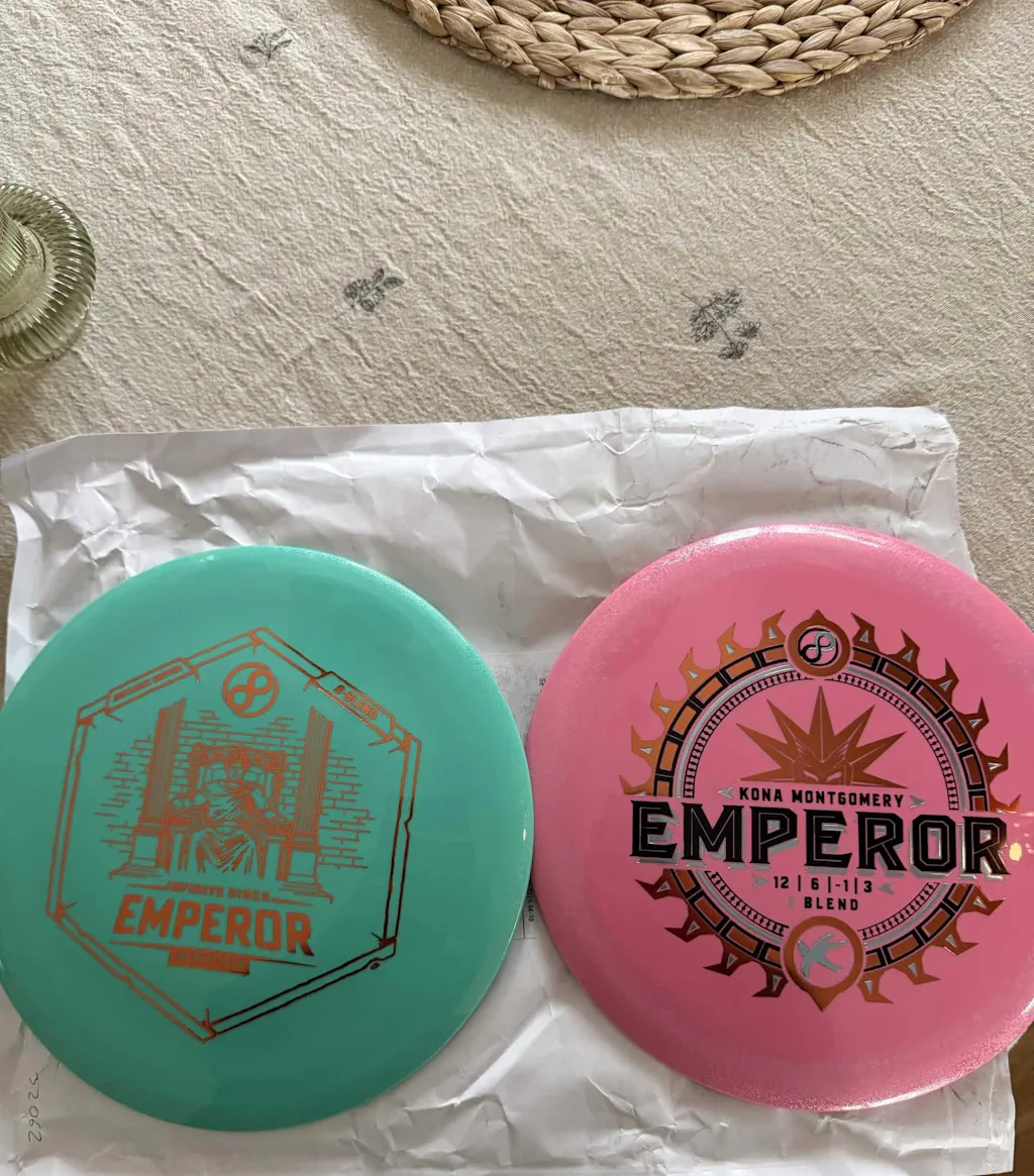 Conquer the courses with the Emperor from Infinite Discs. This is a moderately overstable, powerful distance driver that you will need to enhance the accuracy of your distance game.