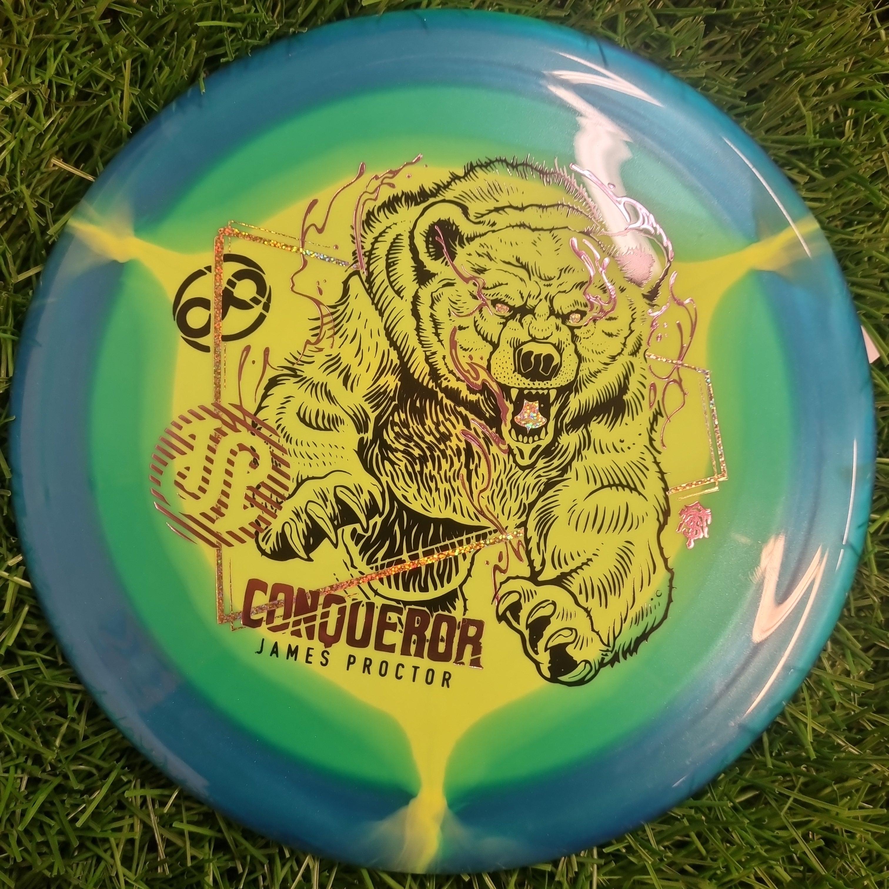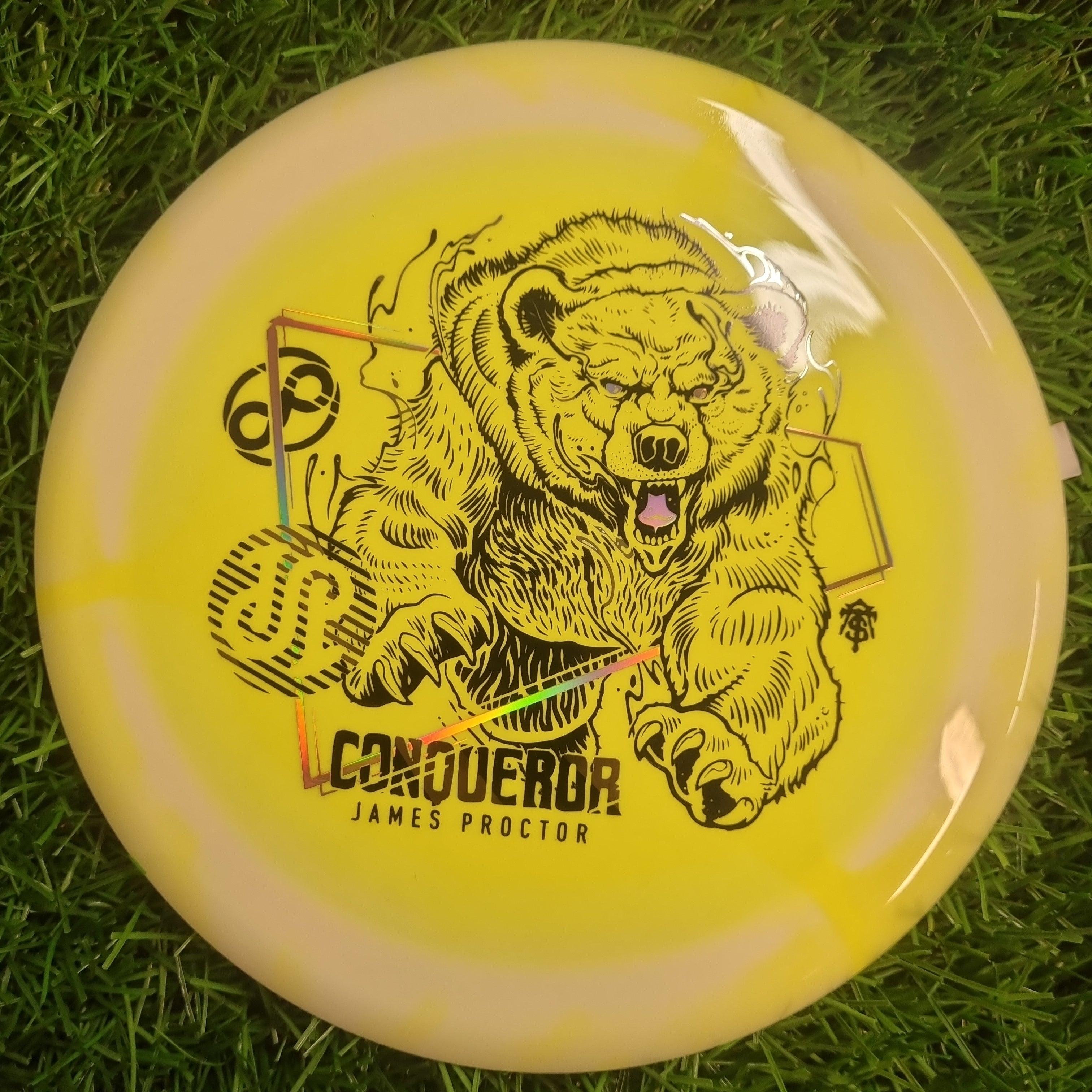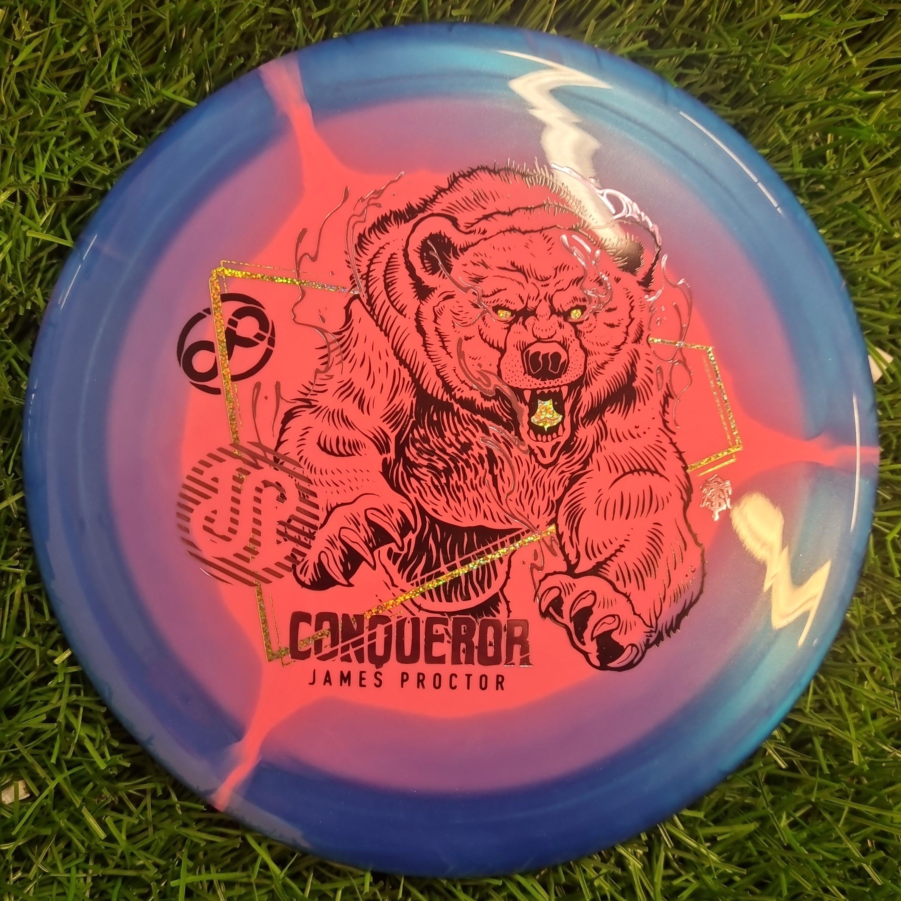 The Conqueror by Infinite Discs is a formidable overstable distance driver designed to conquer the challenges of the most powerful throws, even in the hands of professional players. When unleashed, the Conqueror showcases an impressive end-of-flight fade, whether launched forehand or backhand, and dependably conquers fierce headwinds with unwavering stability.