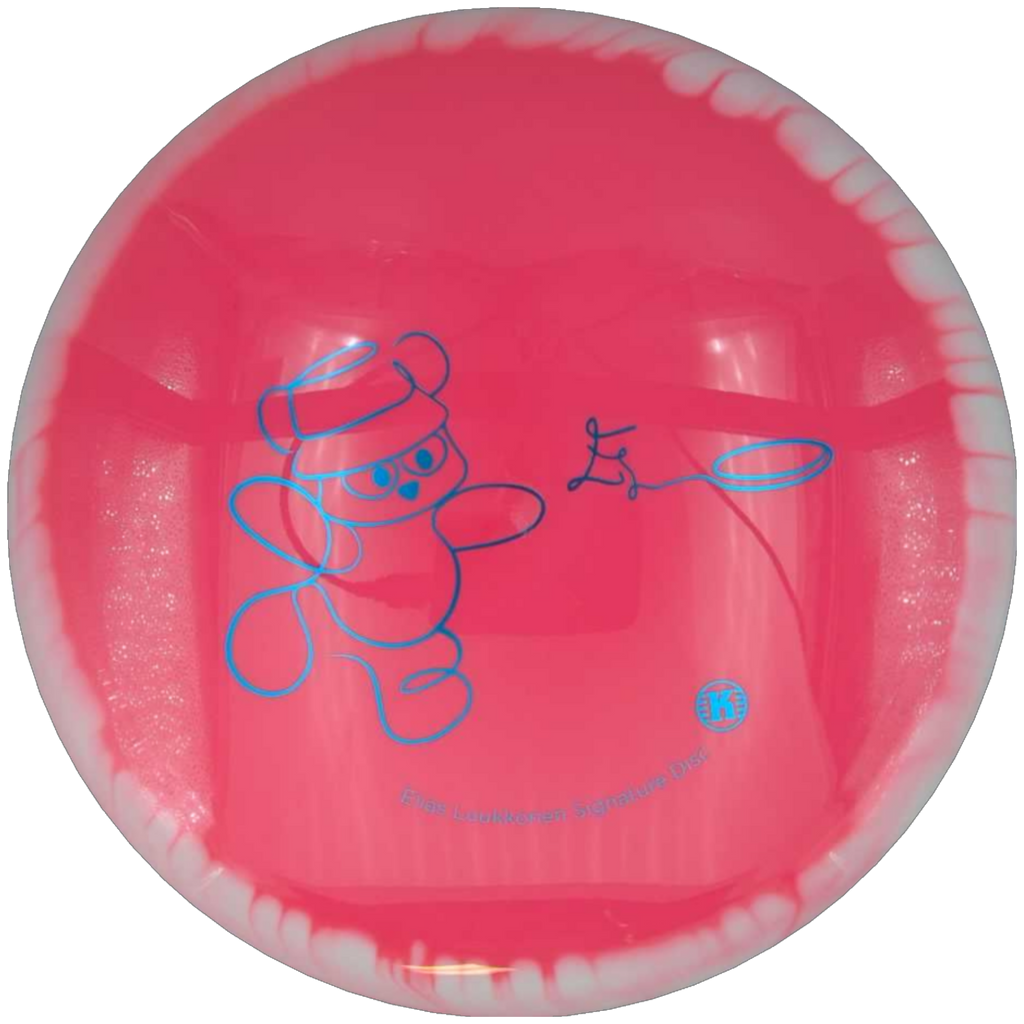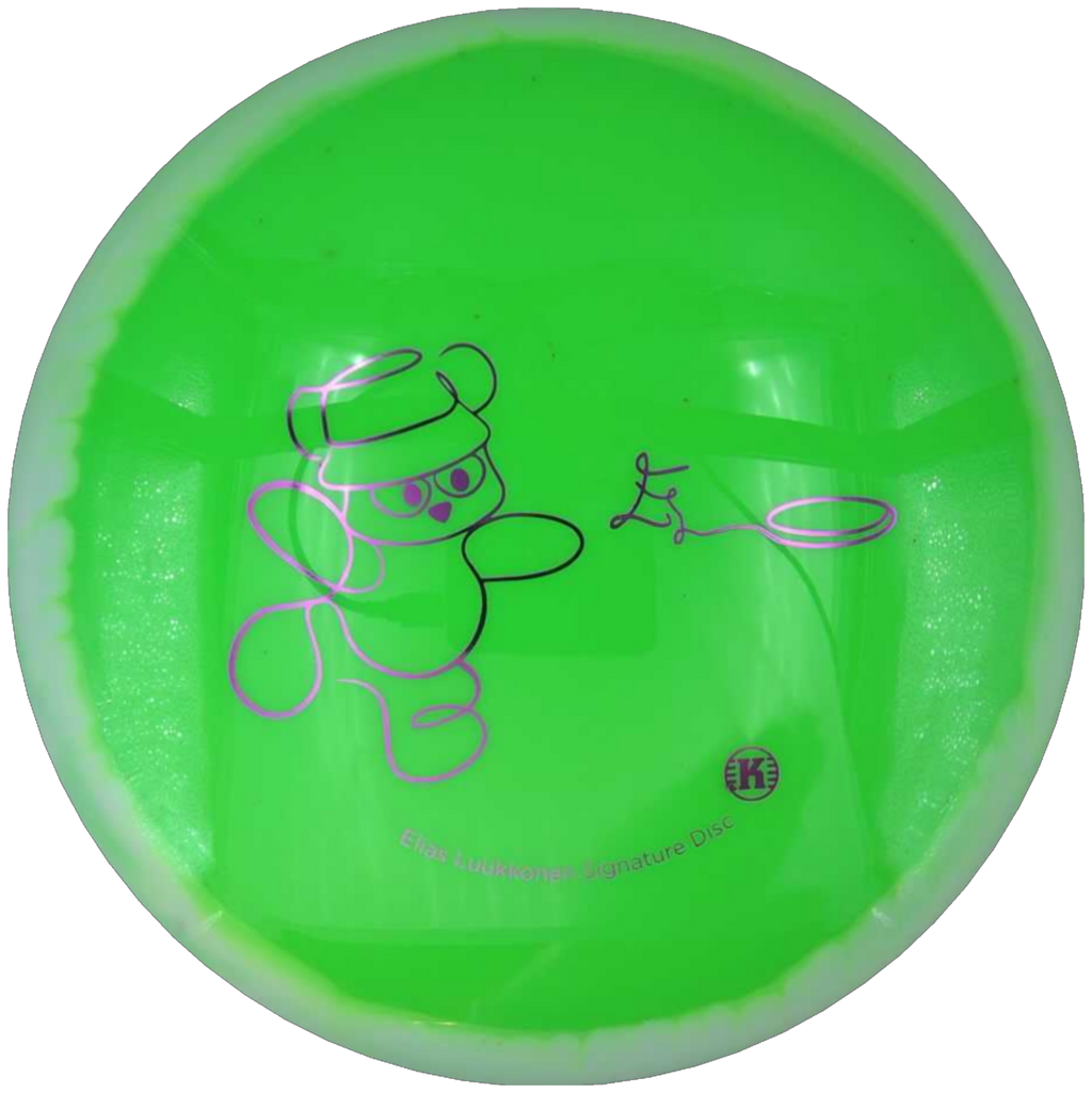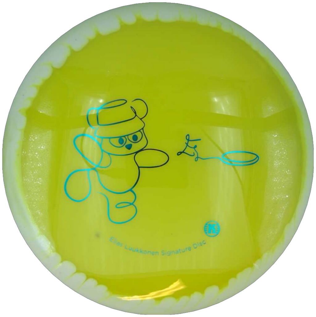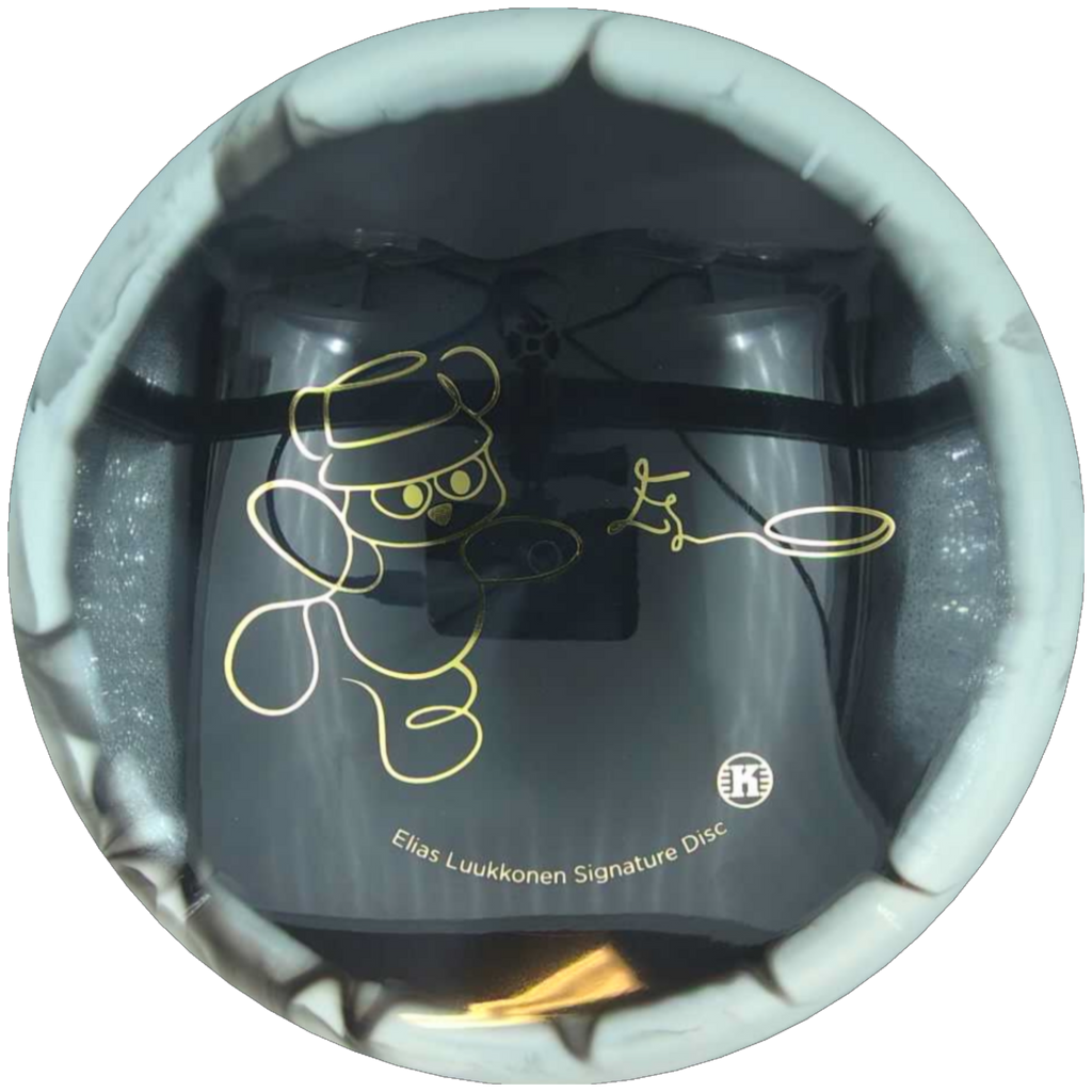 The signature stamp features Elias Luukkonen’s bear throwing a frisbee, combining a distinctive visual identity with a subtle nod to his connection with nature and his personal approach to the game. This disc exemplifies accuracy, consistency, and professional design.