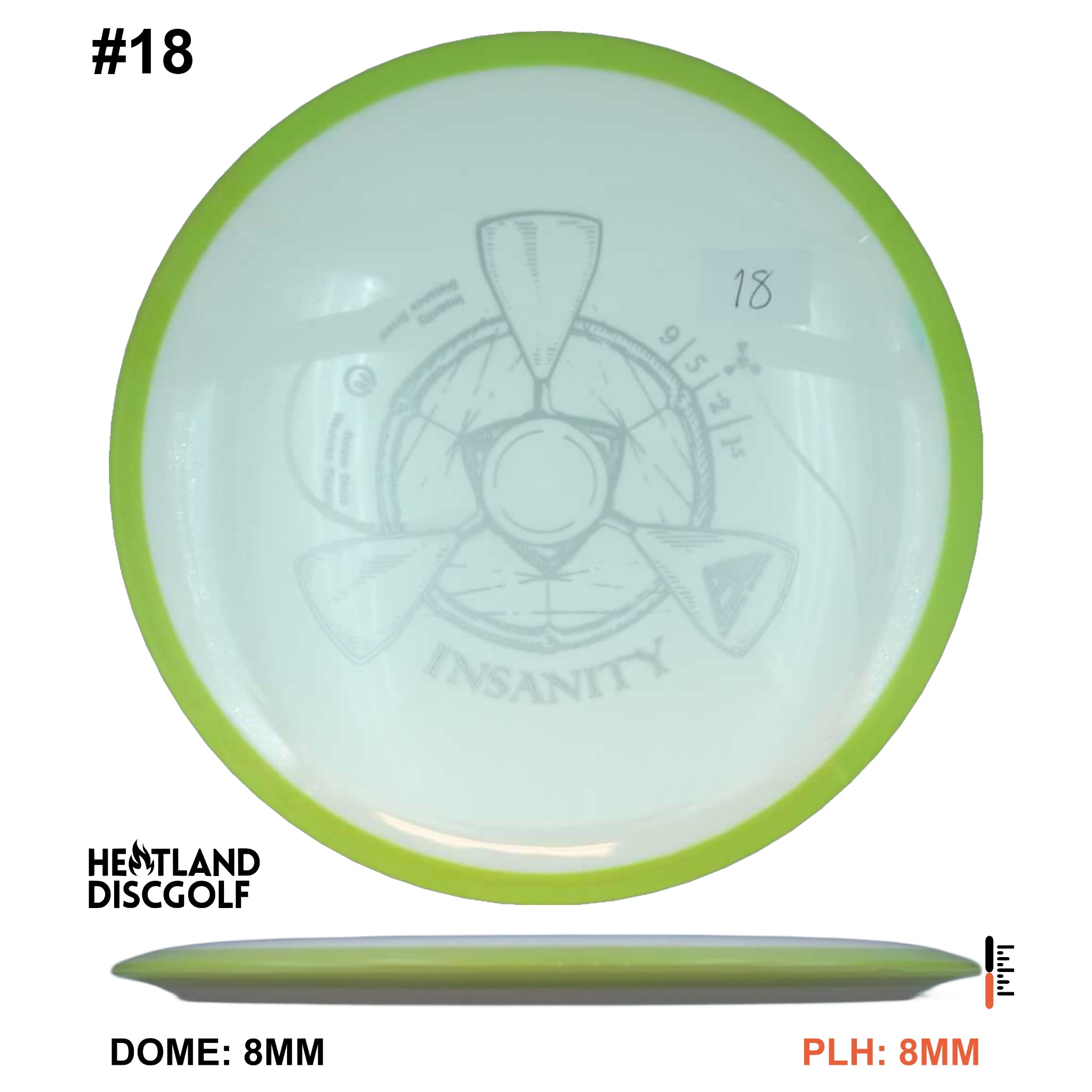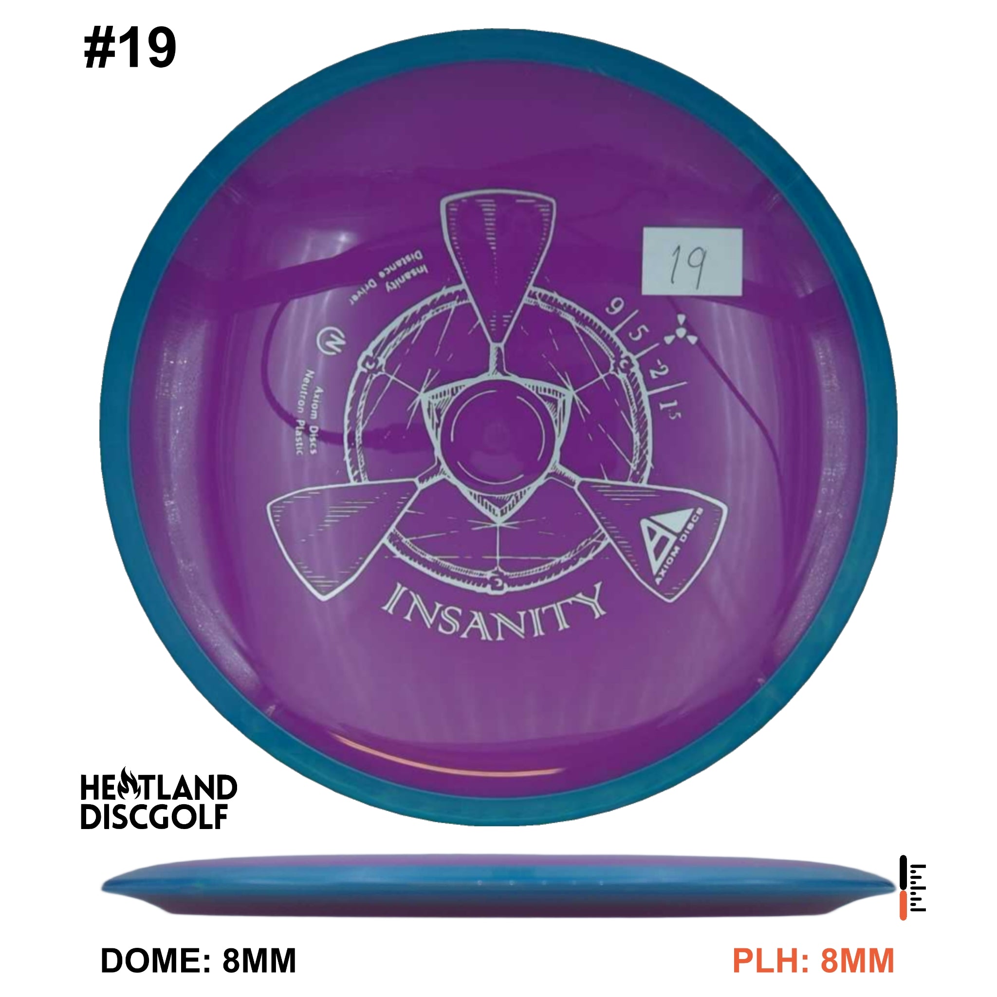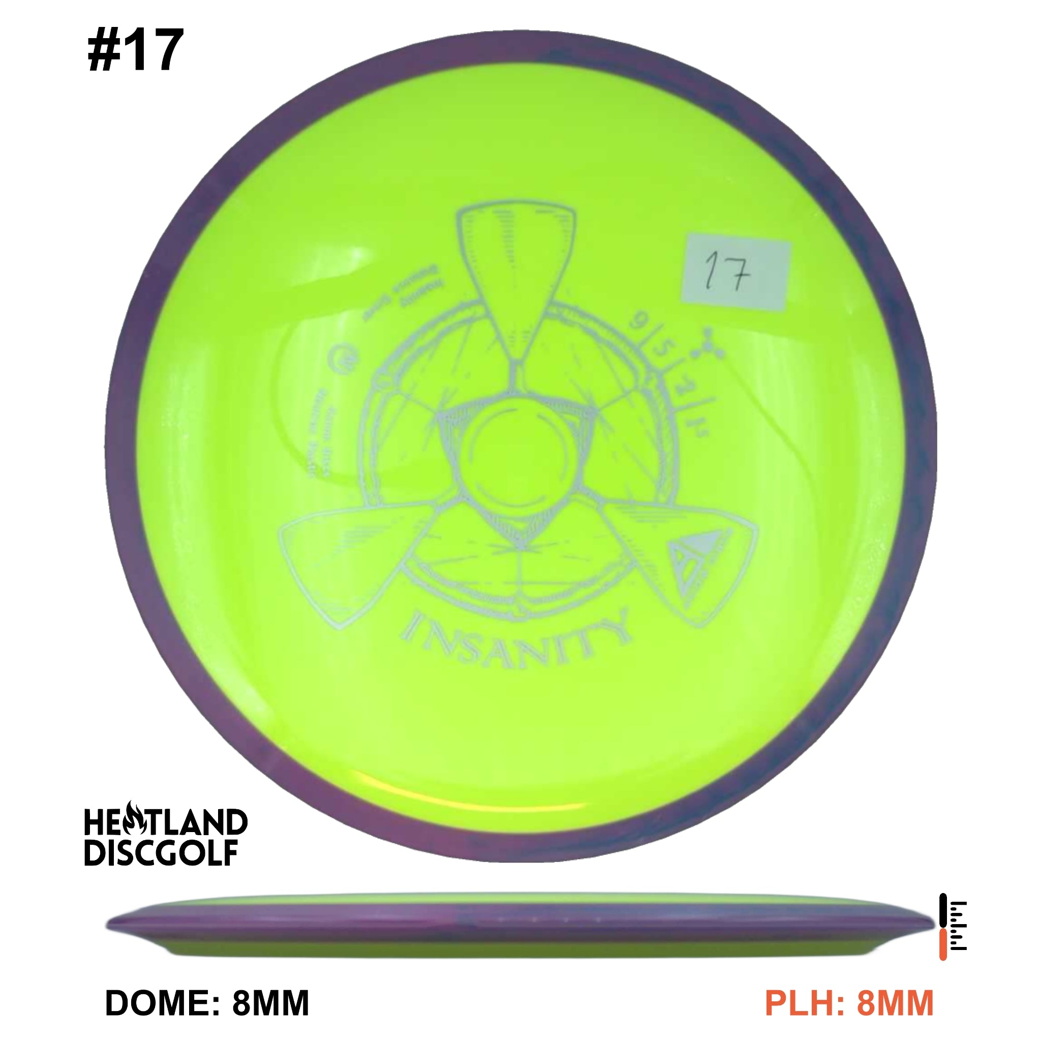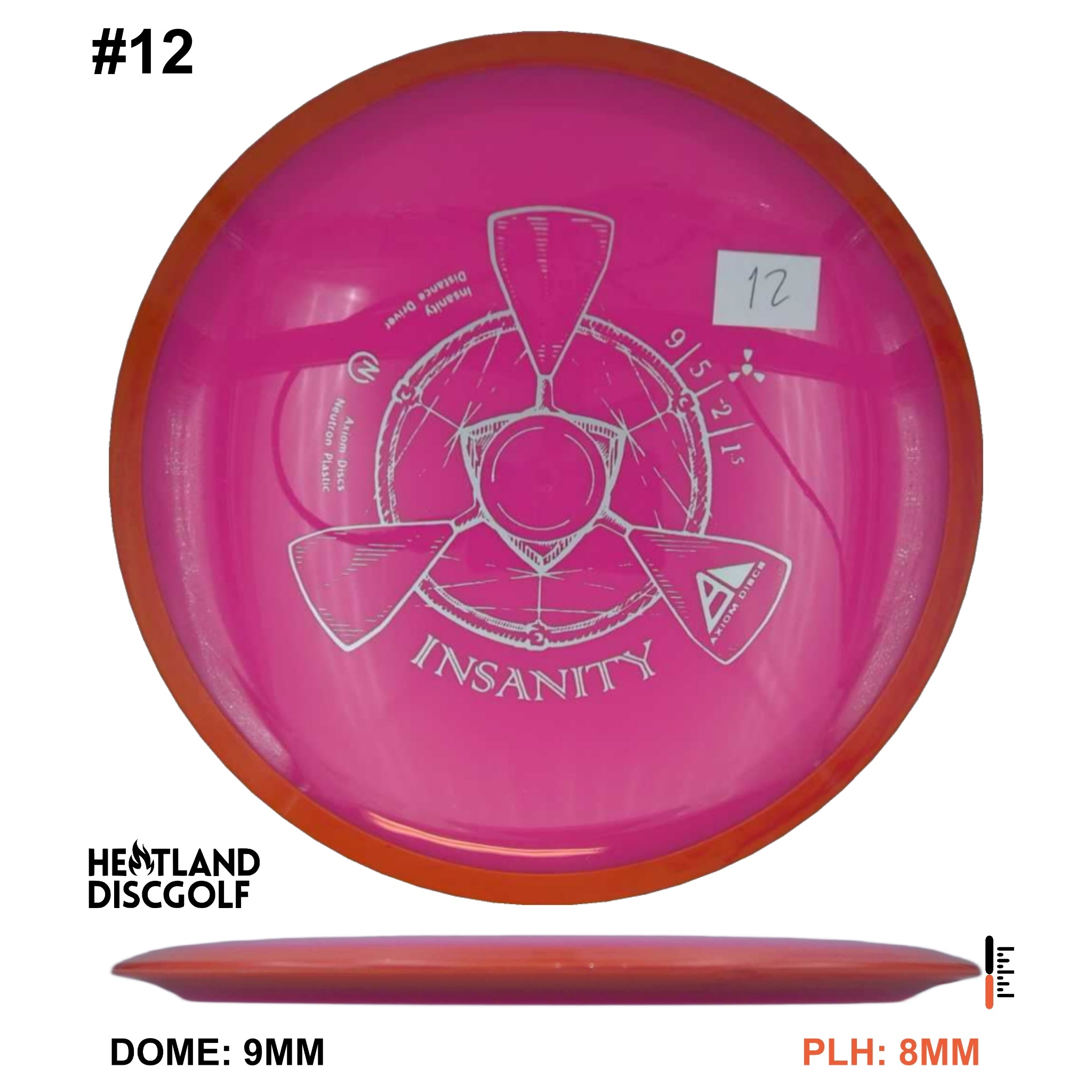 The Insanity is Axiom's first distance driver with a 20mm rim width. This disc is slightly less stable than the ultra popular MVP inertia. If you're looking for a straight flying GYRO driver with loads of attractive color options, you might as well try Insanity.