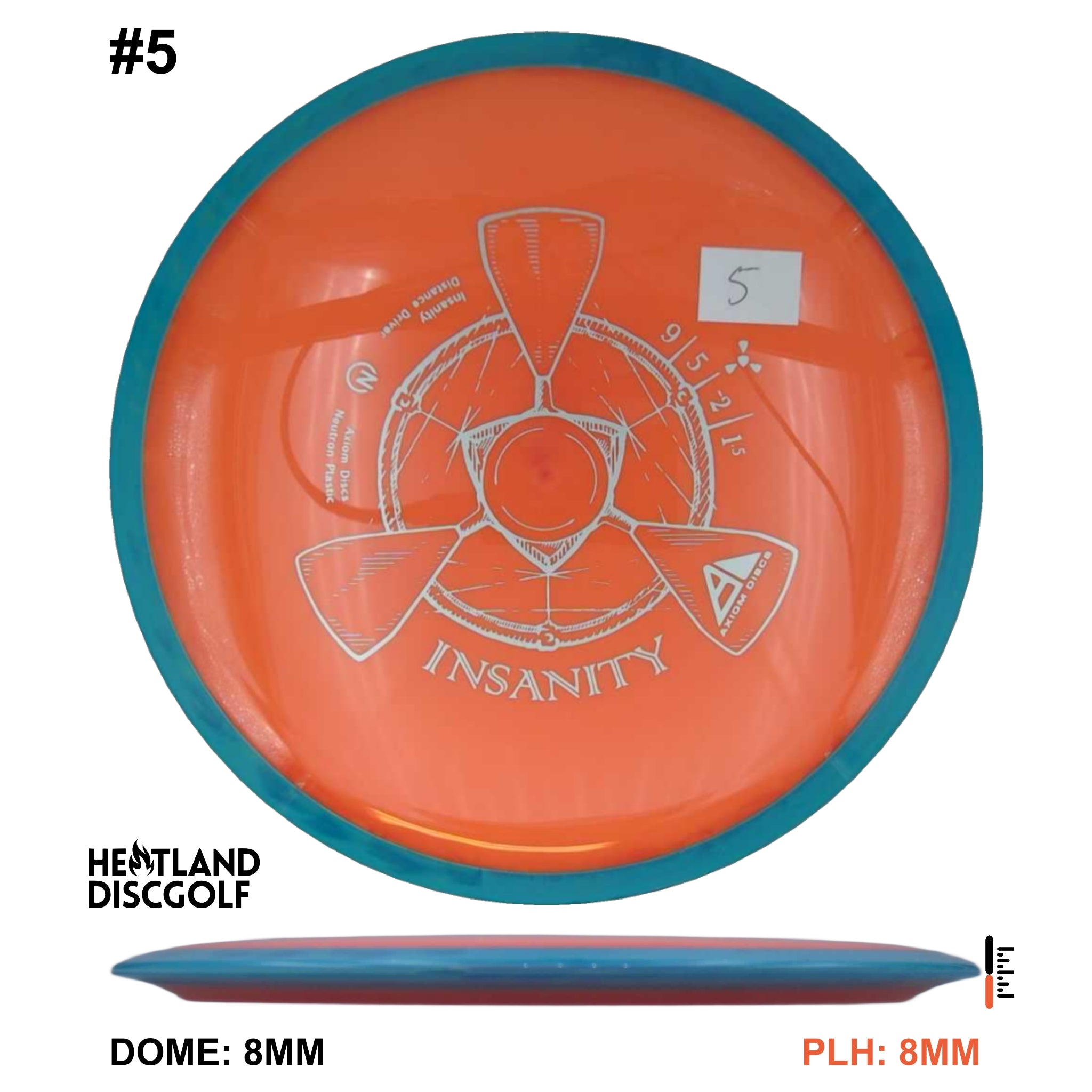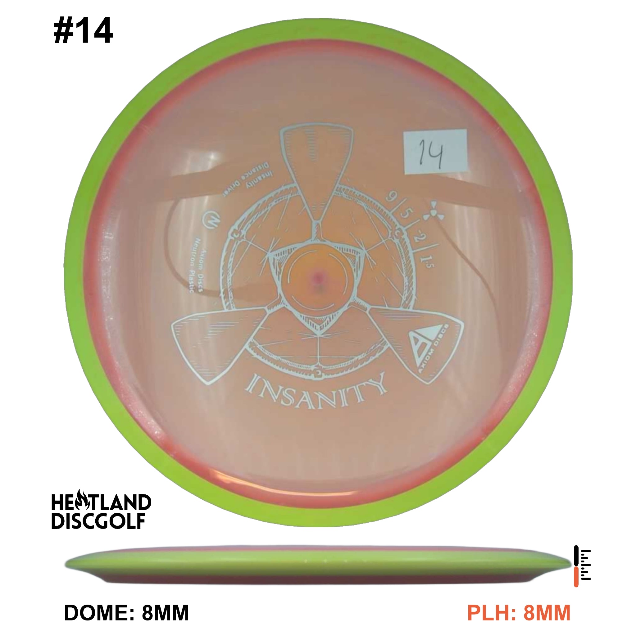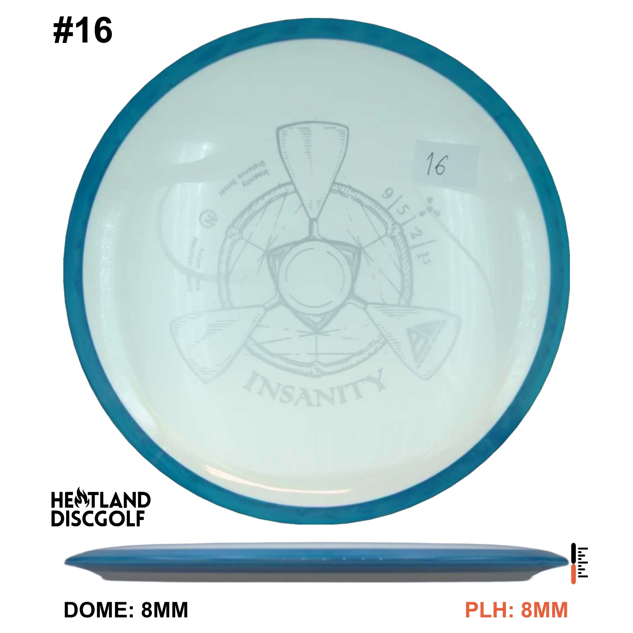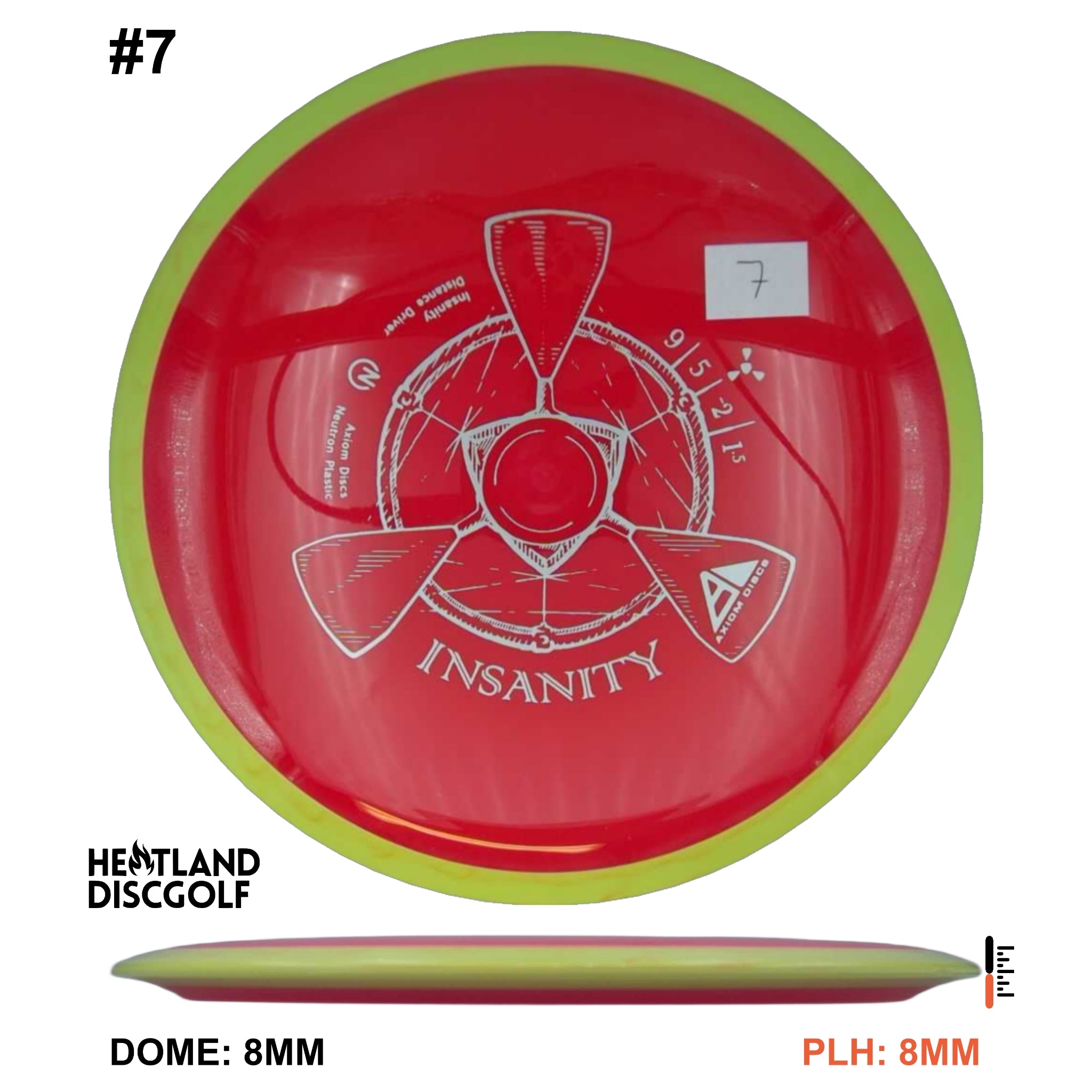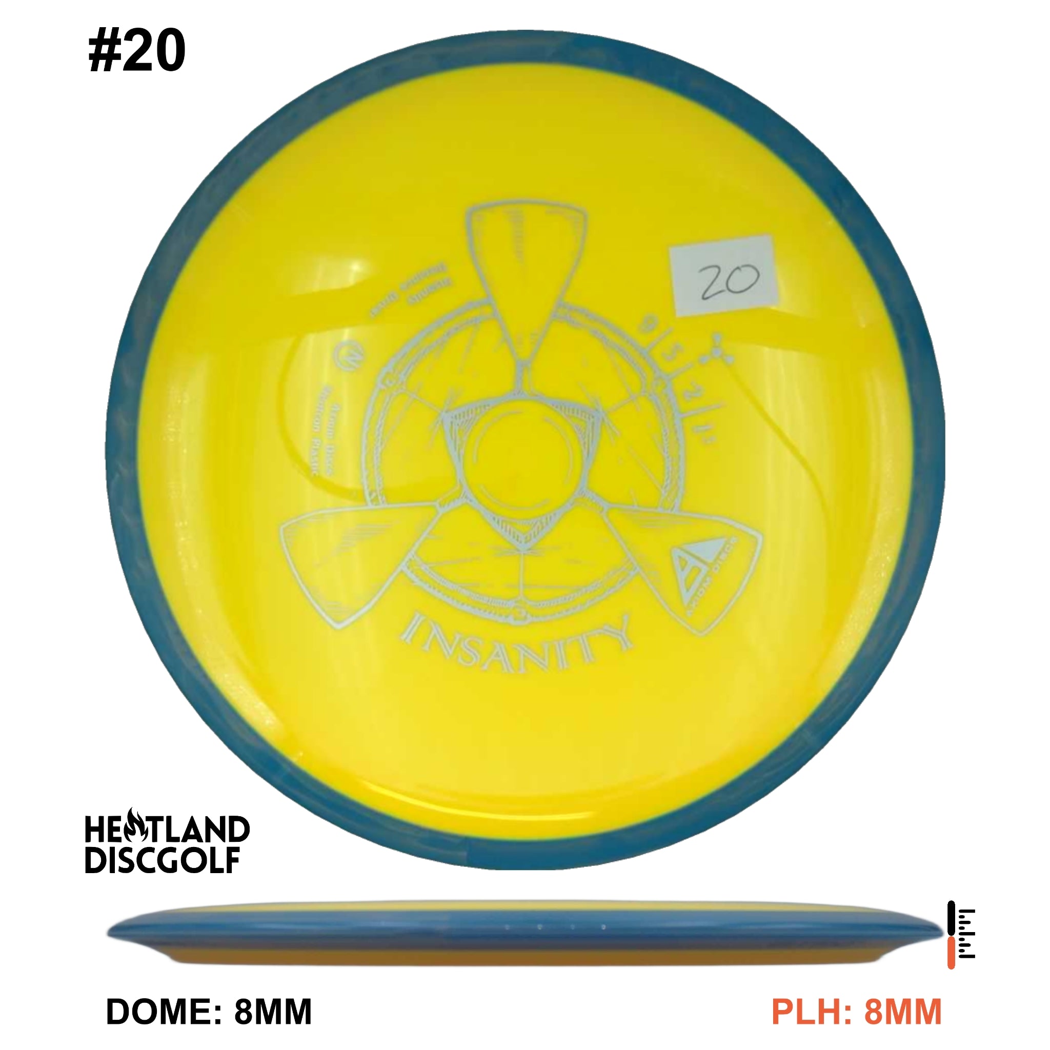 The Insanity is Axiom's first distance driver with a 20mm rim width. This disc is slightly less stable than the ultra popular MVP inertia. If you're looking for a straight flying GYRO driver with loads of attractive color options, you might as well try Insanity.