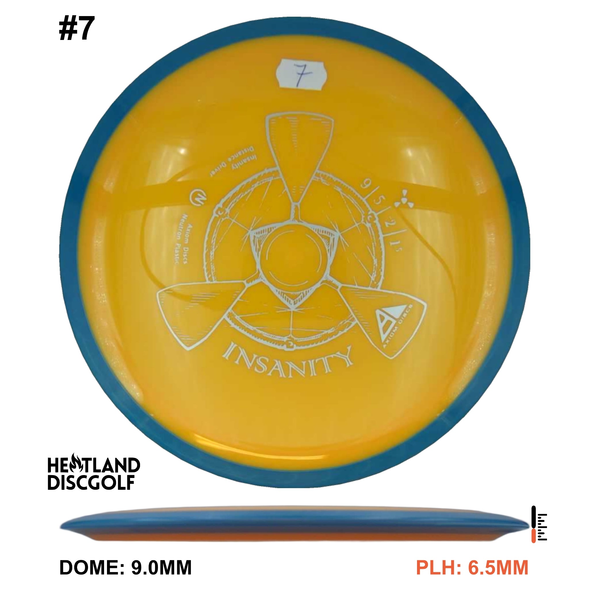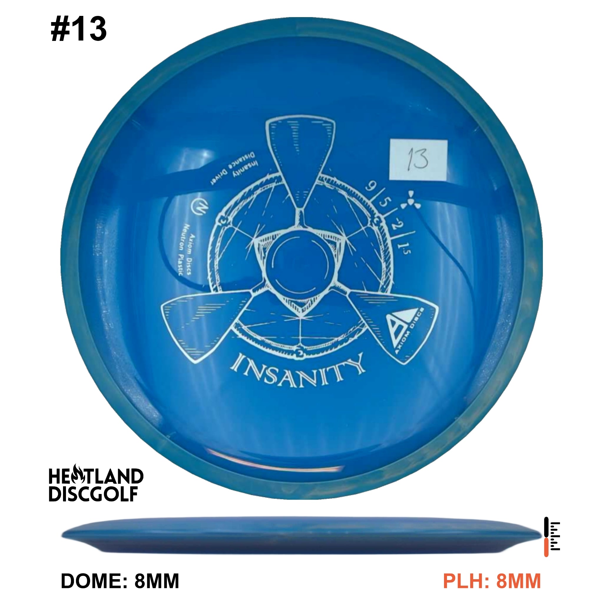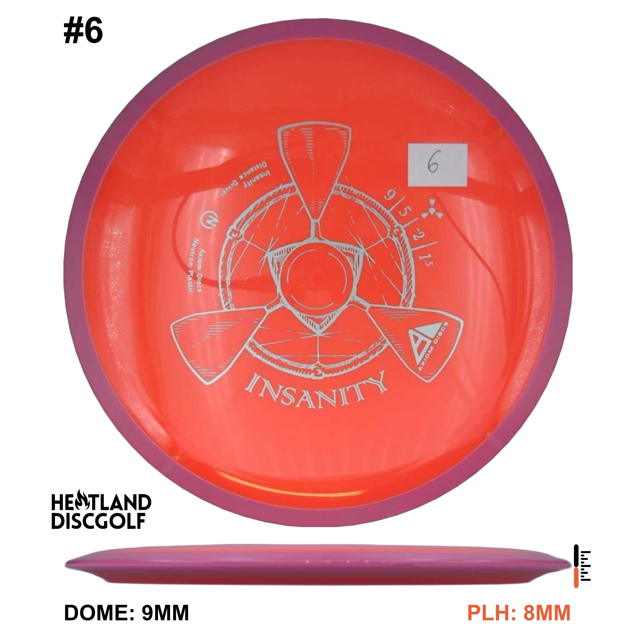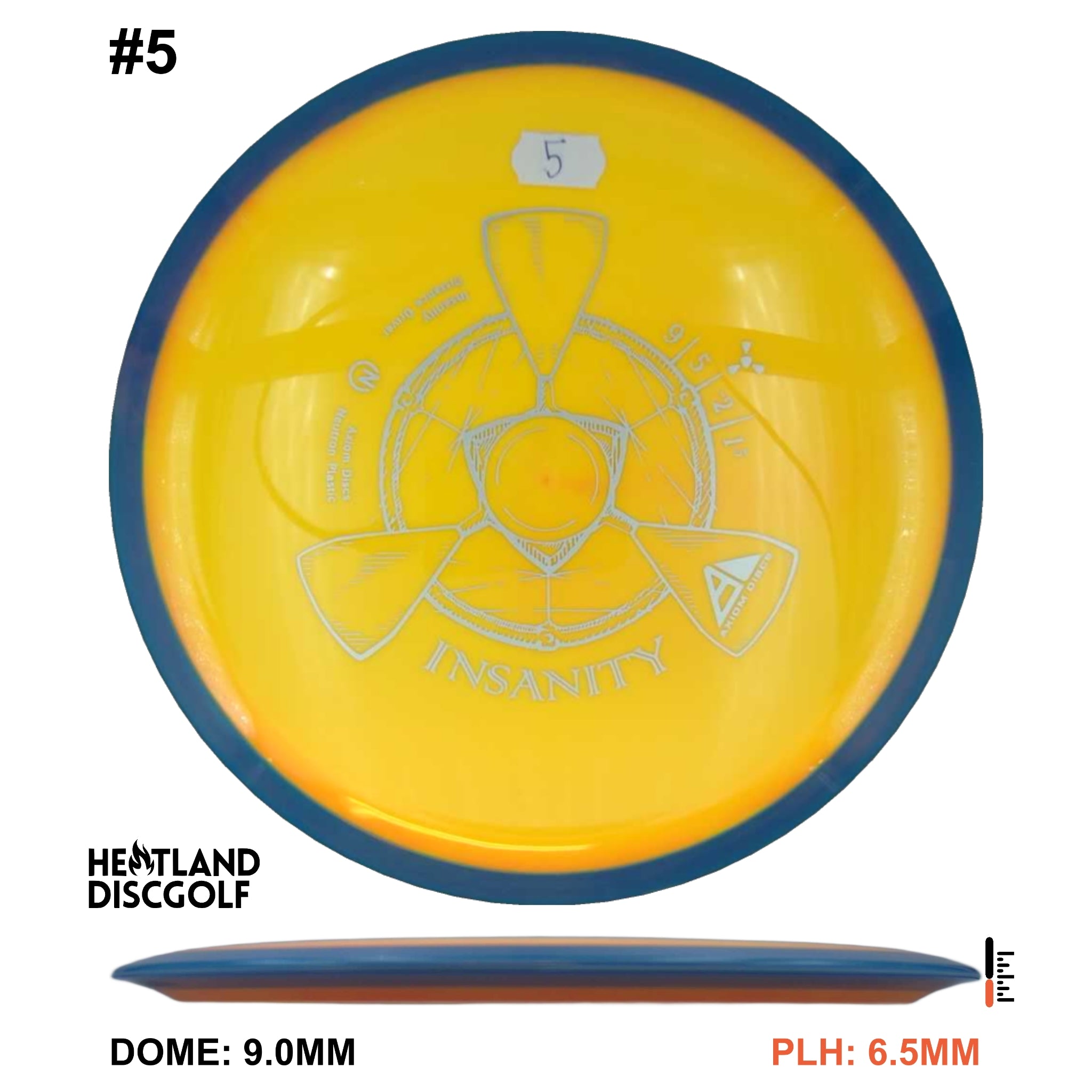 The Insanity is Axiom's first distance driver with a 20mm rim width. This disc is slightly less stable than the ultra popular MVP inertia. If you're looking for a straight flying GYRO driver with loads of attractive color options, you might as well try Insanity.