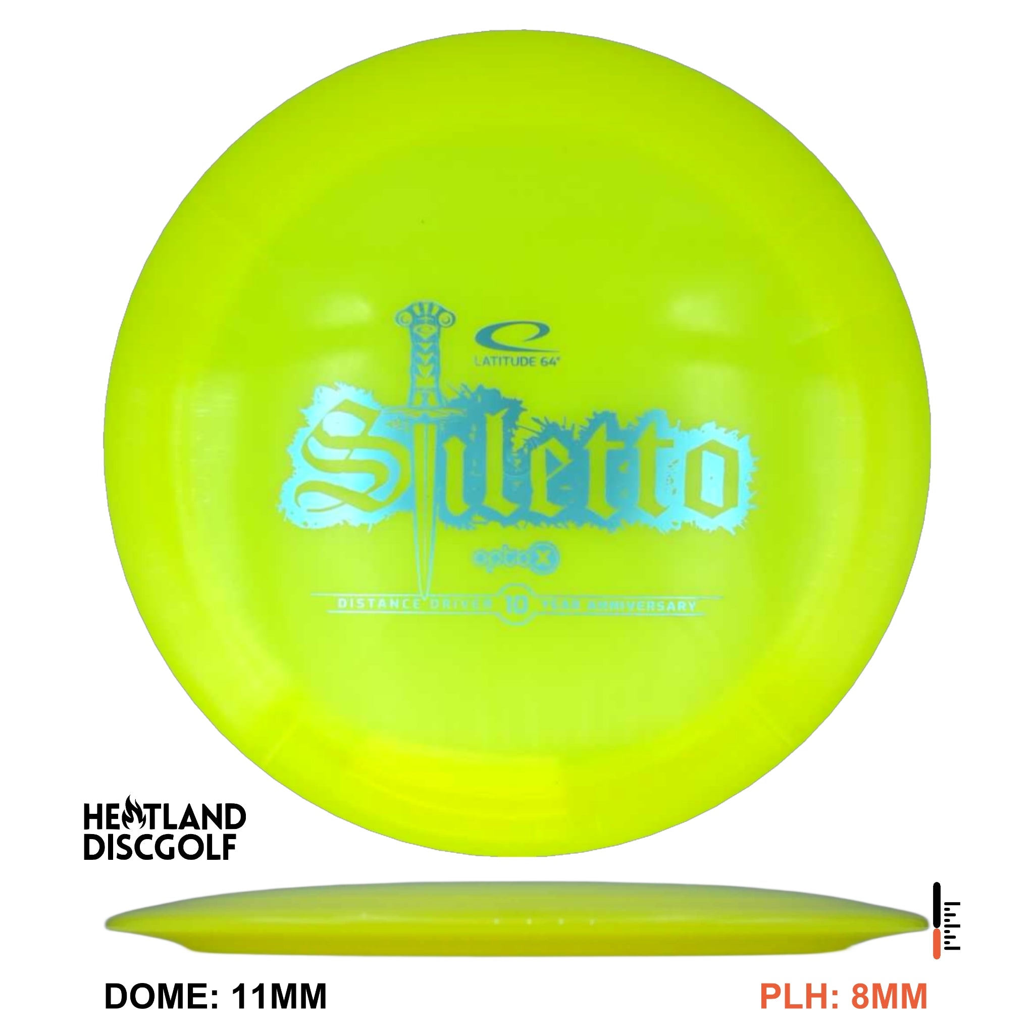 Overstable! That’s the main word when describing the Stiletto. And that is OVERSTABLE with a capital everything. The Stiletto was designed based on feedback from pro disc golfers who wanted a disc so overstable that it could hold up to anything. When you are standing on the tee and the wind roars in your face, you will be relieved to find this disc in your bag. It cuts the air like a knife, flies fast and you know which way it is heading. When the storms are gathering – trust the Stiletto.