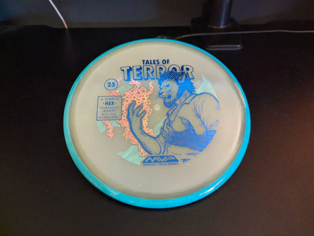 DoubleRam Design shows us the terrifying alternate origin of Jeremy Koling’s childhood nickname - Lionheart - on the new Particle Eclipse Hex! Made with our industry-leading Eclipse plastic, this new blend of glow with colorful particles inside gives the disc its own magical feel. As a straight flying midrange, the Hex is set to become even more mesmerizing than before with its straight to understable flight allowing for exceptionally easy line shaping - showcasing why the Hex is one of the most versatile discs around. Unleash your inner beast and shred the course with the Particle Eclipse Hex, available at your favorite local or online MVP dealer!