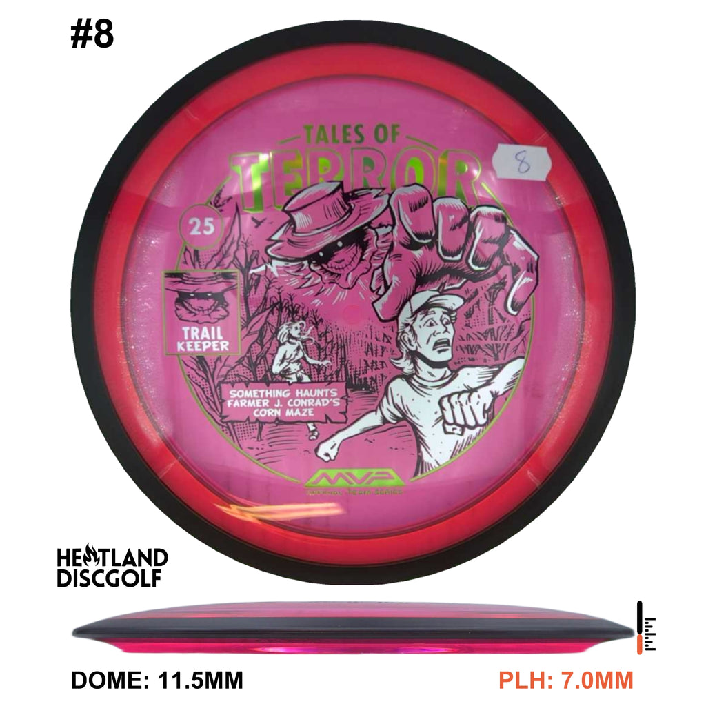 The highly requested fan favorite Proton Trail has returned! Green C Studio adorns this disc with a glimpse of the Trail Keeper haunting Conrad’s Corn Maze, a classic horror story. Excelling in hyzer-flip drives, turnovers, and straight shots, the Trail has become one of the most popular drivers in the MVP lineup that throwers of all power levels will find significant use for. You don’t have to get lost in a killer corn field to get your hands on one of these, just head over to your favorite local or online MVP dealer to get yours today!