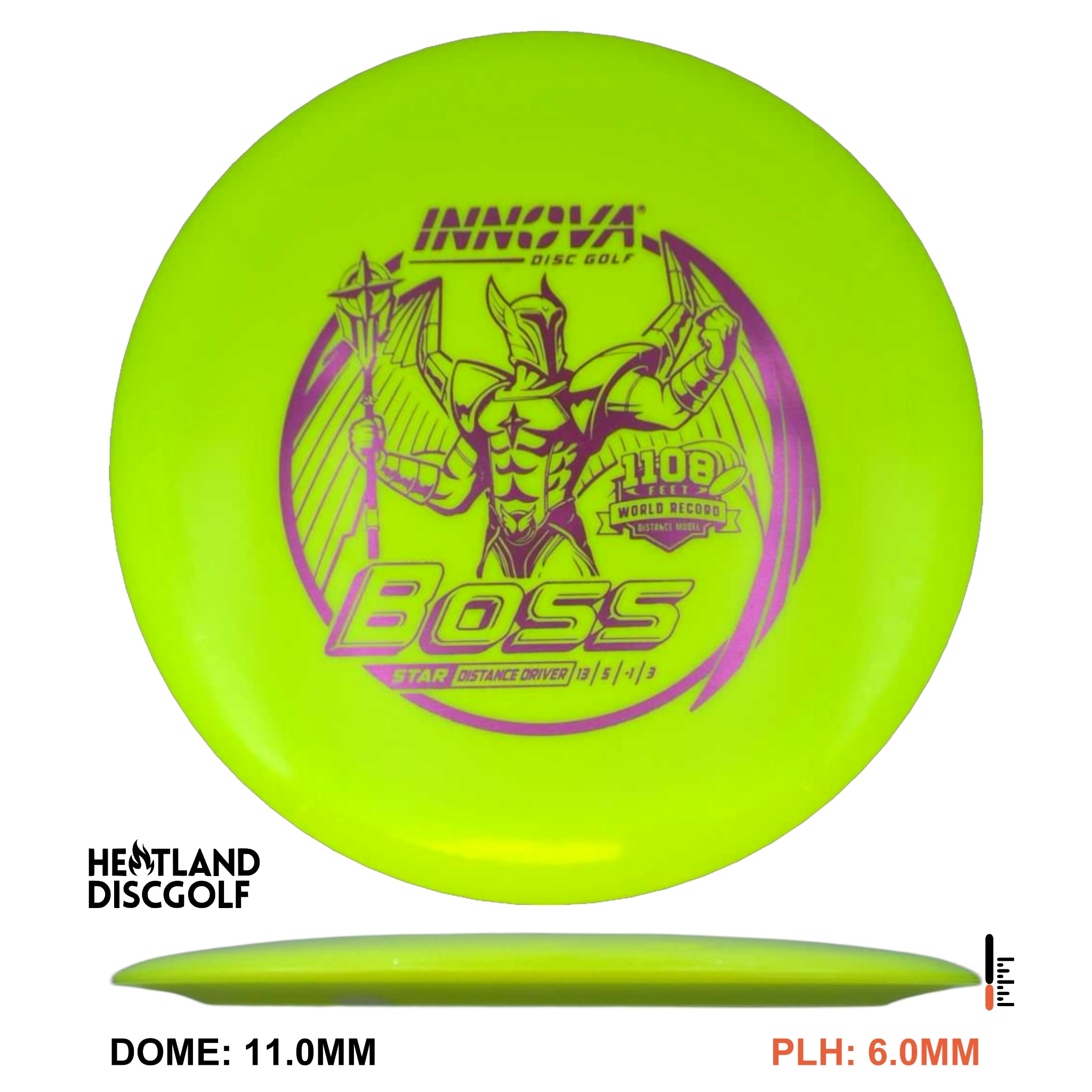 The Boss is our first Speed 13 Distance Driver. This is a fast stable driver that can handle full power throws and moderate headwinds. Advanced players and sidearm throwers will appreciate the dependable stability. The Boss has a slight high speed turn to help maximize distance with a predictable fade.