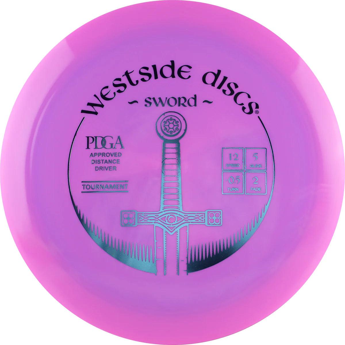 The Westside Sword is one of Westside's high speed drivers that is extremely user friendly. Designed to slice through the air with ease, the Sword will hold any line you put it on, a straight line flight with a Hyzer finish. For professional players, the Sword will fly straight, long, and predictable. For lower speed arms, the Sword will give you that extra distance you want without losing any accuracy.