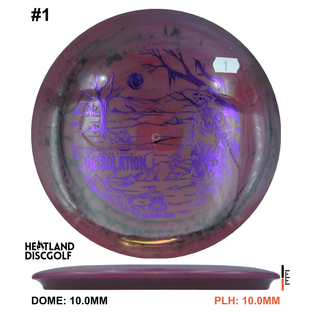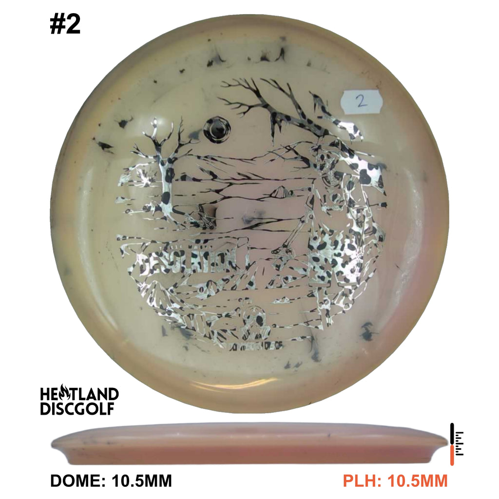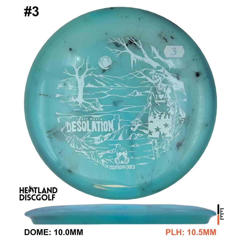The Doomsday Discs Toxic Waste Desolation features the mold’s balanced fairway stability in a flexible, premium blend known for its unique “dirty” aesthetic. Toxic Waste plastic provides excellent grip and a comfortable release. The Doomsday Discs Desolation in this blend flies straight with dependable fade and exceptional control for all skill levels.