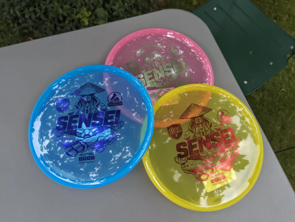 The Sensei is a low profile putter that fits well in any hand size. The disc is designed for all types of approach shots and putts. The flight of this disc is straight in high speeds and it offers a dependable fade as the speed and rotation slows down. Great choice for beginners and more experienced players alike!