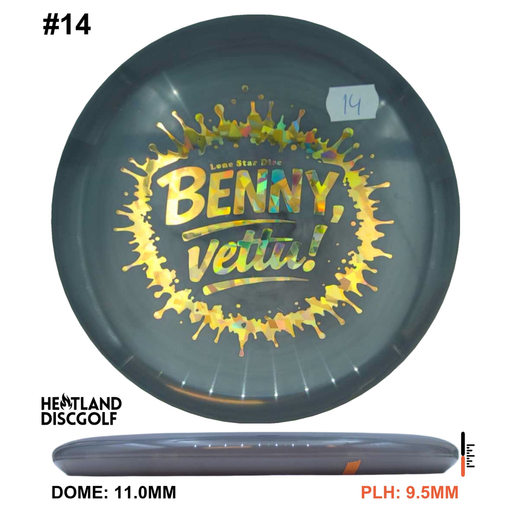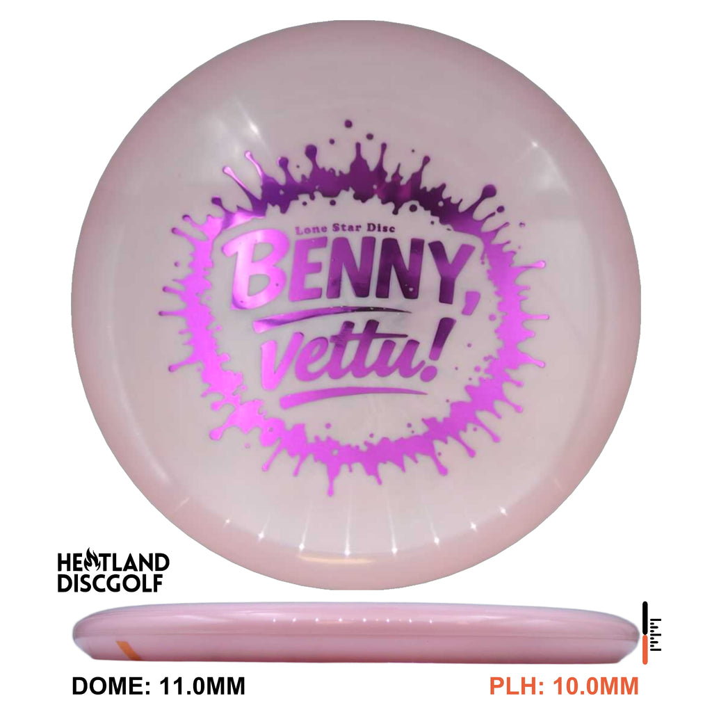 The Benny is a beaded, straight-to-stable complement to our flagship Penny Putter. It promises a consistent and straight flight with a touch a reliable fade at the end of its flight: an ideal throwing putter.