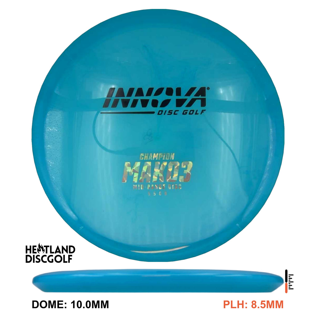 Mako3 has a smooth straight flight path with minimal fade in the end, when thrown with low to moderate amount of power. When thrown with high power, the Mako3 will gradually turn, making it optimal disc for long turning anhyzer shots even on a narrow line.A great performing disc that can take and hold the angle of release. Turnover shots stay turned over and hyzer shots stay hyzer. Excellent for staying on narrow fairways and threading through forests.