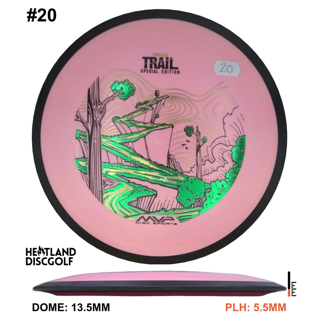 The first official 10-speed driver in the MVP lineup, the Trail is a stable-understable distance driver that, as you might expect of a Conrad disc, excels in hyzer-flip drives and turnovers. Releasing with flight numbers of 10 | 5 | -1 | 1, throwers of all power levels will find the Trail to be an exceptionally responsive driver for a variety of shot shapes, making the Trail a phenomenal disc for all skill levels.