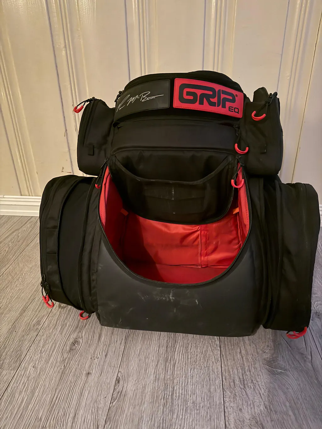 Each bag purchase includes a limited-edition disc, a Paul McBeth flex mini marker, 4 custom velcro patches, an aluminum bag tag, and colored zipper pulls. Discs: Black/red Kratos, Purple/black Big Z Luna or Glo Confetti Malita