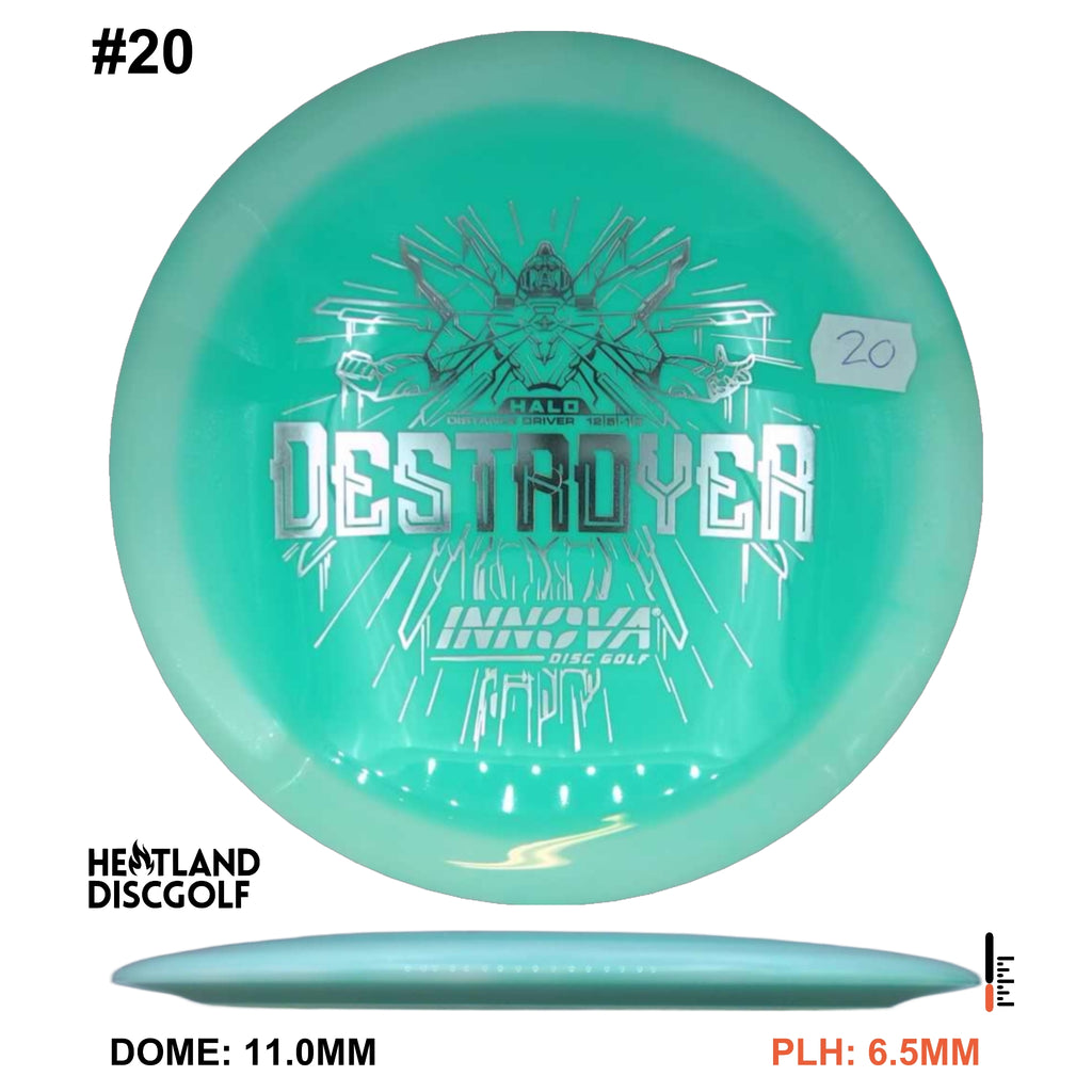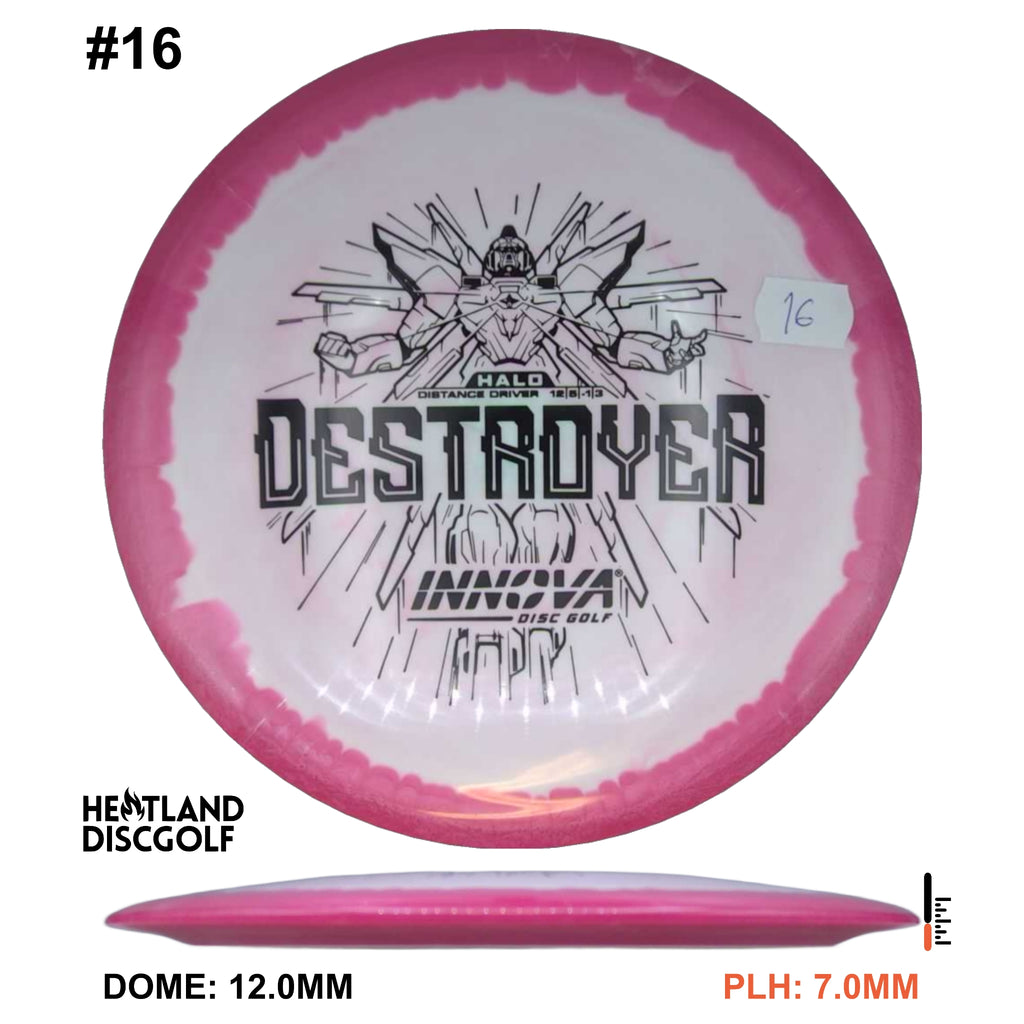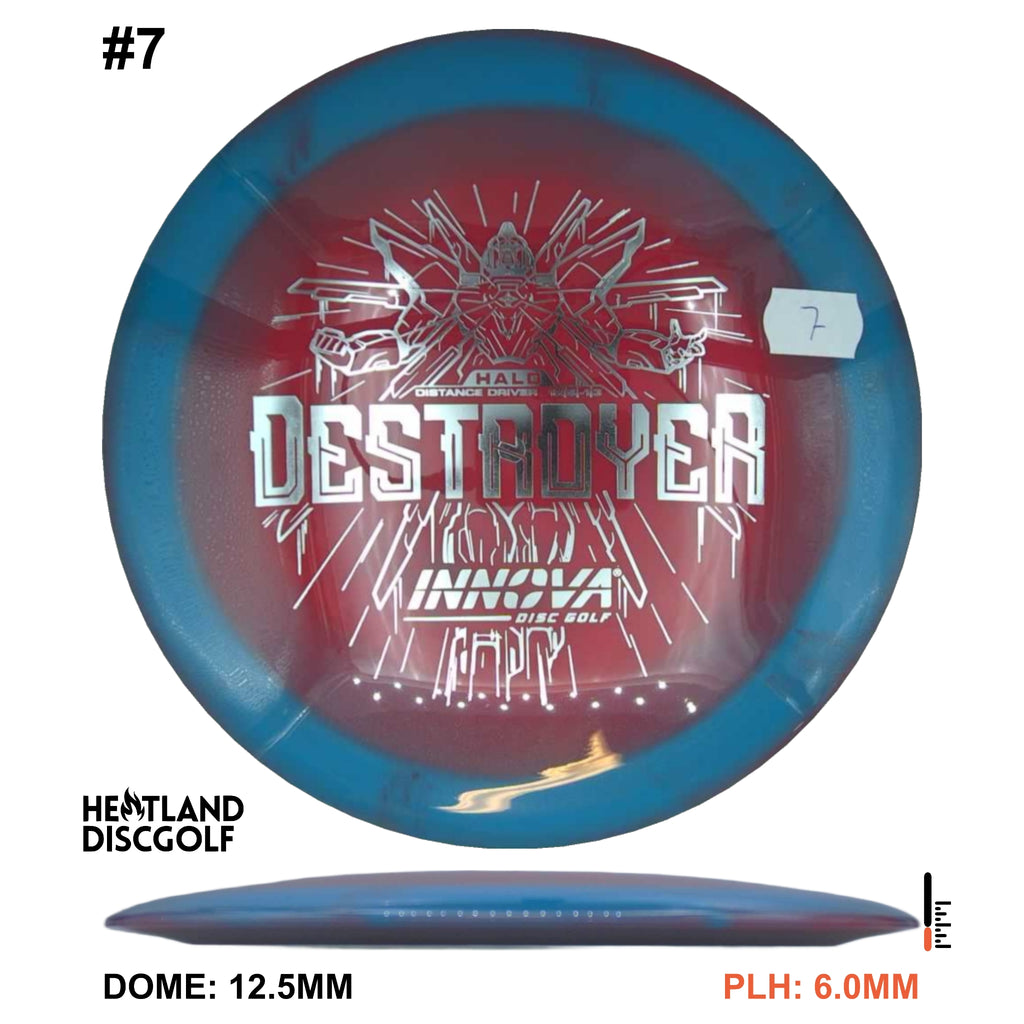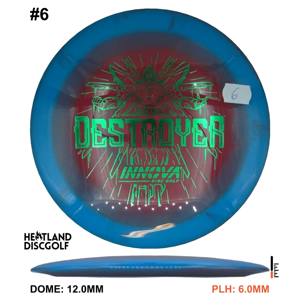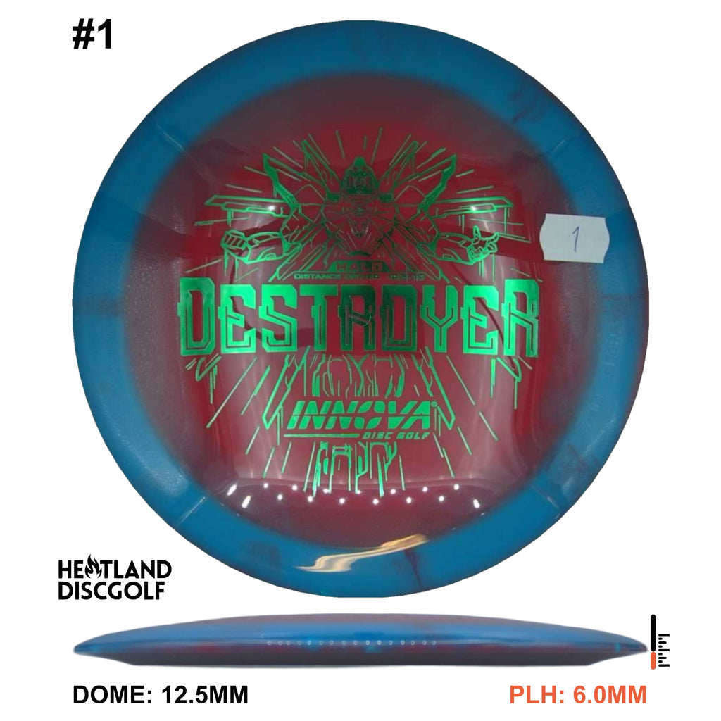 The Destroyer is a very fast stable long distance driver. This disc is much like a faster Wraith, but with a little more high and low speed stability. Great disc for sidearm throwers and those with lots of power. Can handle headwinds and throws with off axis torque. Not suggested for beginning players.