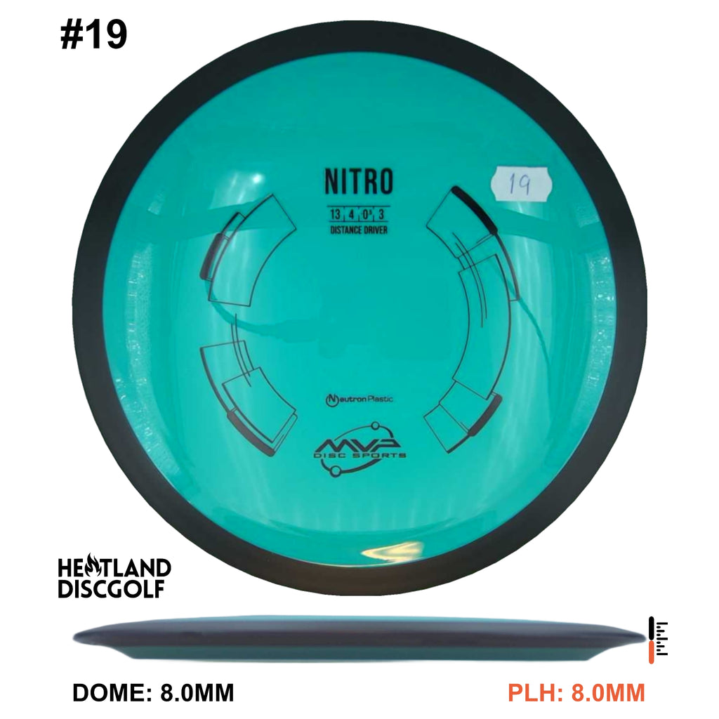 The MVP Nitro is a stable-overstable distance driver from the new high speed 23mm class. Nitro falls in the general stability lineage of Servo, Volt, Tesla, and Photon, with a turn-resistant profile that covers ground and guarantees a fade finish. Average throwers may need lighter weights or headwinds to achieve what little turn is offered by Nitro, while power throwers will find a workable and responsive shallow turn.
