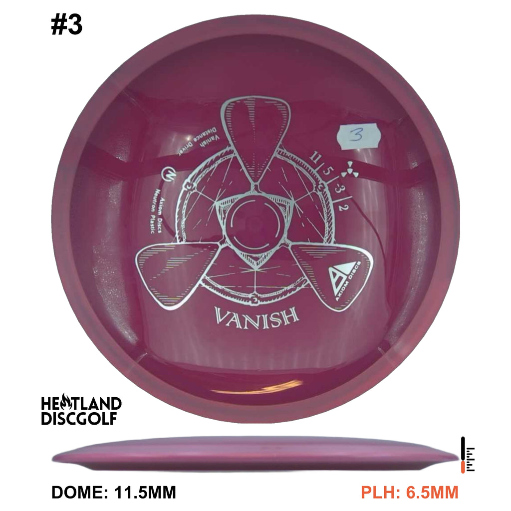 The Vanish is a straight to understable disc depending on the thrower and wind conditions. The Vanish's stability profile places it near a threshold of being straight at low power or in tailwinds, and controllably understable at high power or in mild headwinds. As a 21.5mm class GYRO™ driver, the Vanish is designed to hit a midpoint of stability between two MVP Disc Sports models, the Wave and Orbital. The Vanish will debut in grippy opaque dual-color Neutron plastic.