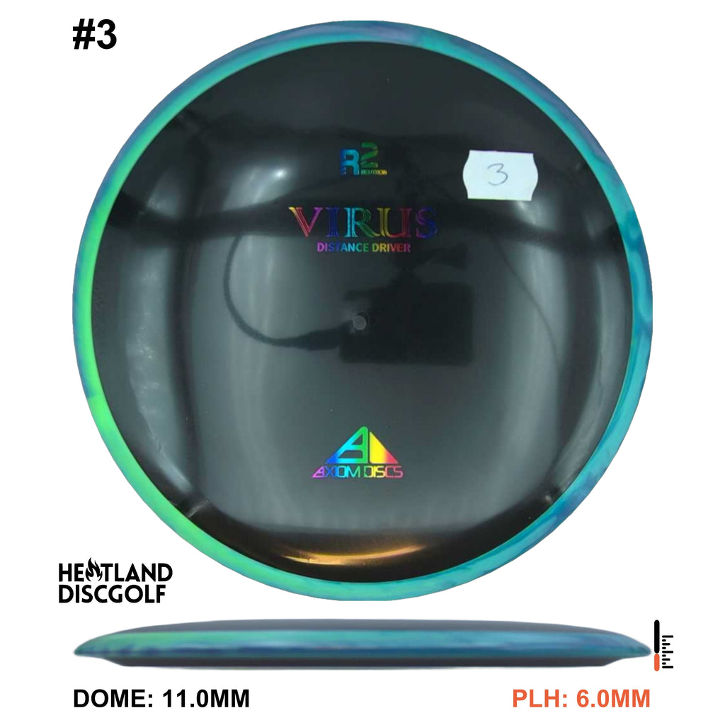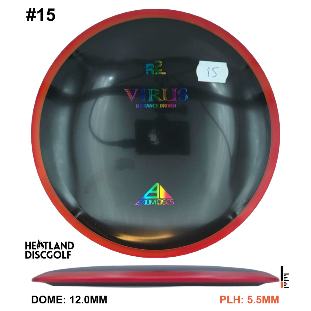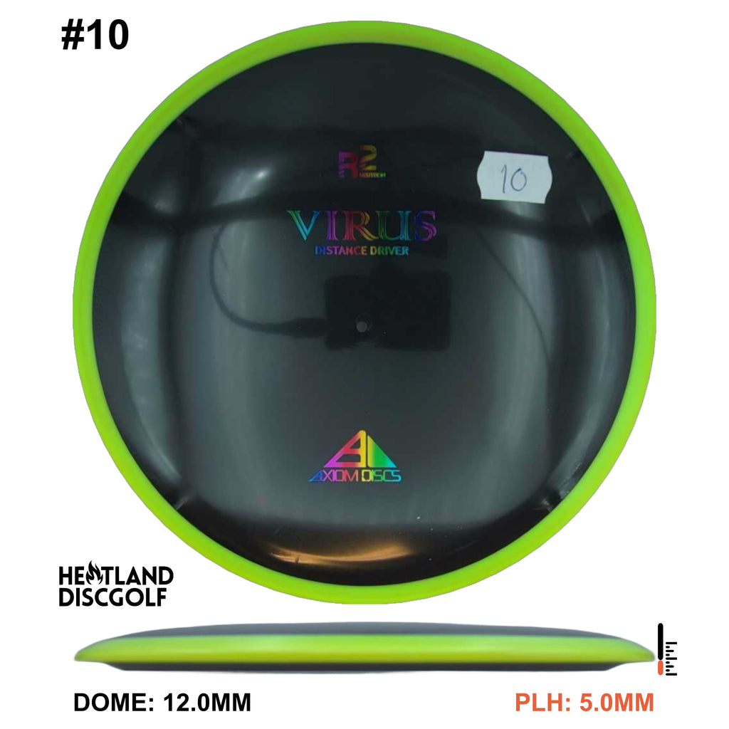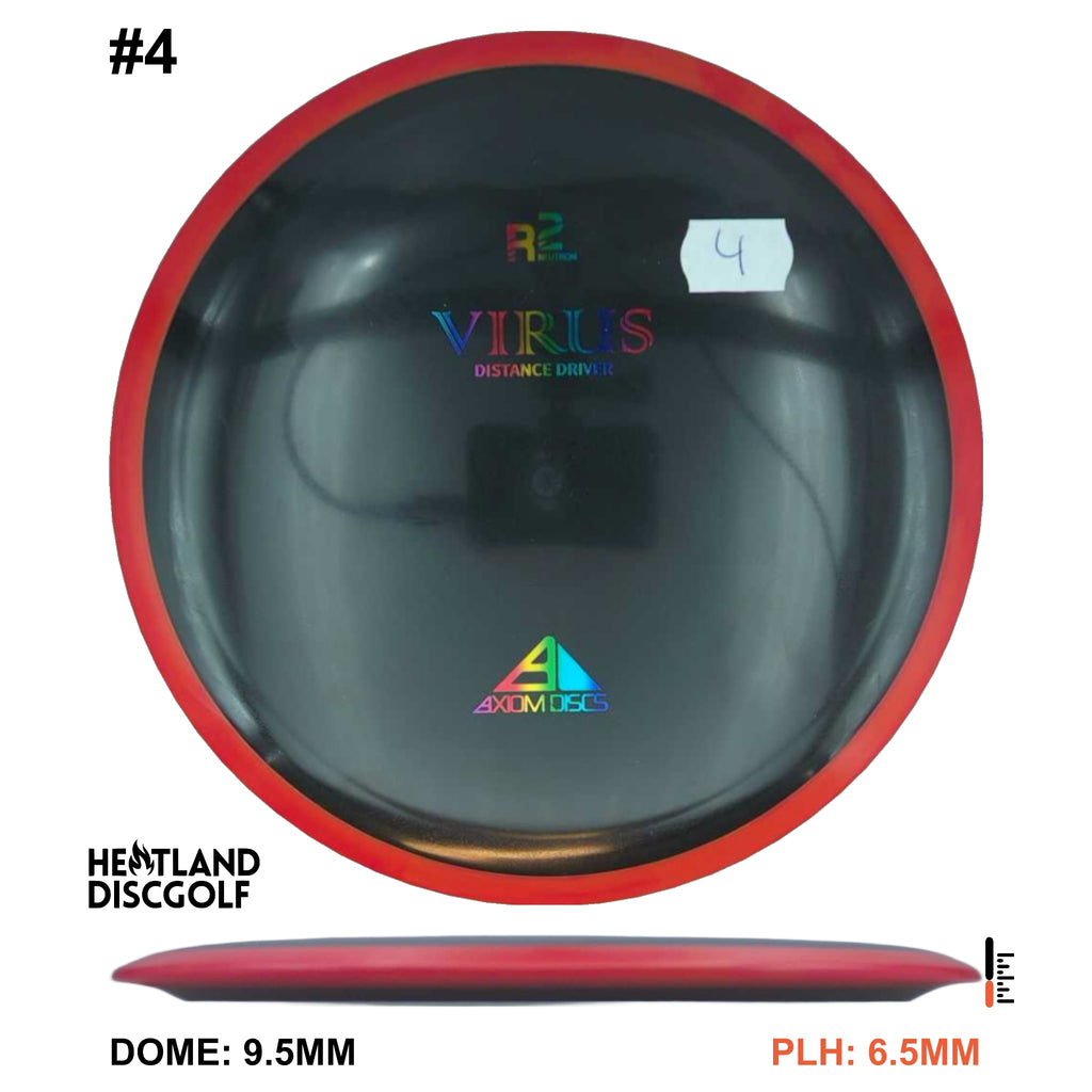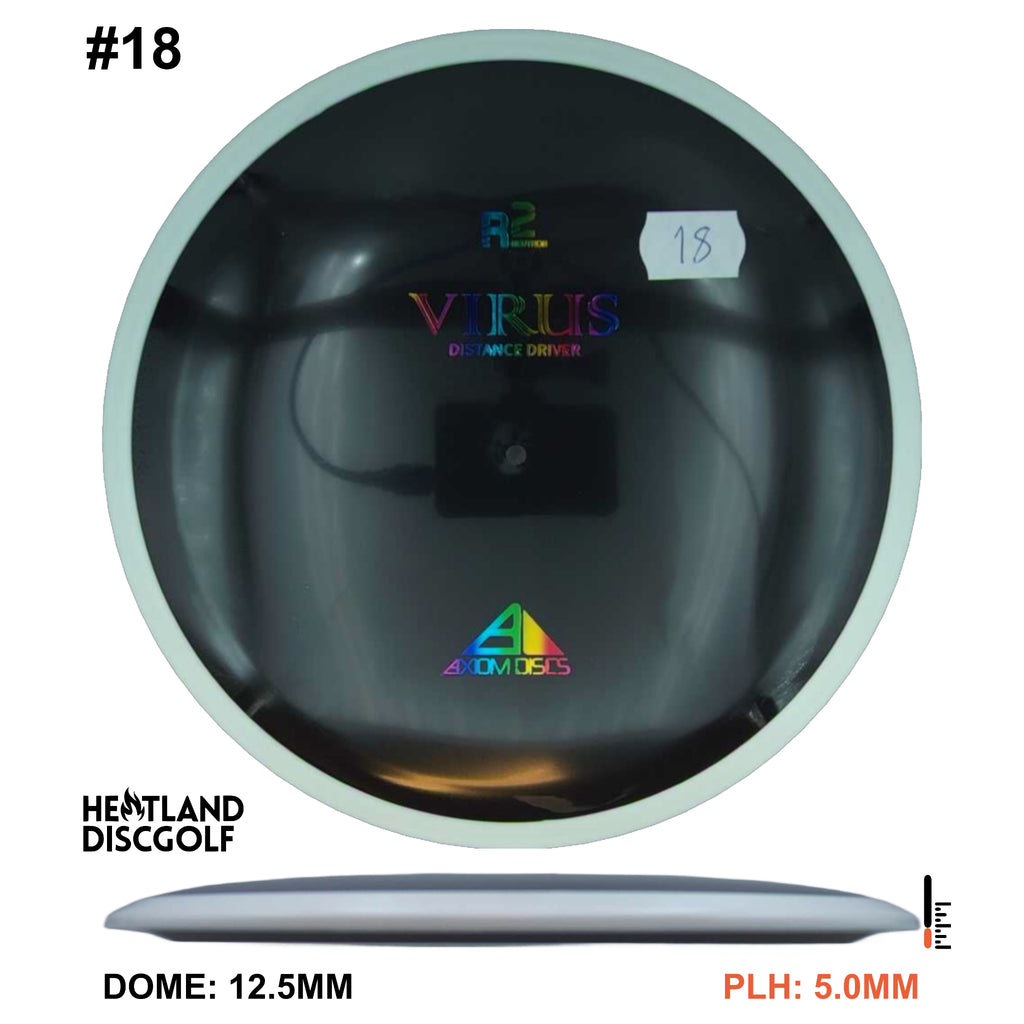 The Virus is Axiom's easiest to throw distance driver, with a glide and responsive understability that keeps it in the air. Power throwers will be able to flex huge turnover shots with straight forward fade. Average throwers will be able to extend and shape lines using the Virus' turn and gentle fade. Compared to the MVP lineup, the Virus resembles a worn-in Impulse.