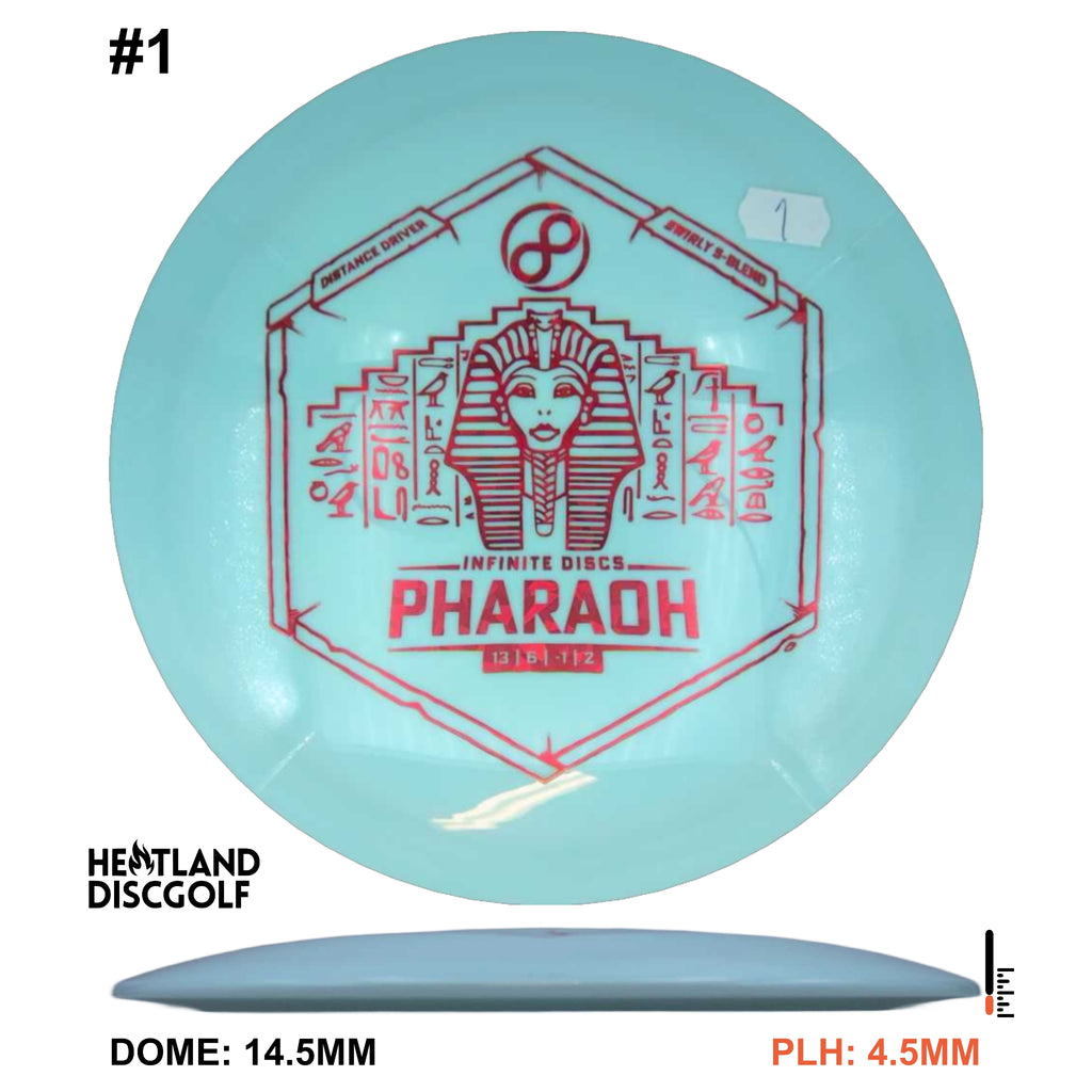 NOTE: The flight numbers may change on different runs. For example, the "Run 3" I-Blend Pharaoh is more understable and has a flight rating of 13 / 6 / -2 / 2 which is different than the first two runs which were on Swirly S-Blend plastic. The Run 5 Swirly S-Blend Pharaoh is more overstable than any previous run.