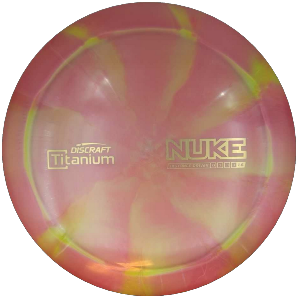 The Nuke is one of the longest discs in the game and has insane power. The Nuke is a 13-speed driver with a wide rim. These. Things. Crush. The Nuke is a stable to straight driver that offers the ability for elite distance. These limited edition ESP Swirl Nukes come with this Diamondback design.