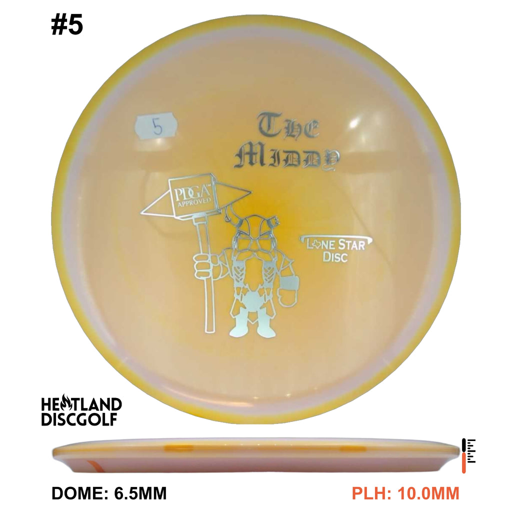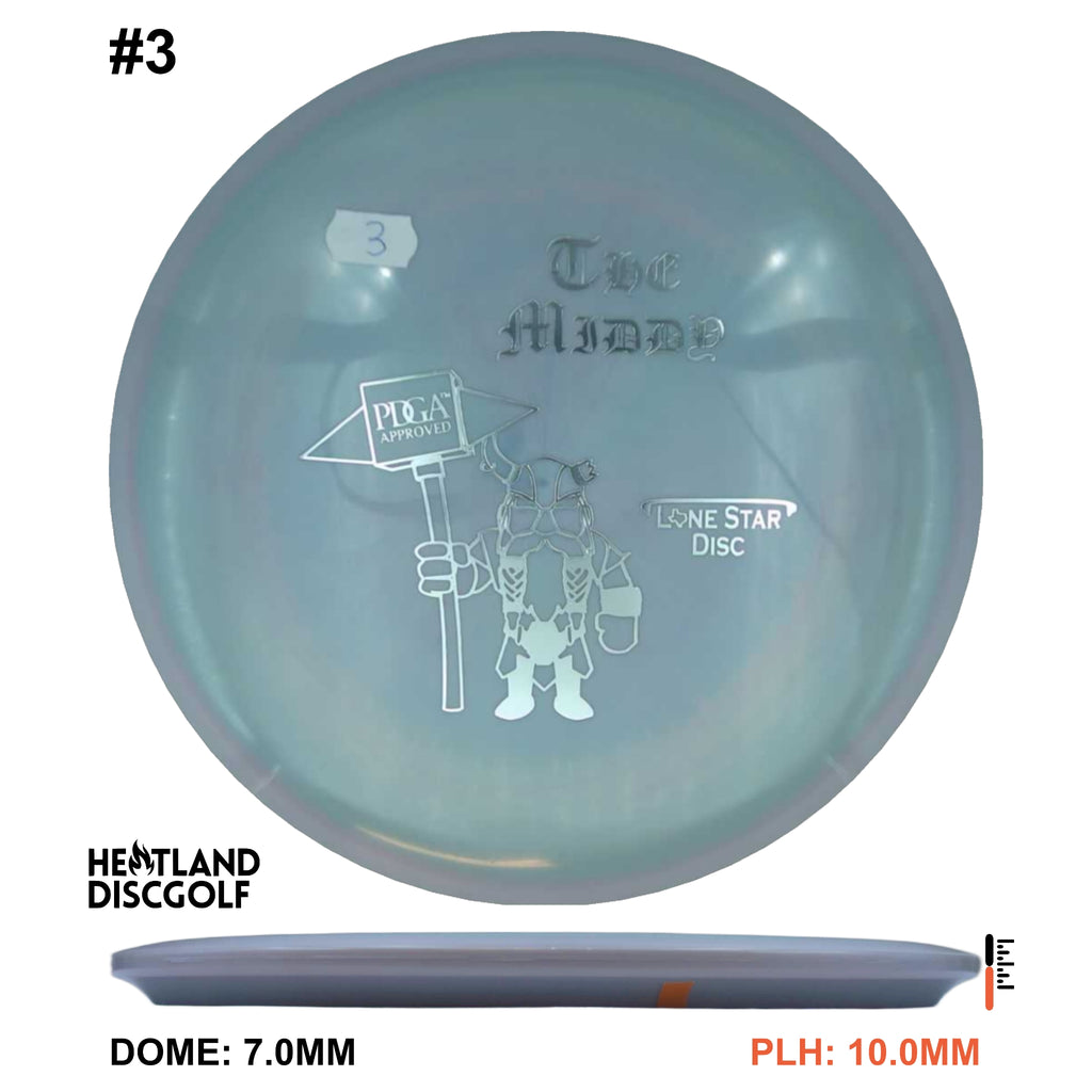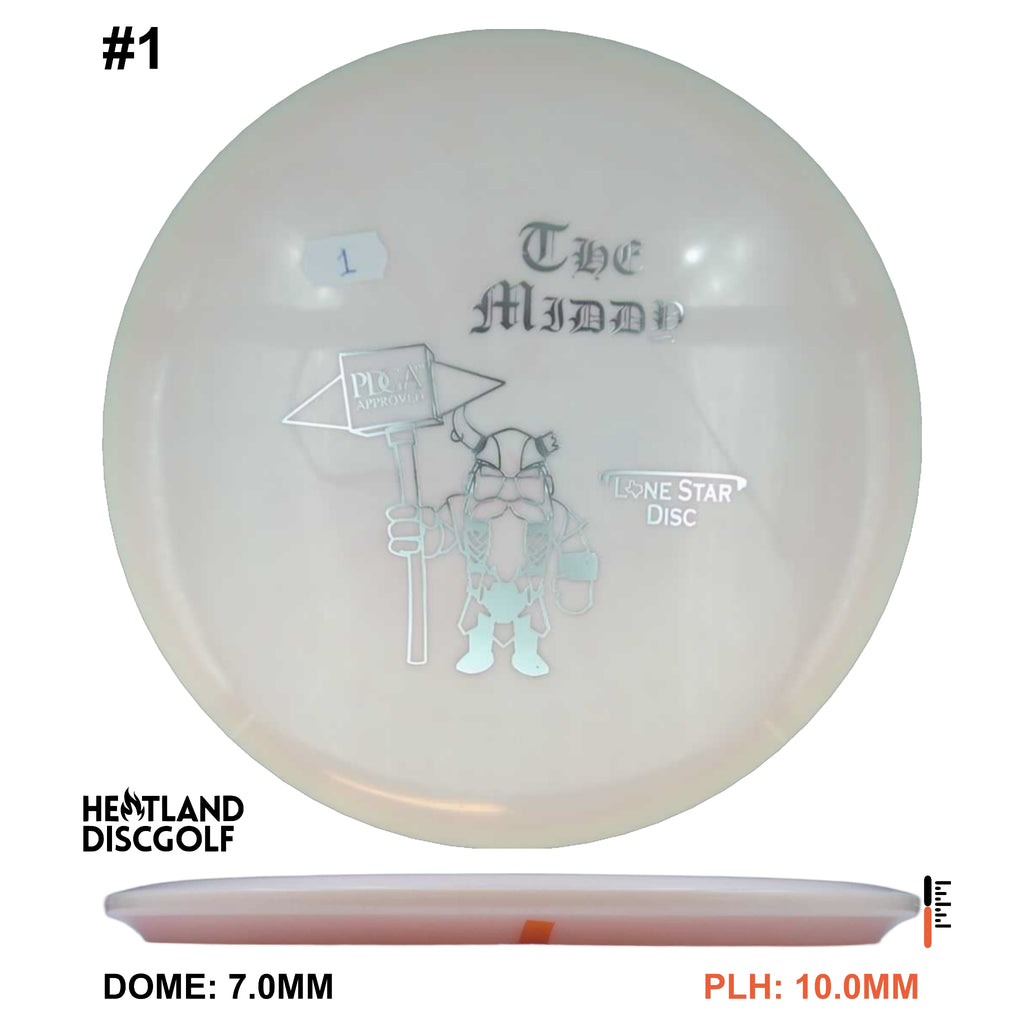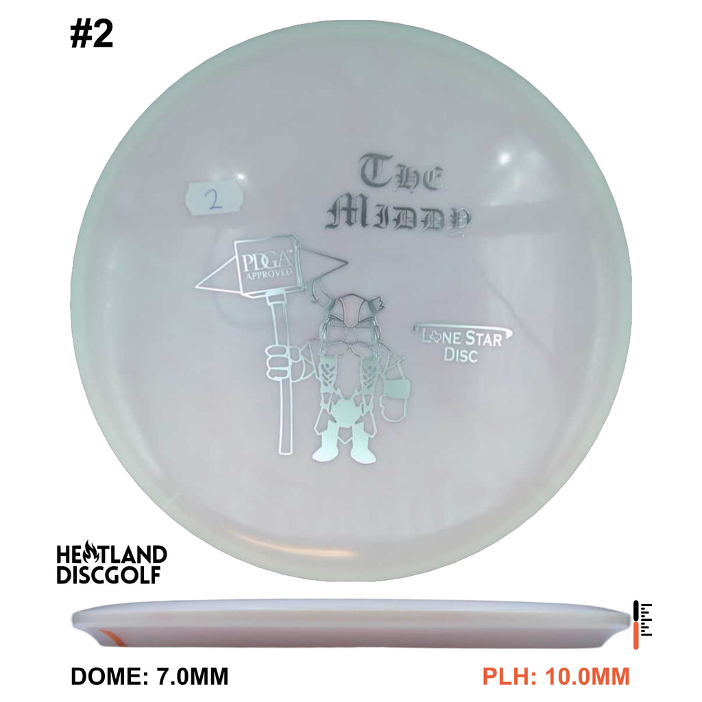 The one that started it all! The MD-1 (Middy) was the first Lone Star Disc to receive PDGA approval. It is extremely dependable in all situations, and it’s certainly NEVER afraid of a headwind! With its overstable nature, the Middy could possibly be the world’s best disc for wind and for forehand throws! It can handle finesse and power throws. If you’re looking for a consistent midrange, then your search is over!