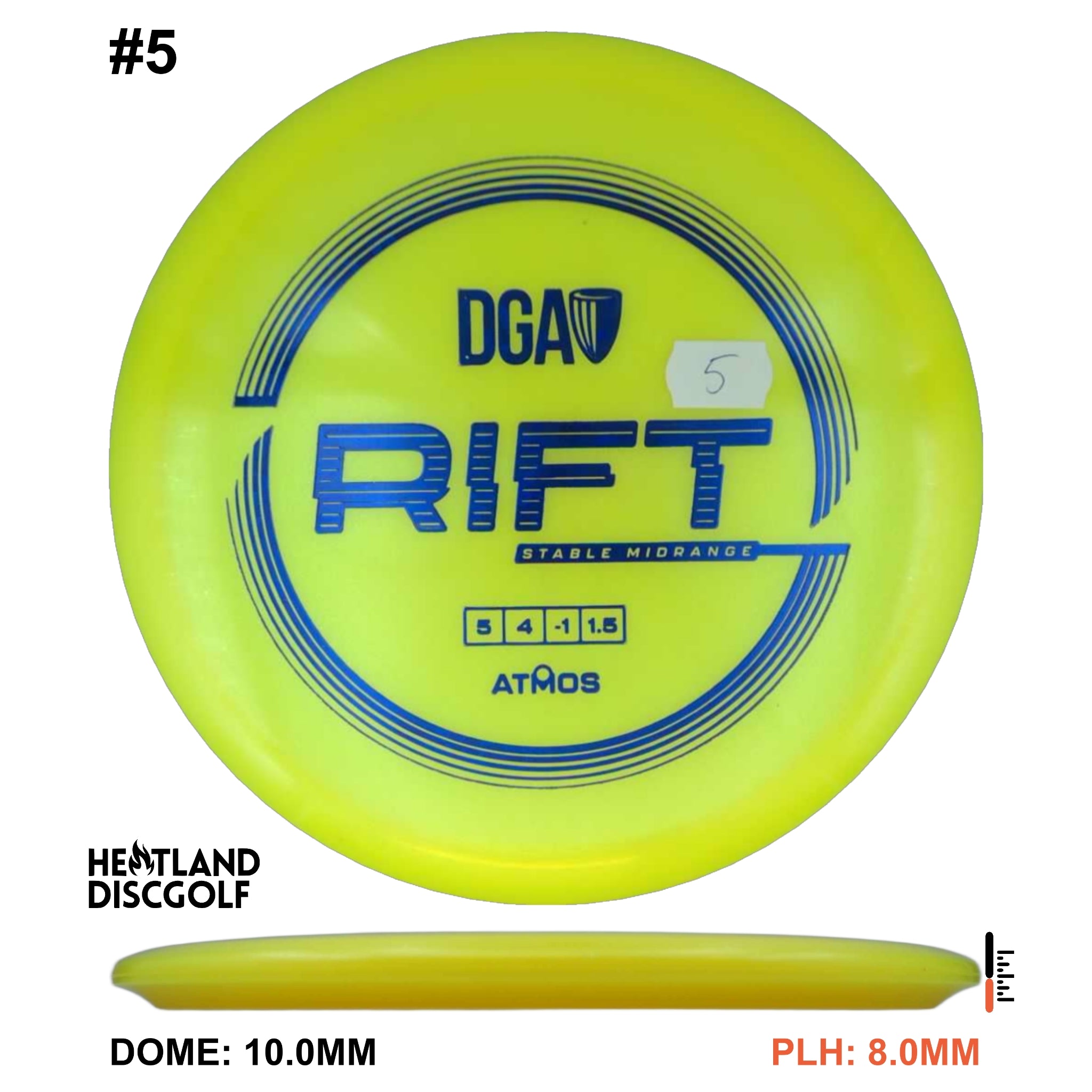 The DGA Rift is a stable midrange that is very straight-flying with favorable glide. This disc can be used in many different situations and really shines for straight tunnel shots, slight turnover lines, and slowly fading hyzers.