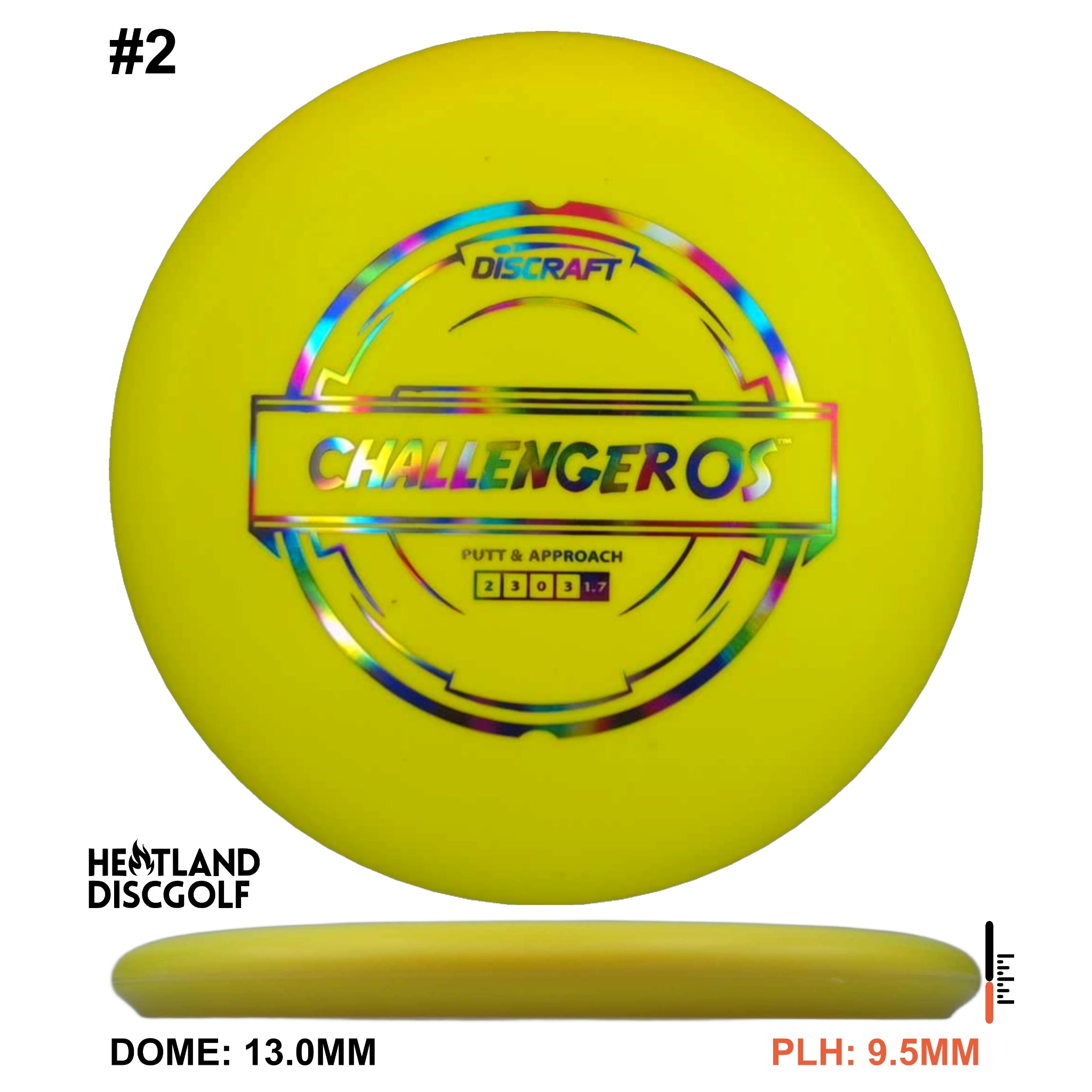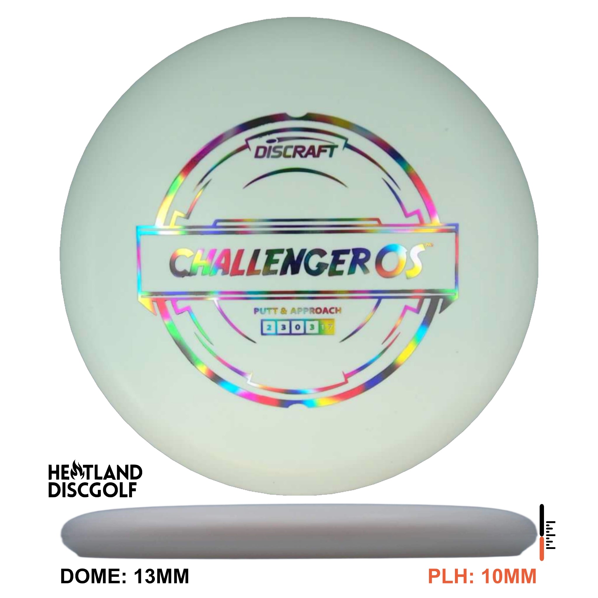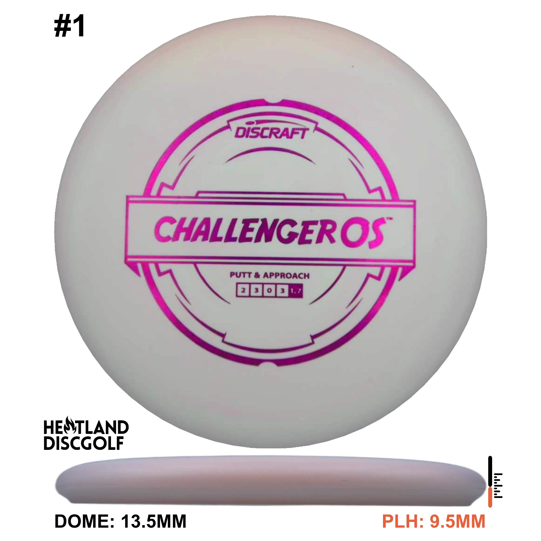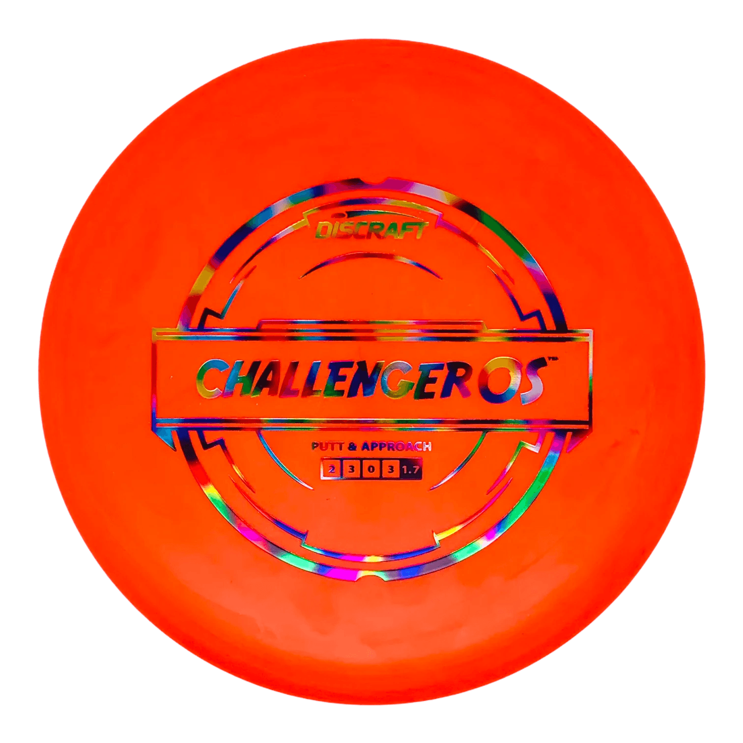 The Challenger OS is a more overstable, flat-topped version of the popular Challenger. This putter works best for driving, throwing into headwinds, weaving forehand approaches, and tossing hyzer putts. It is overstable enough to meet a majority of a player's needs without becoming a meat hook.